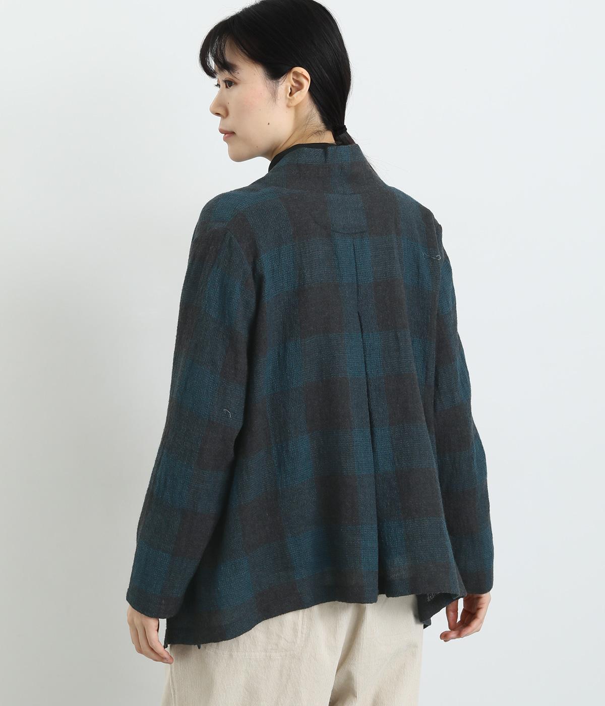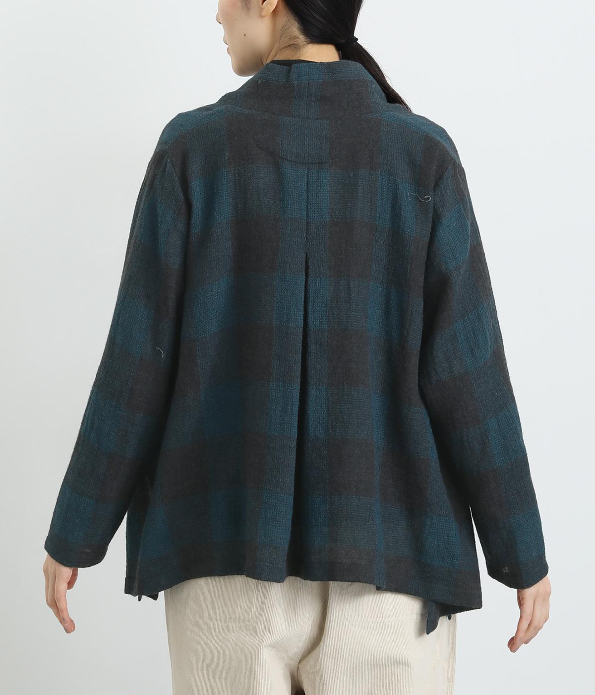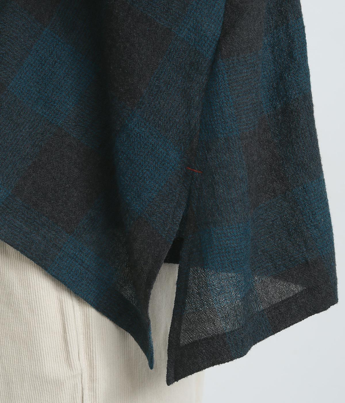 ラフに羽織れる留め具のないタイプのカーディガンです。サイドが垂れたシルエットでヘムラインに自然な動きが出て、着こなしにニュアンスを与えてくれる一枚。落ち着いた配色のチェック柄でシックにまとめました。