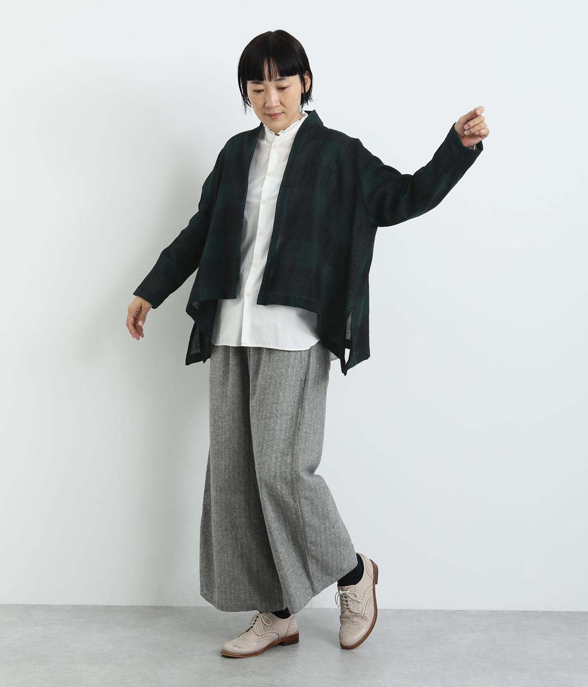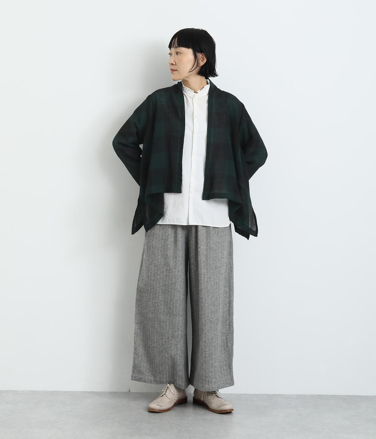 ウールでしっかりとあたたかみを出しながらも、ほんのり透ける薄手生地に仕上げました。季節感を演出しながらも軽やかで着こなしやすい生地感です。