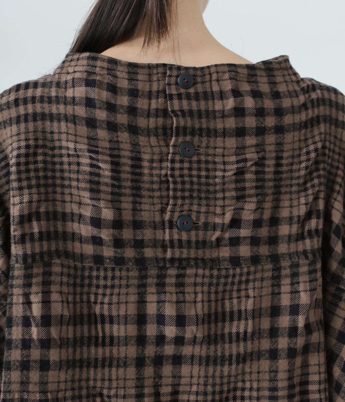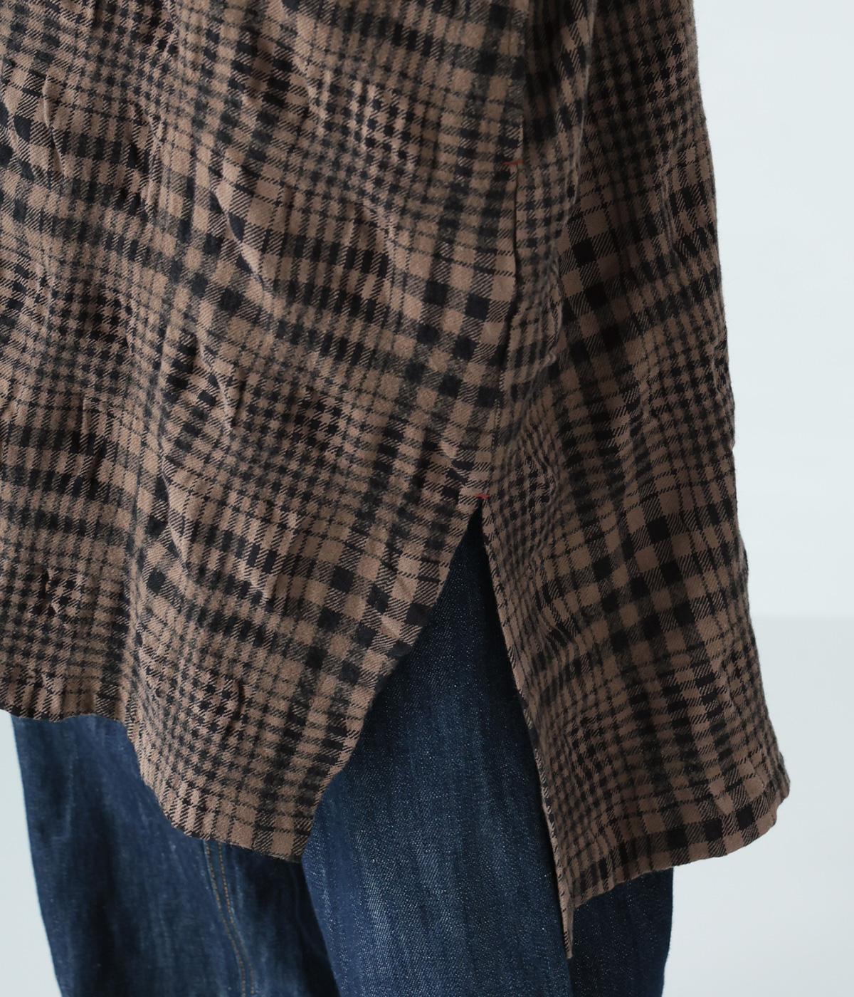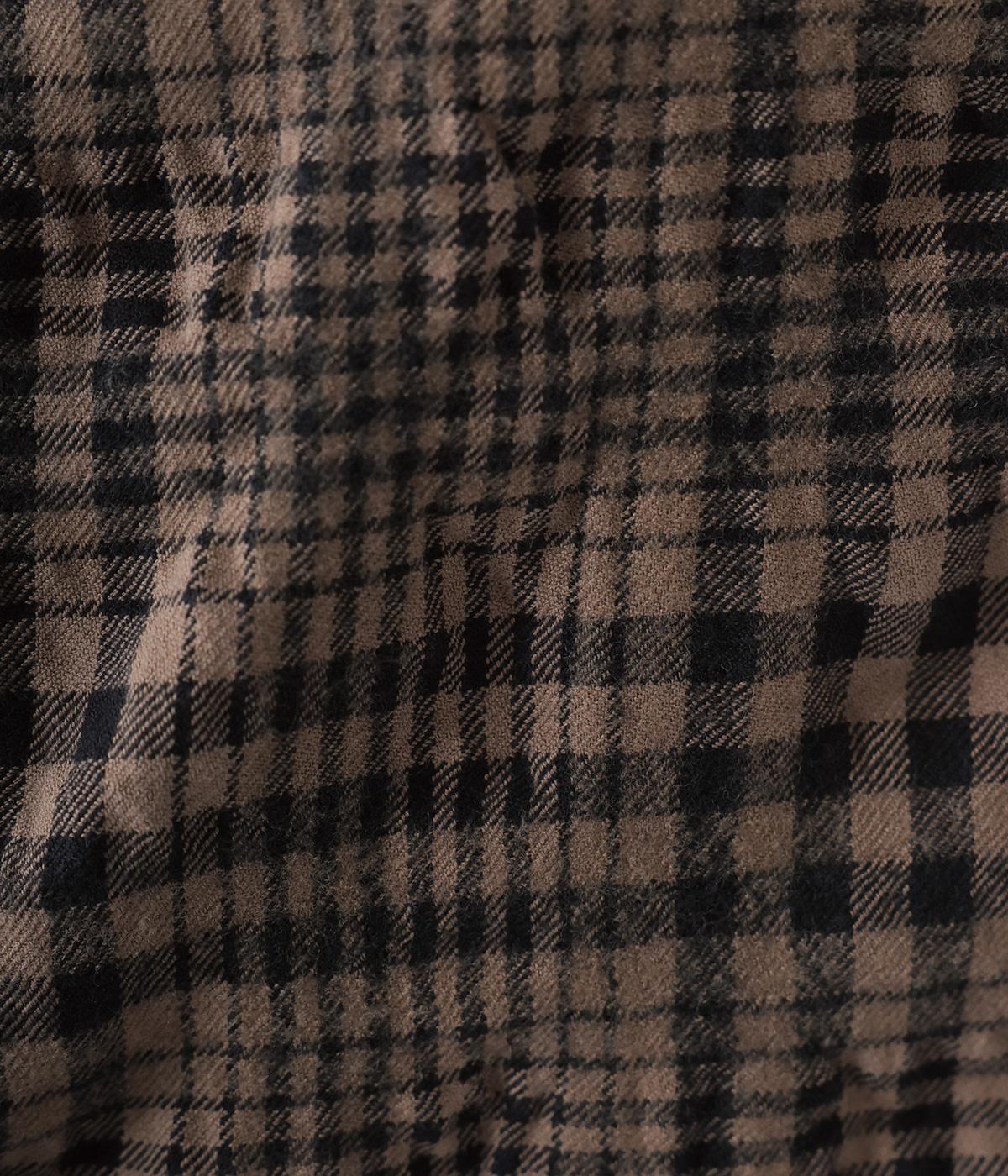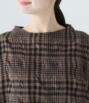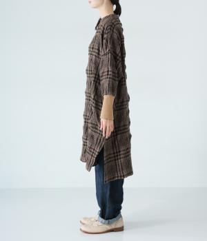 大きく波打つようなシボを表現したウールコットン生地。先染めチェック柄をより表情豊かに仕上げました。ふっくらとした起毛感があり、軽くてあたたかい着用感です。