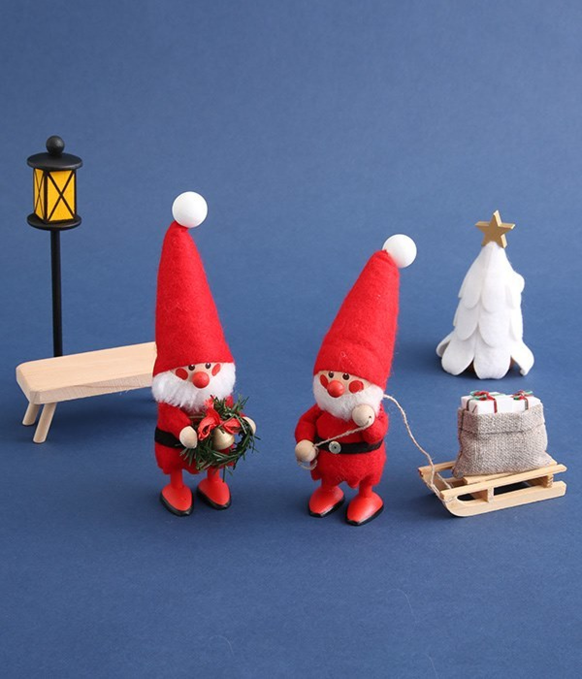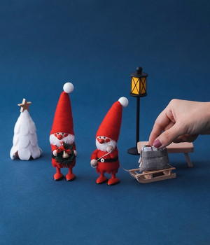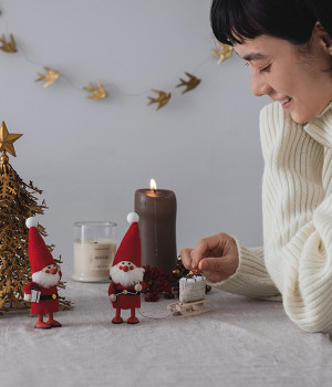 子どもたちに配るたくさんのプレゼントを詰め込んだソリを引く働き者のサンタさんのニッセです。小さなパーツの組み合わせで丁寧に作られた木製のソリはもちろんのこと、プレゼントも箱状や袋状と、包装にもこだわりを感じられます。フィンランド湾に面する自然豊かなエストニアでハンドメイドによりひとつずつ丁寧につくられており、それぞれに個性があって同じものは世界にふたつとないのが魅力です。毎年少しずつ買い足して、仲間を増やしていく楽しみ方もおすすめ。
