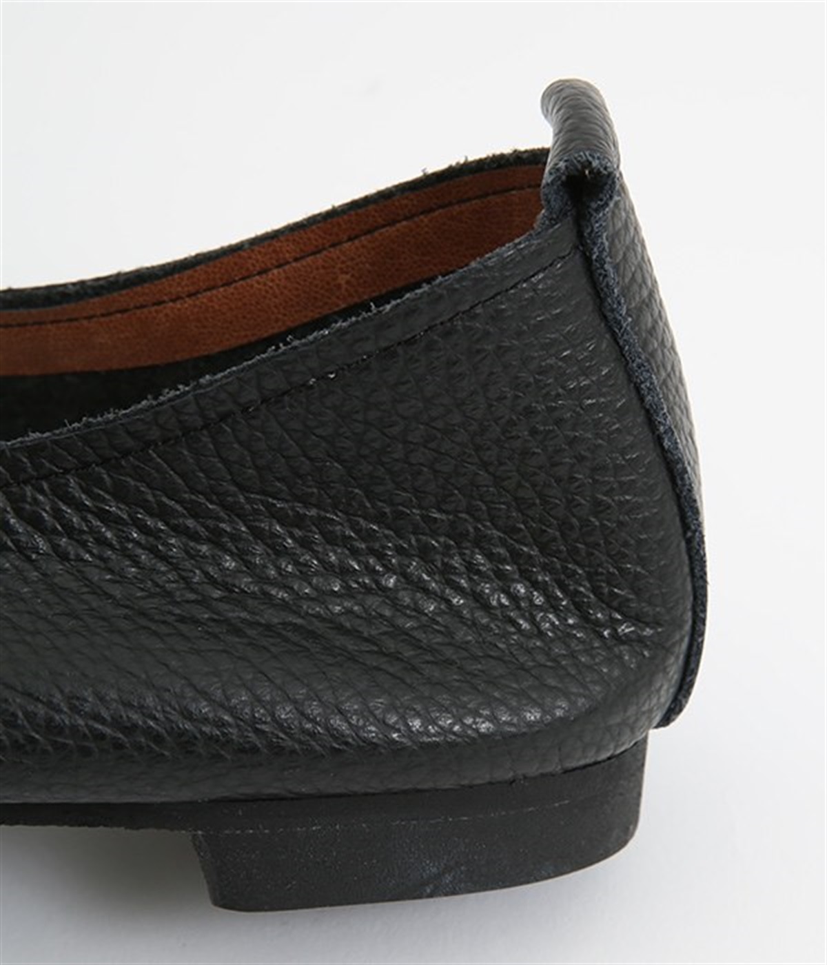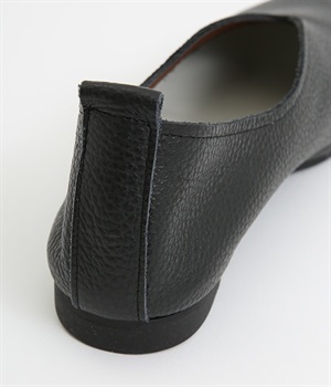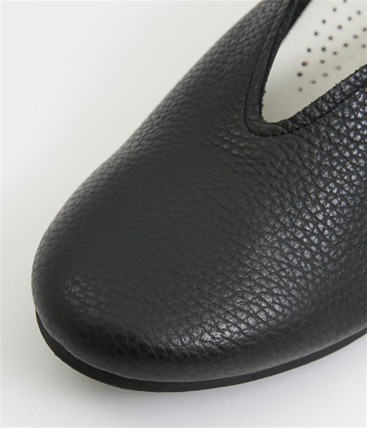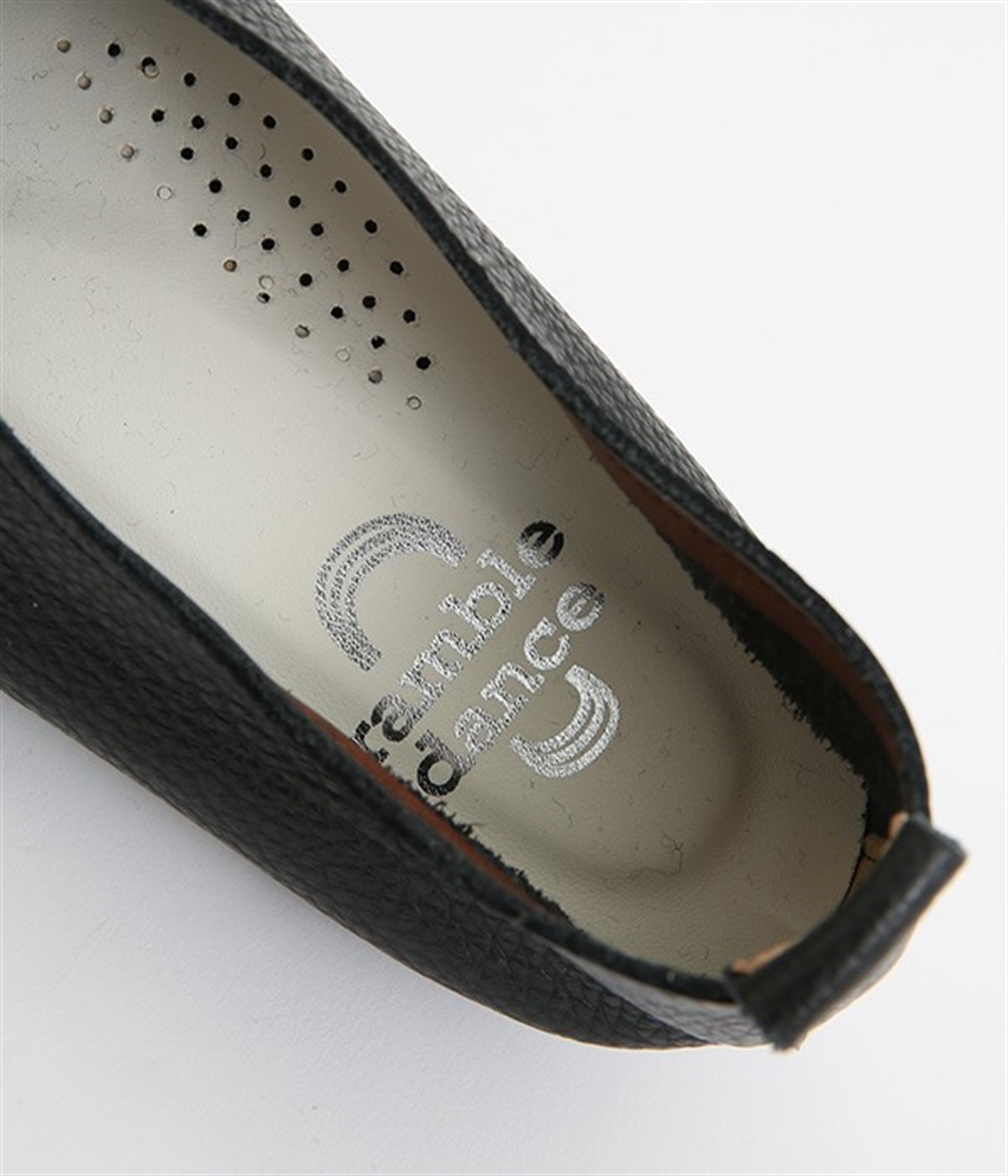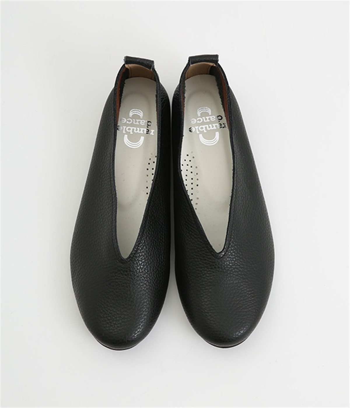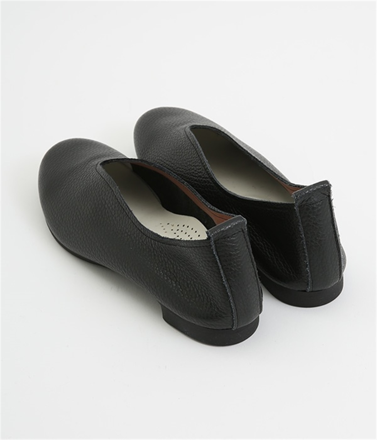イタリアンレザーを使用したV型スリッポンです。履き口のラインは波打ったカーブにし、シルエットに変化を持たせました。インソールの土踏まずの位置からかかと部分にかけてクッション性のある低反発素材を使用しており、足への負担を軽減してくれます。柔らかく、しなやかなレザーの質感と軽い履き心地でリラックスして履くことができます。