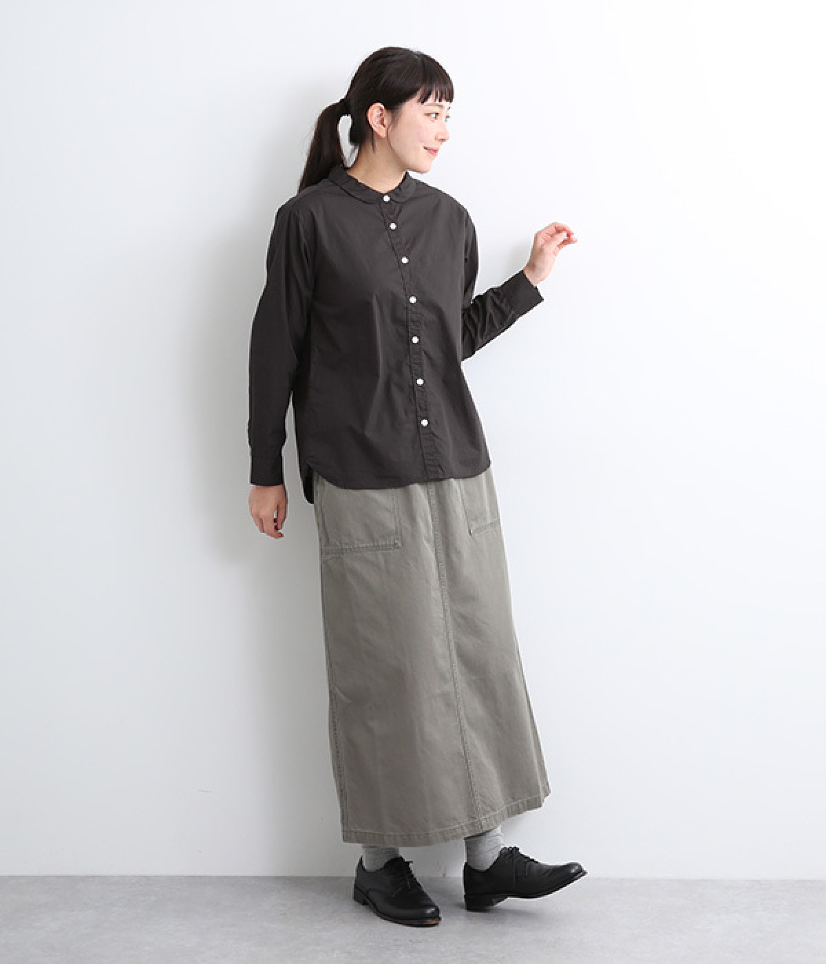 後ろ身頃にタックを入れた、ゆったりとしたボックスシルエット