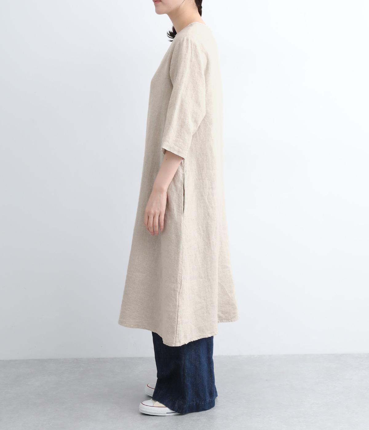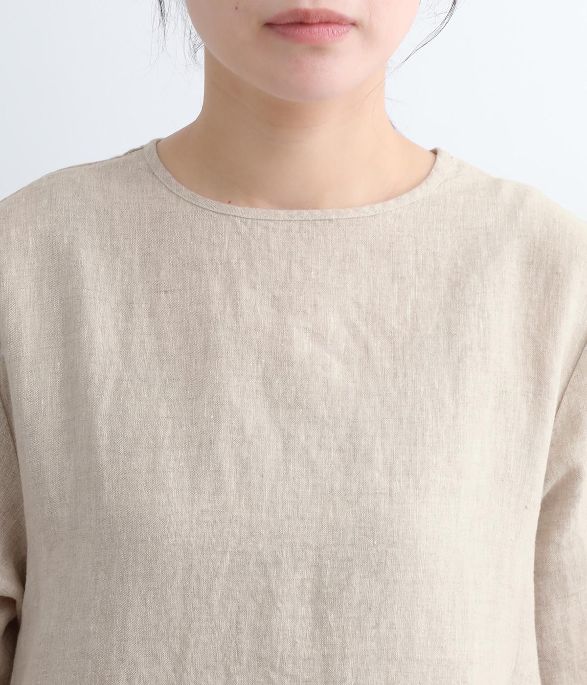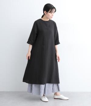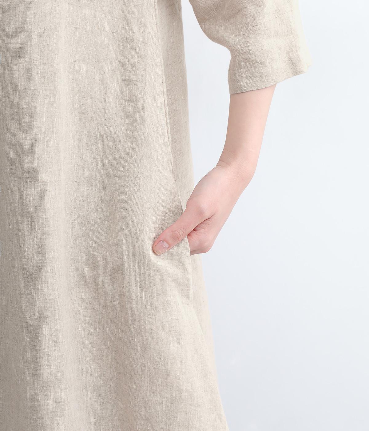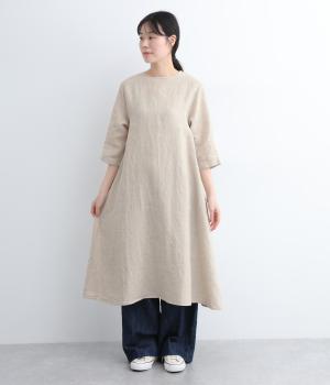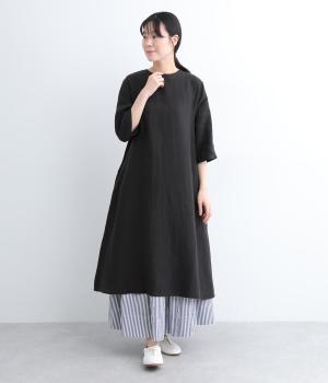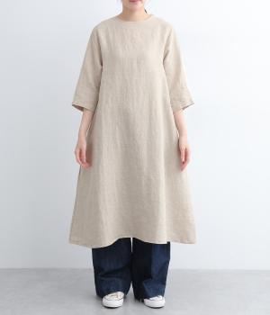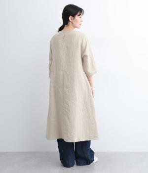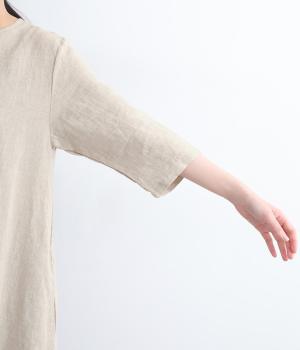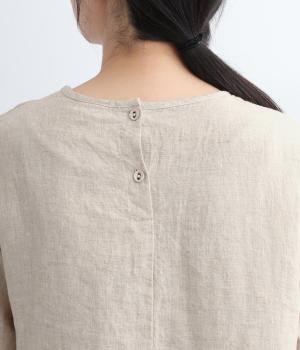 ナチュラルな風合いが雰囲気のいいリネン生地を使用。通気性がよく吸水力と発散性に優れているので汗ばむ季節もふくめ長く着まわせます。はくほどに肌なじみがよくなるリネン特有のエイジングも魅力のひとつ。