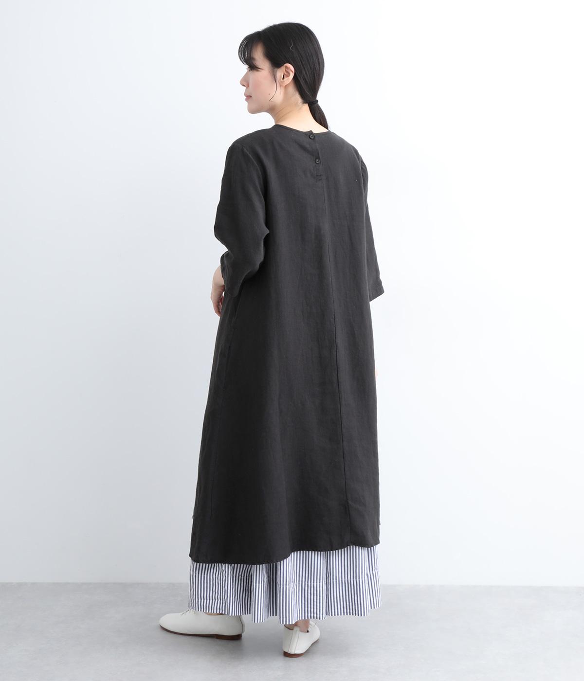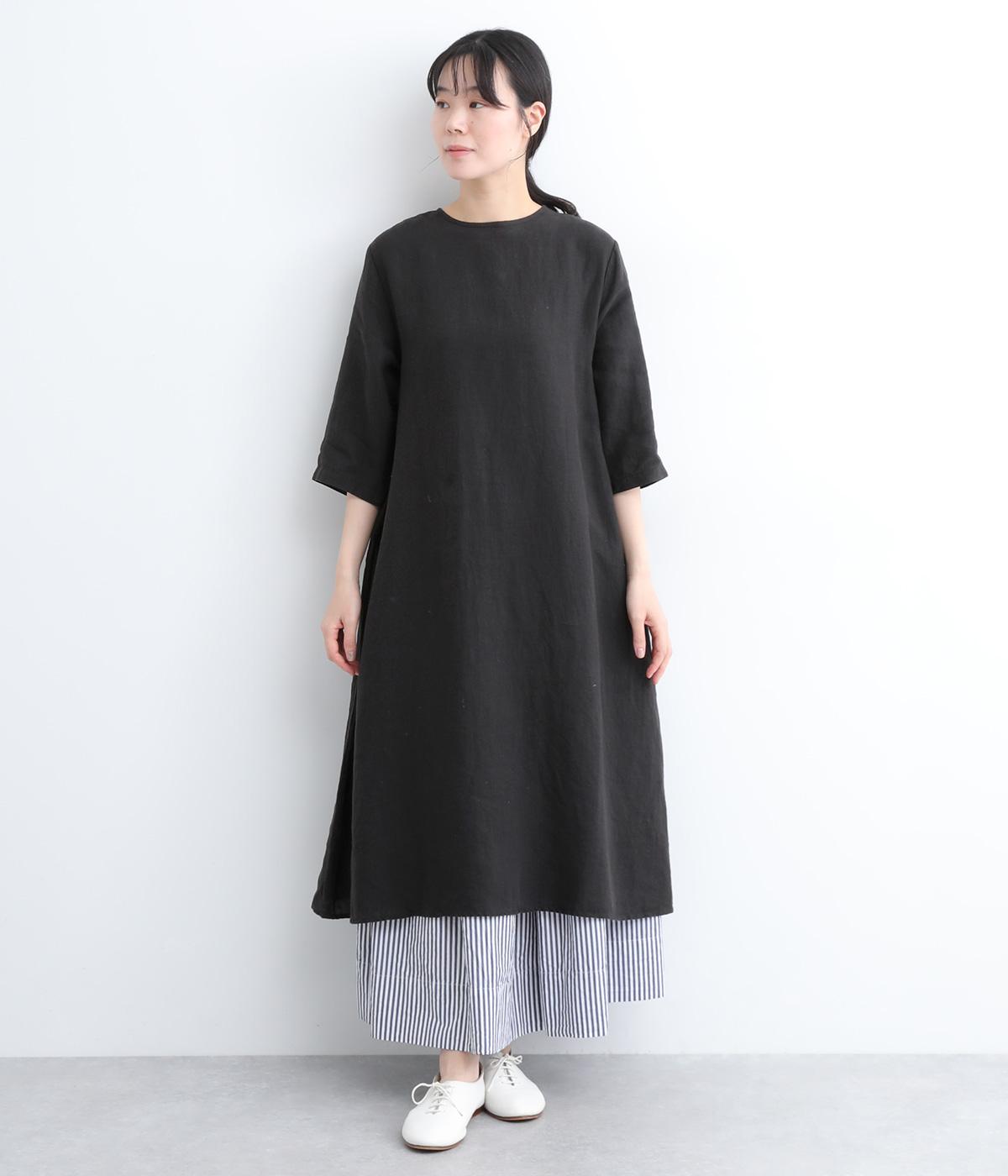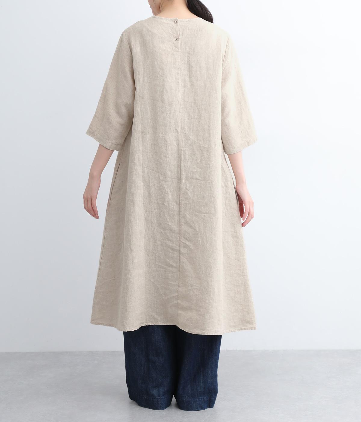 ナチュラルな風合いが雰囲気のいいリネン生地を使用。通気性がよく吸水力と発散性に優れているので汗ばむ季節もふくめ長く着まわせます。はくほどに肌なじみがよくなるリネン特有のエイジングも魅力のひとつ。