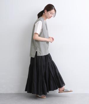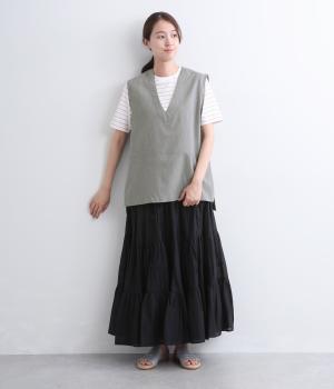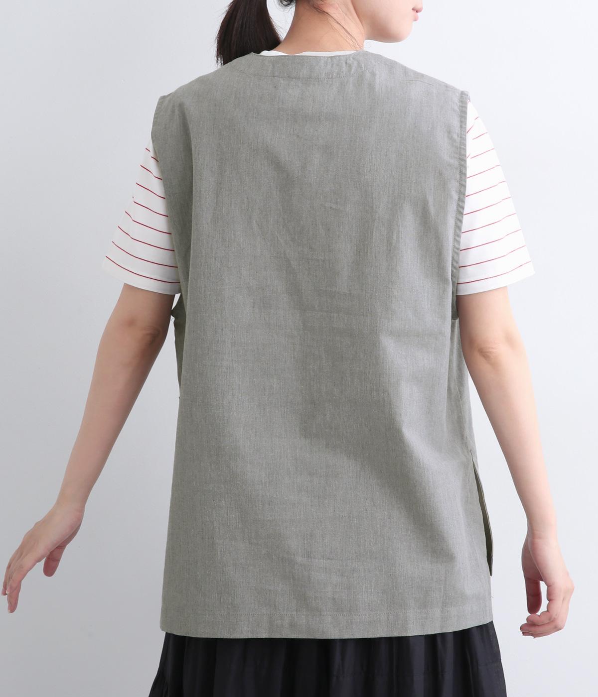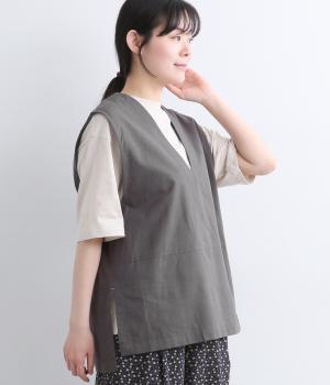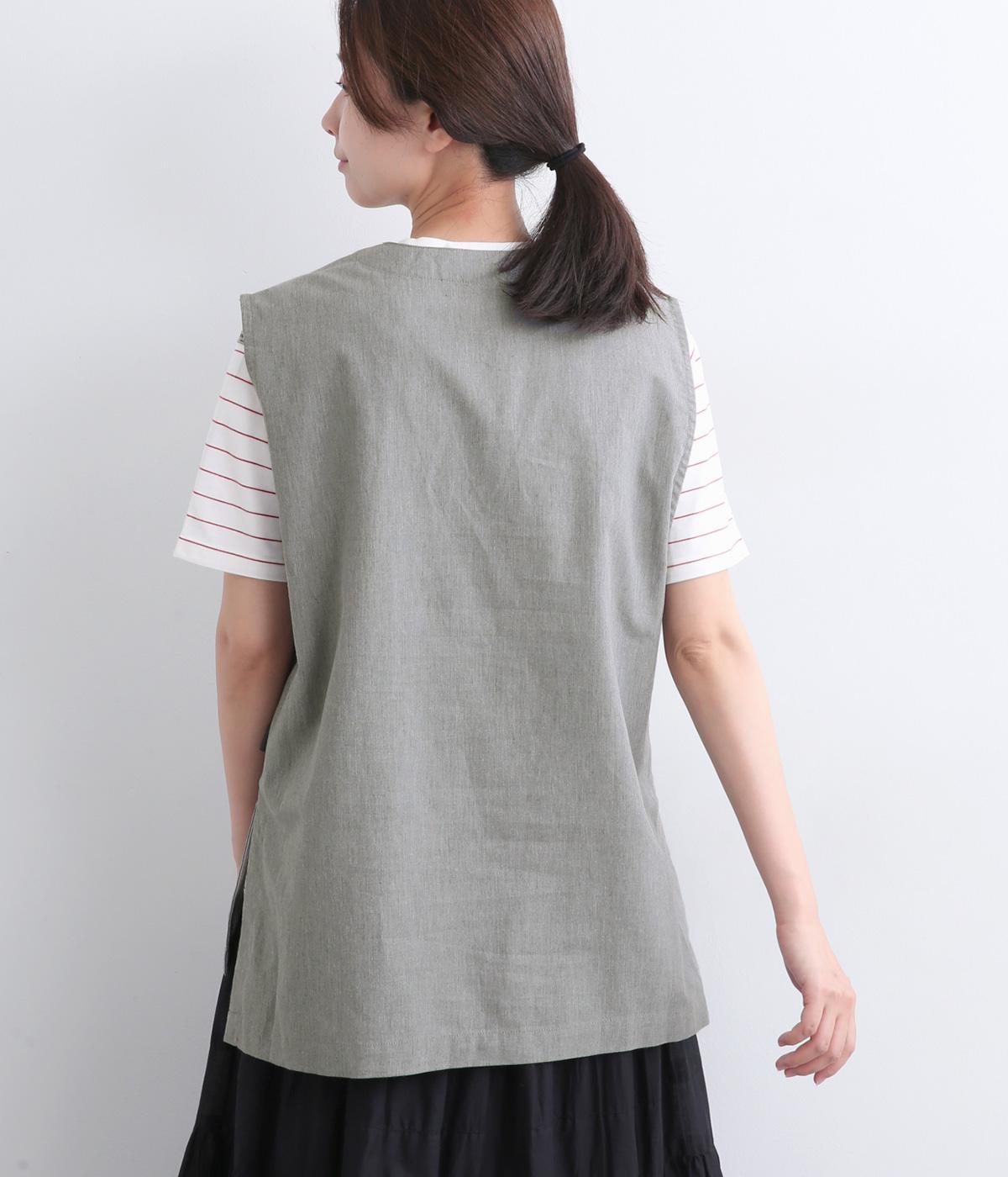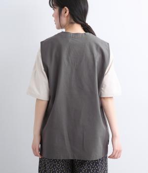 コットンリネンツイルサイドベルトベスト