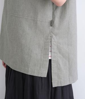 コットンリネンバンドカラーシャツ