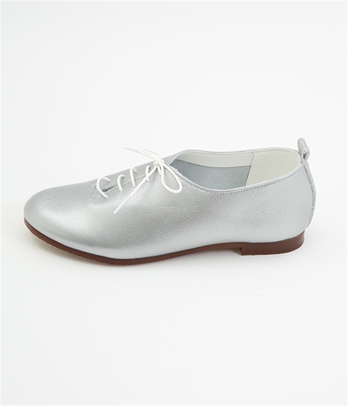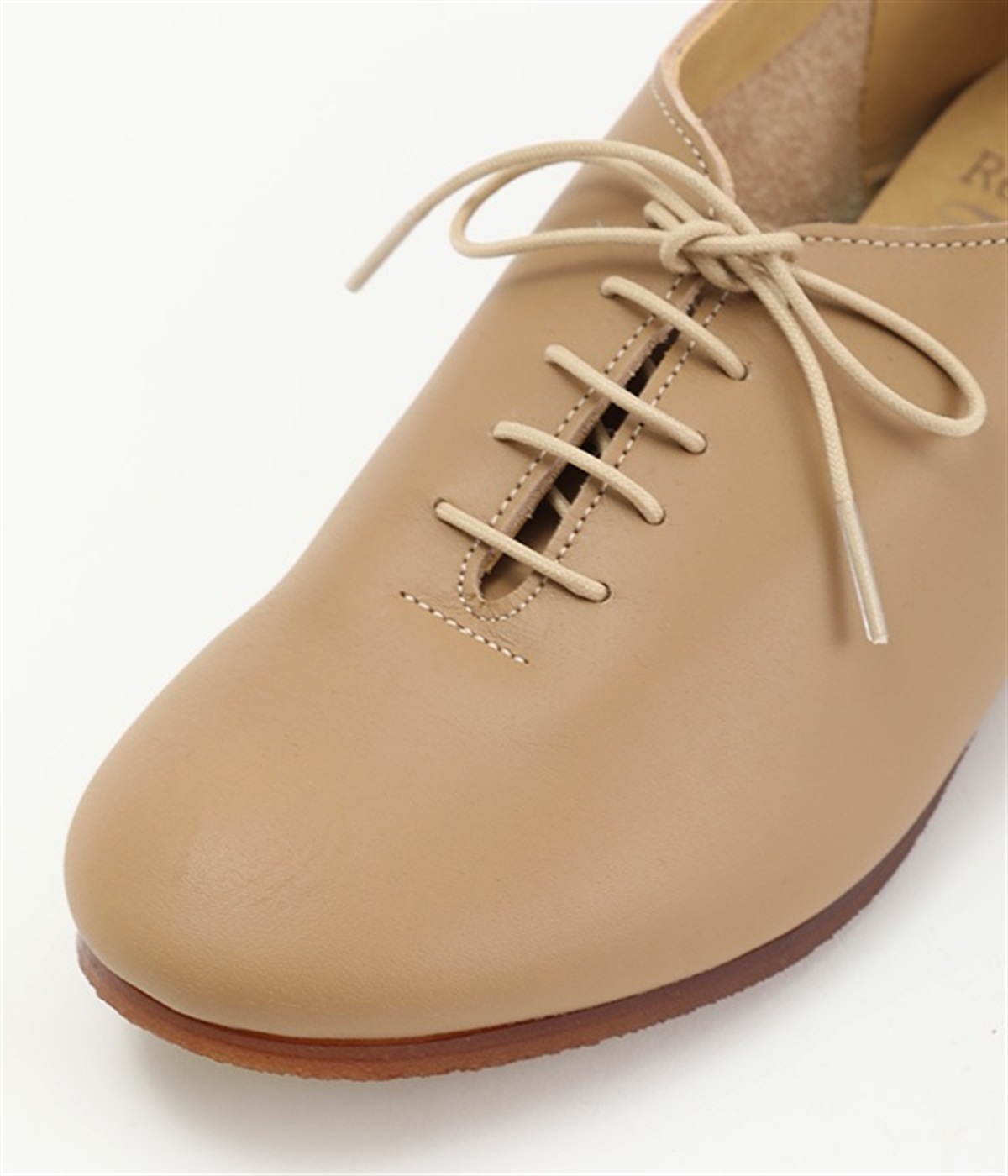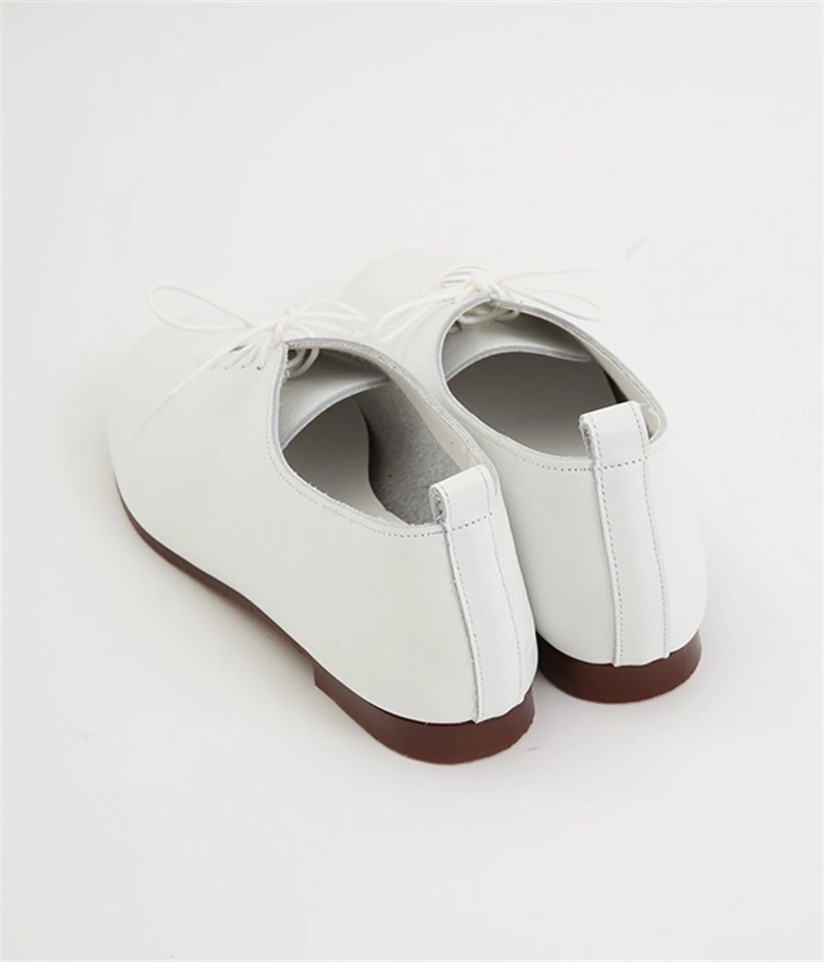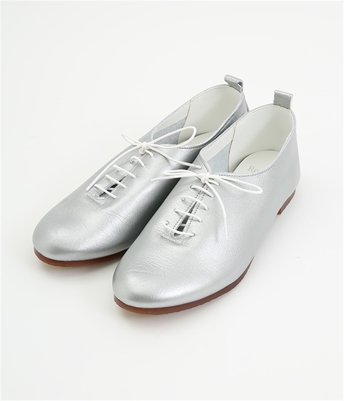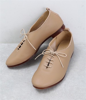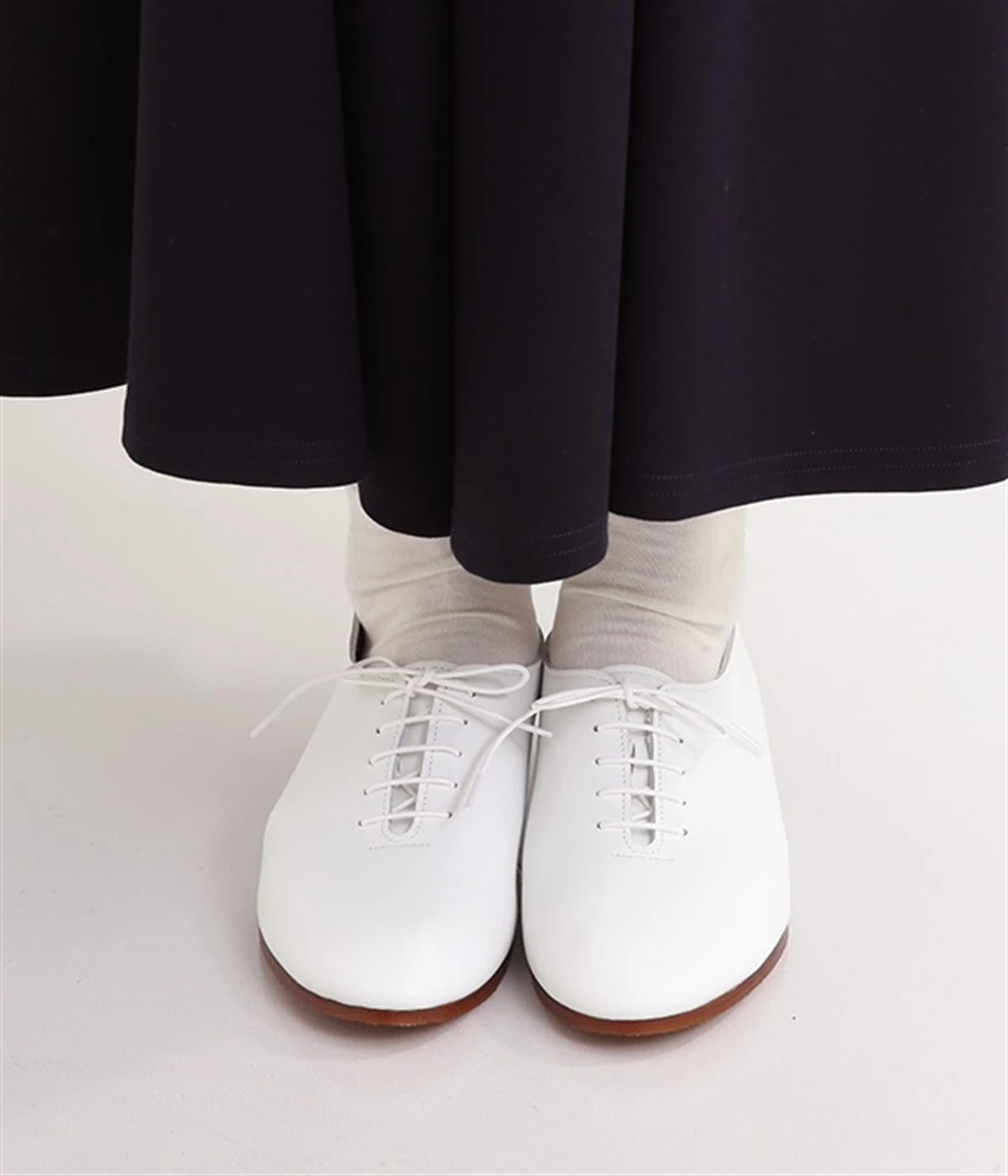 革一枚仕立てのフラットなデザインが魅力のレースアップシューズです。コーディネートを引き立てるベーシックなデザイン&色がポイント。季節を問わず使いやすく、足元が品よく決まります。靴紐は細めのものをセレクトして女性らしい華奢な印象に。中敷きはふかふかと厚さもあり、歩きやすさも抜群。丈夫で軽い日本製の部品を使用しています。