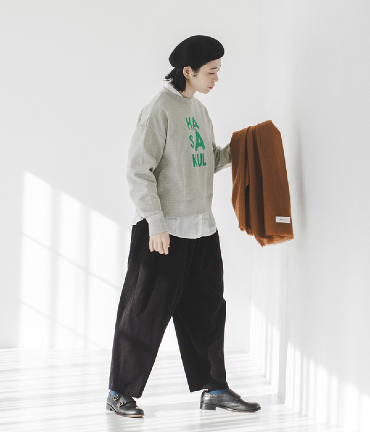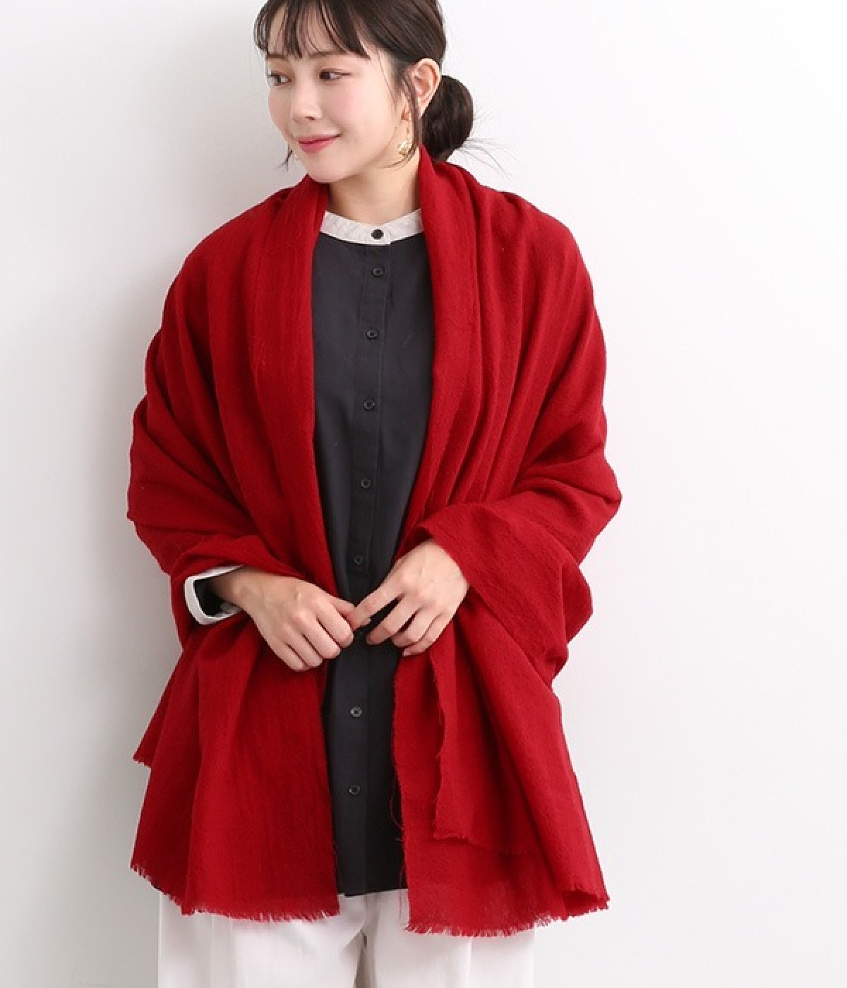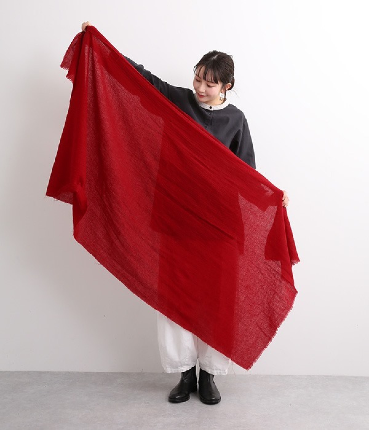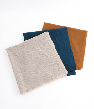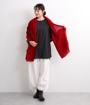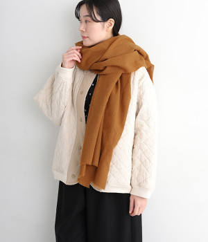 透けるほど薄手で柔らかいウールガーゼを使用したストール。ウォッシュ加工を施して風合いよく仕上げています。両サイドは切りっぱなし仕様で、両端の先に施した細かなフリンジがさりげないアクセント。大判タイプなのでくるくる巻いたり羽織ったりと幅広く取り入れることができます。持ち歩きにもかさばらず、お出かけの強い味方になってくれるアイテムです。