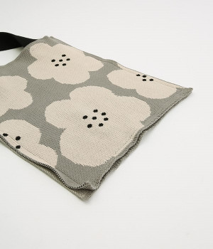 コットン糸で編み立てたジャカード柄のニットショルダーバッグです。花柄・チェック柄と両面の柄が違うので、気分に合わせて使い分けができるのも嬉しいポイントに。合わせやすいベーシックな配色ながら、パッと目を惹くデザインが着こなしのアクセントになります。A4ファイルもすっぽりと収納できる使い勝手の良いサイジングがデイリー使いに最適です。