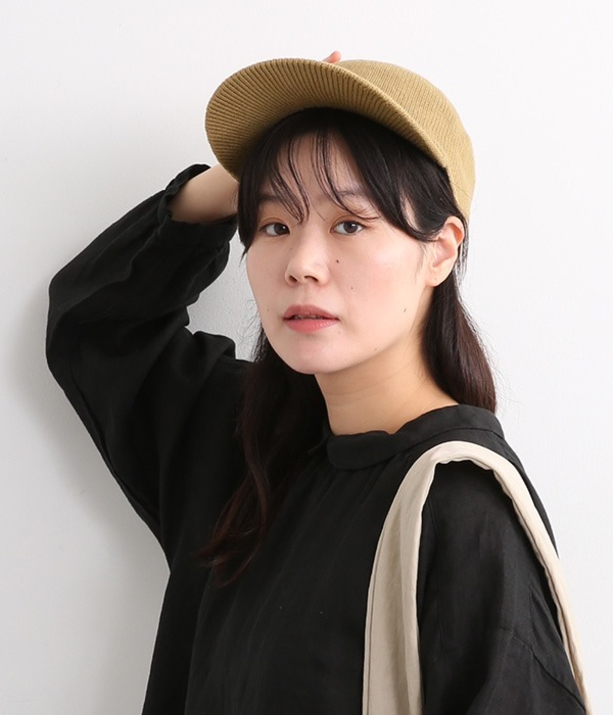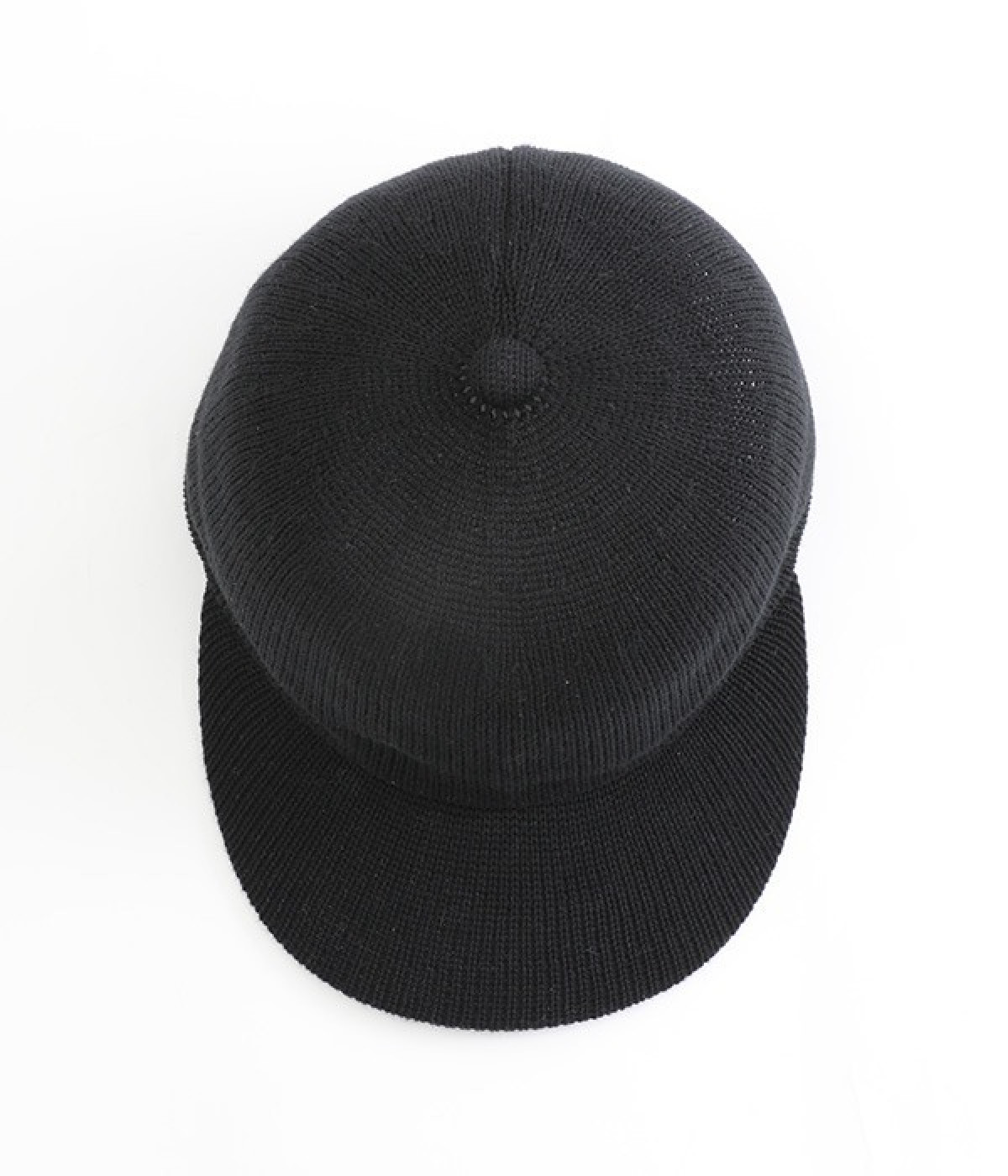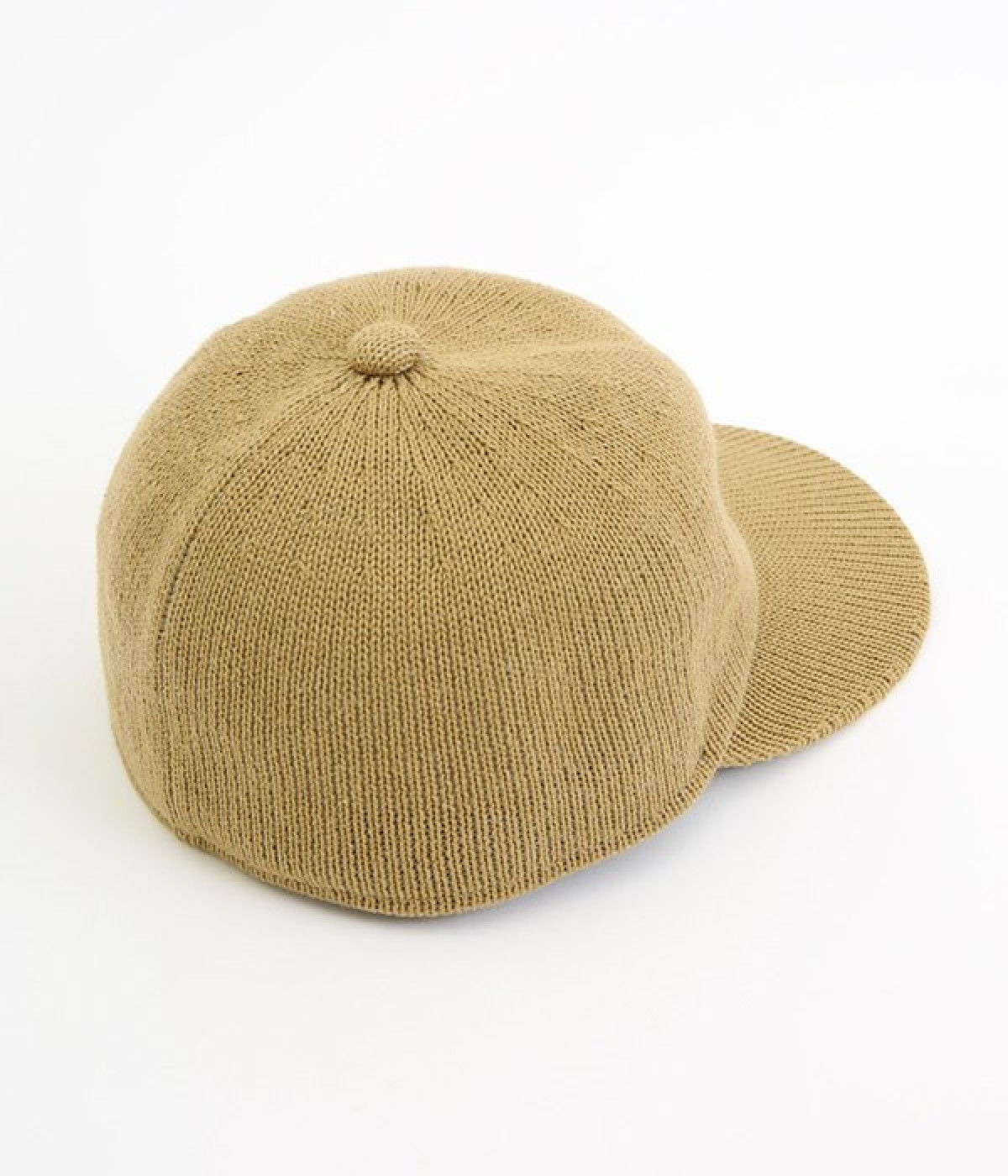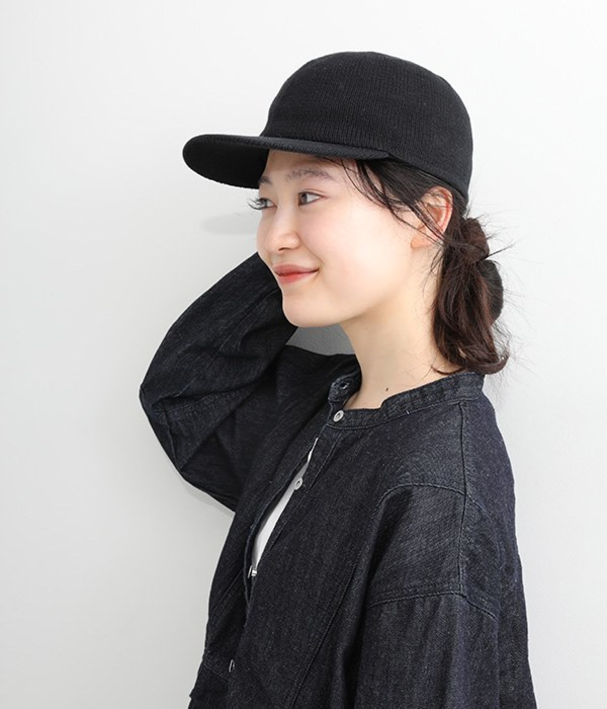 コットンとポリエステルの混紡糸で編み立てたシンプルなキャップです。ニットの編み地のため普通のキャップと比べてカジュアルになり過ぎず、大人の着こなしに取り入れやすい優等生アイテム。効率的に熱を逃がして風通しがよいので、かぶり心地は快適です。内側の面ファスナーで自由にサイズ調整もでき、シェア使いもするのもおすすめ。