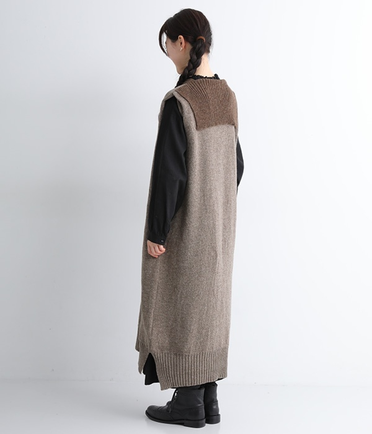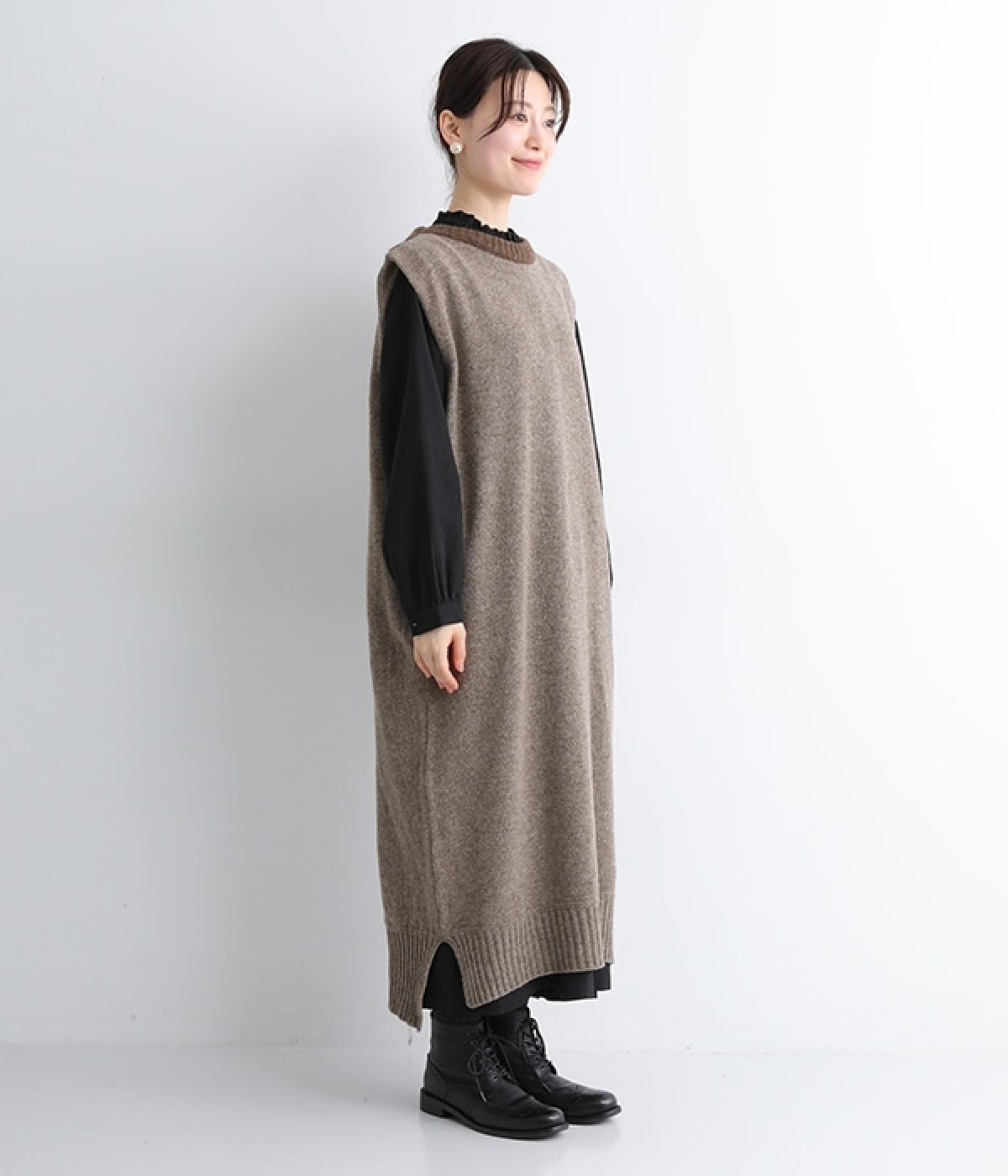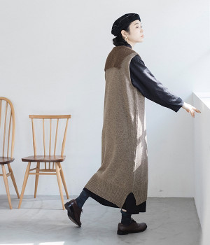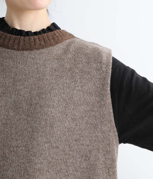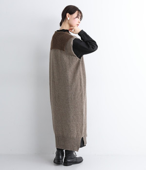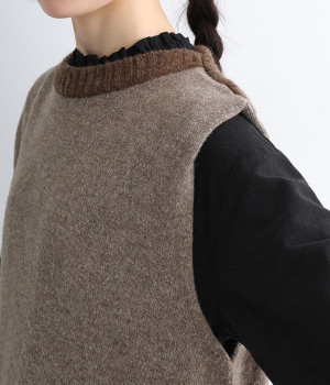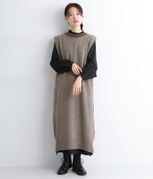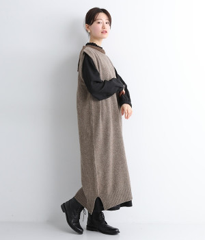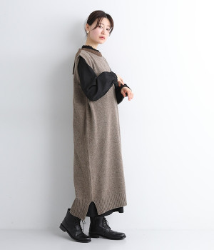 羊たちに優しい環境で飼育されたノンミュールジングウールを使用したセーラーワンピースです。染色していない本来の毛色を生かした、ナチュラルでソフトな色合いが魅力的。襟部分はアルパカ混のふわふわとした風合いがかわいらしく、身頃との異素材感も楽しめる一着です。ゆとりのあるすとんとしたストレートシルエットが大人らしい雰囲気で、カットソーやブラウスを合わせたお好みのレイヤードに対応できます。