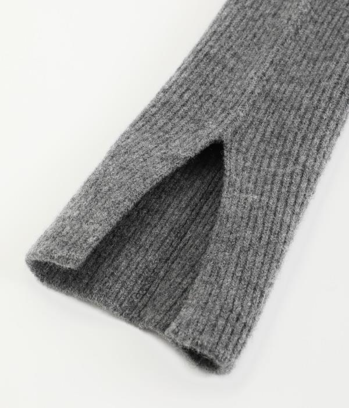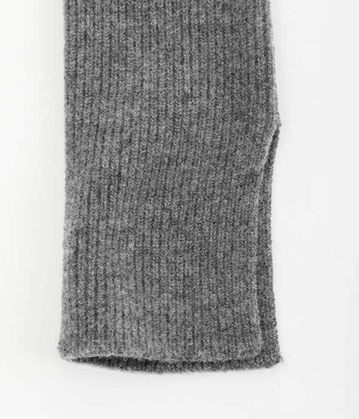 軽くて膨らみのあるウール糸で編み立てた、ホールガーメントのオーバーニーレッグウォーマー。弾性糸を入れることで程よくフィットするように仕上げました。スリットが入っており、着こなしに合わせて履き位置を変えてアレンジを楽しめます。ゆったりとしているので足元の冷え対策としてタイツと重ねて着用しても素敵。