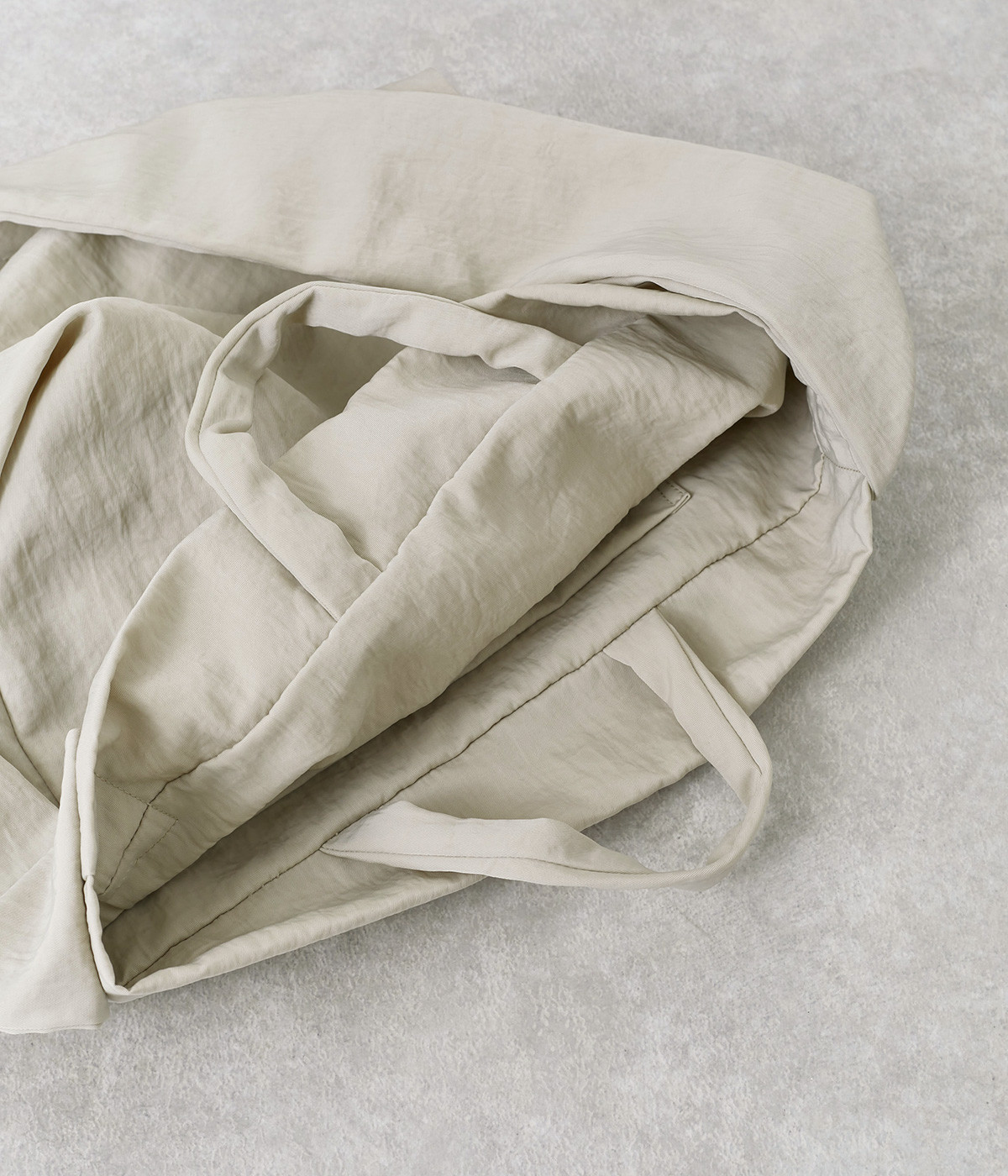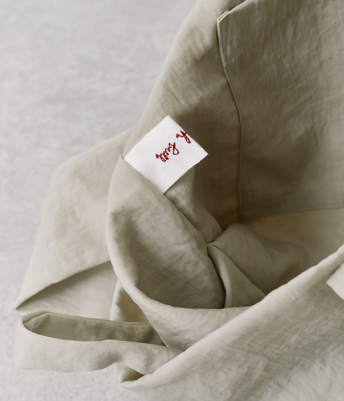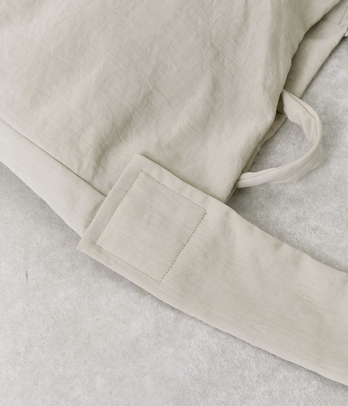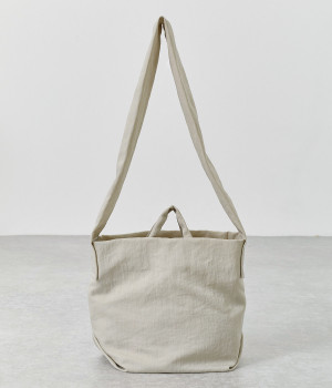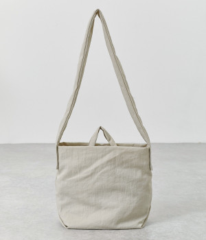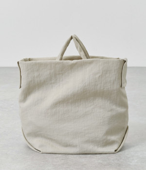 ナチュラルでヴィンテージ感のある表情が魅力的なナイロン生地。撥水加工がほどこされているので、急な雨やアウトドアシーンでも安心です。体になじむやわらかな薄手素材なので、使わない時は折り畳んで持ち歩き用としても活躍します。