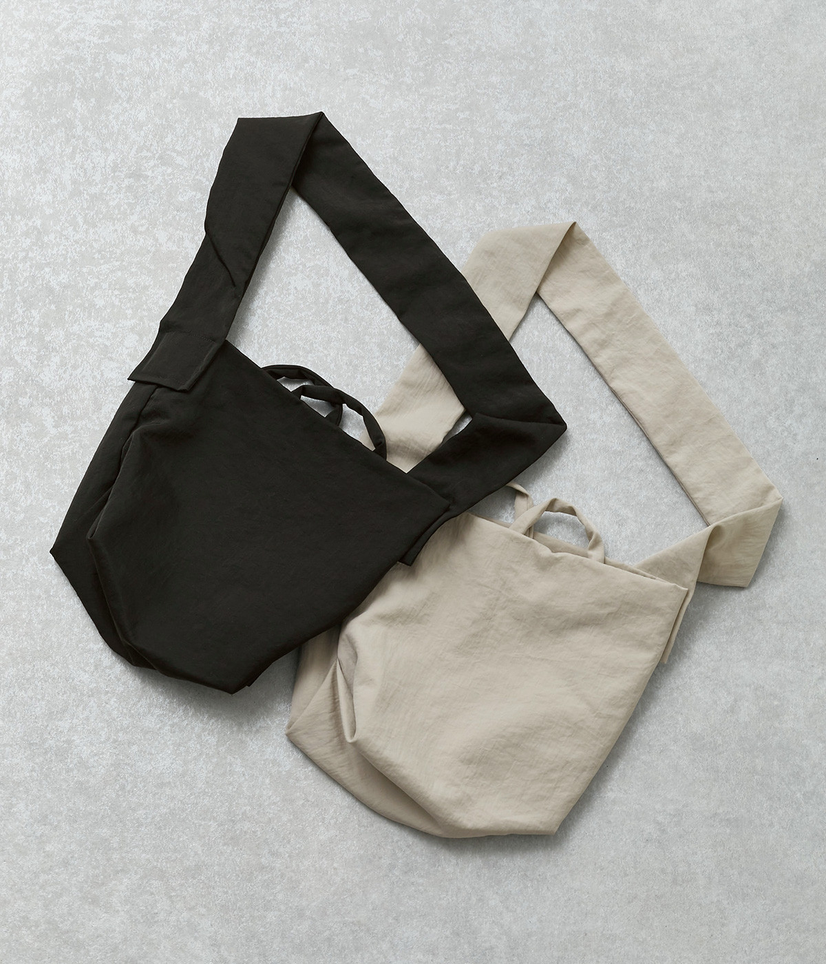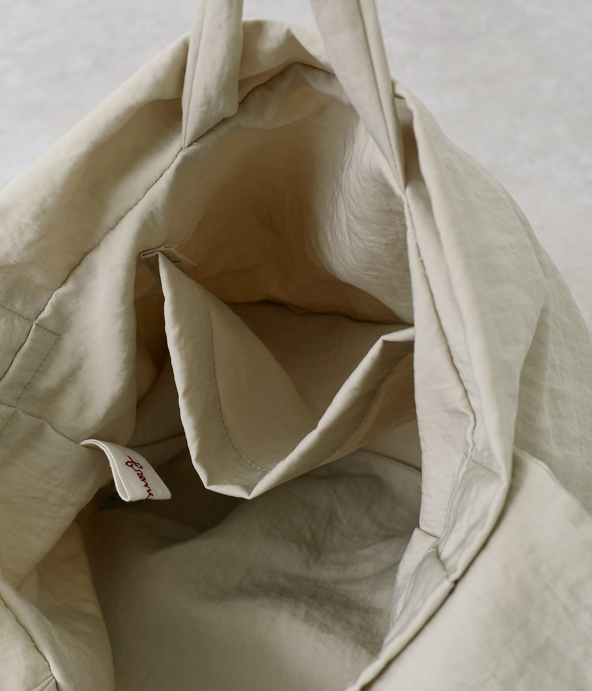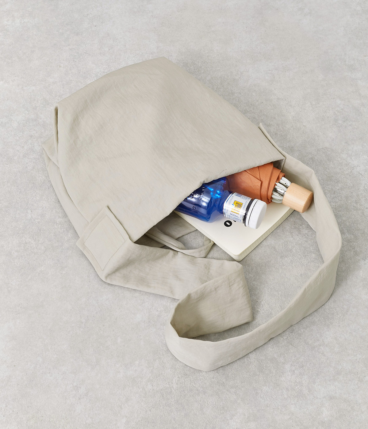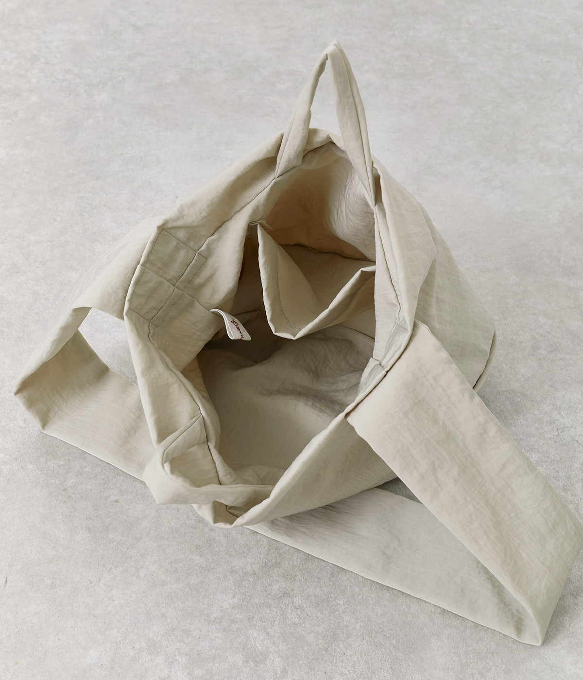 ナチュラルでヴィンテージ感のある表情が魅力的なナイロン生地。撥水加工がほどこされているので、急な雨やアウトドアシーンでも安心です。体になじむやわらかな薄手素材なので、使わない時は折り畳んで持ち歩き用としても活躍します。