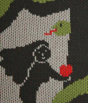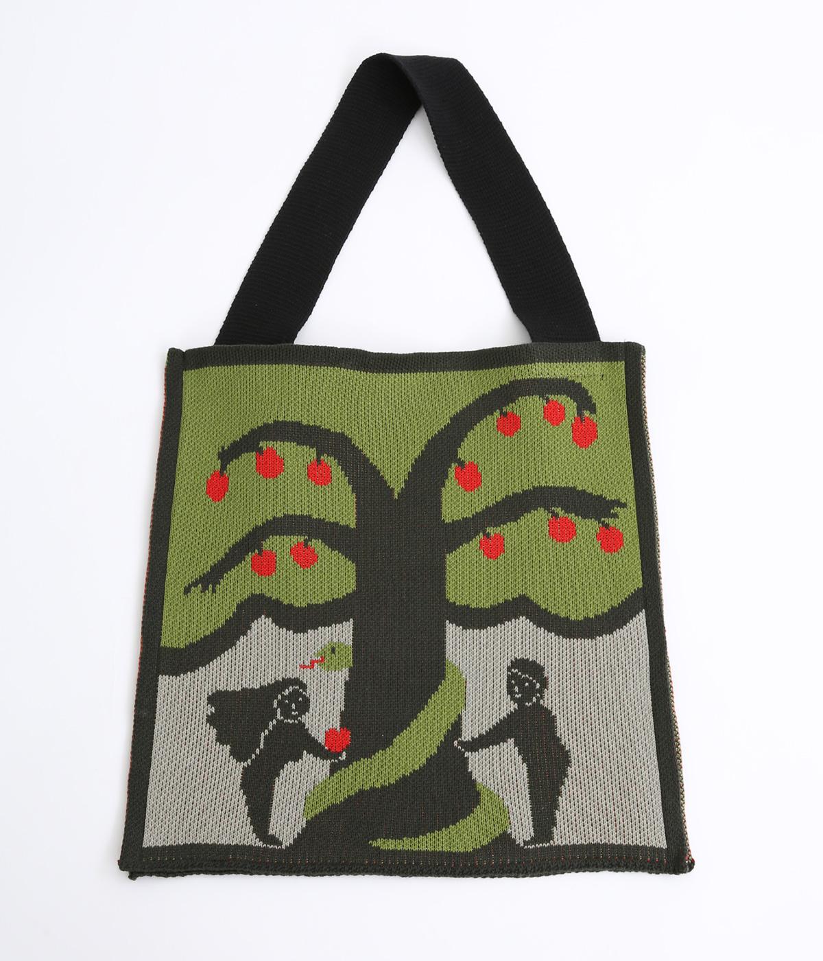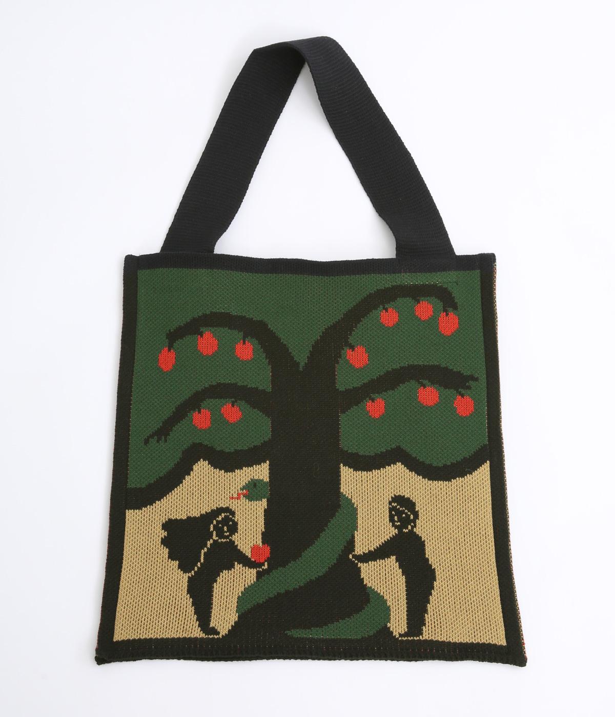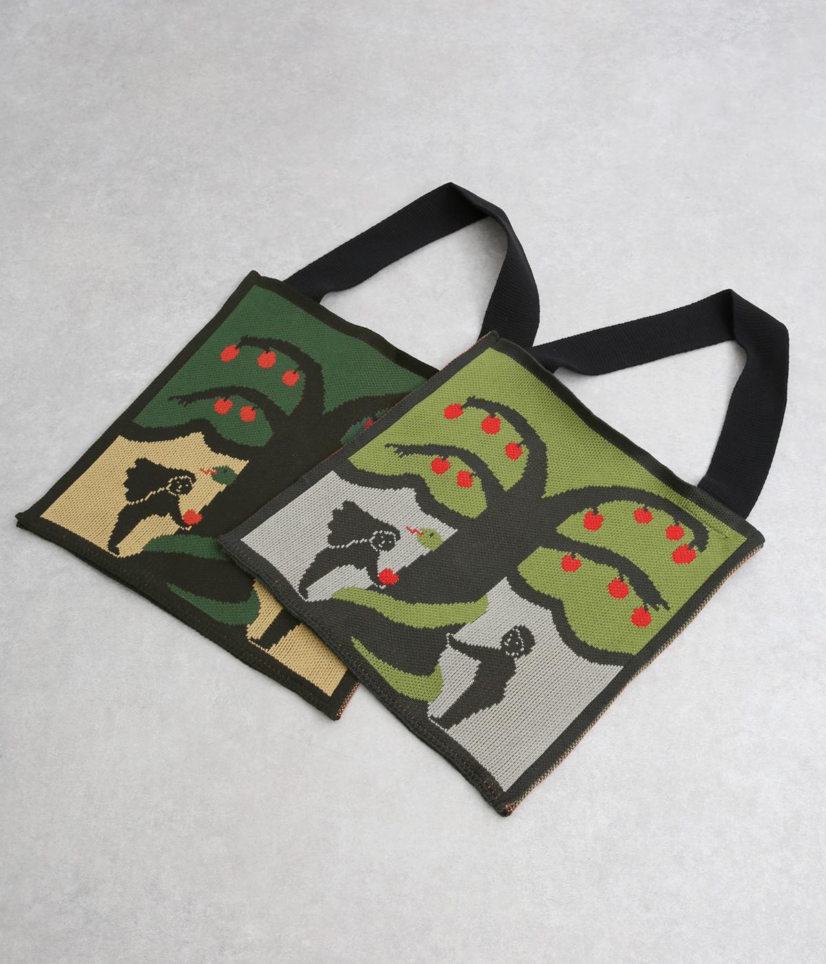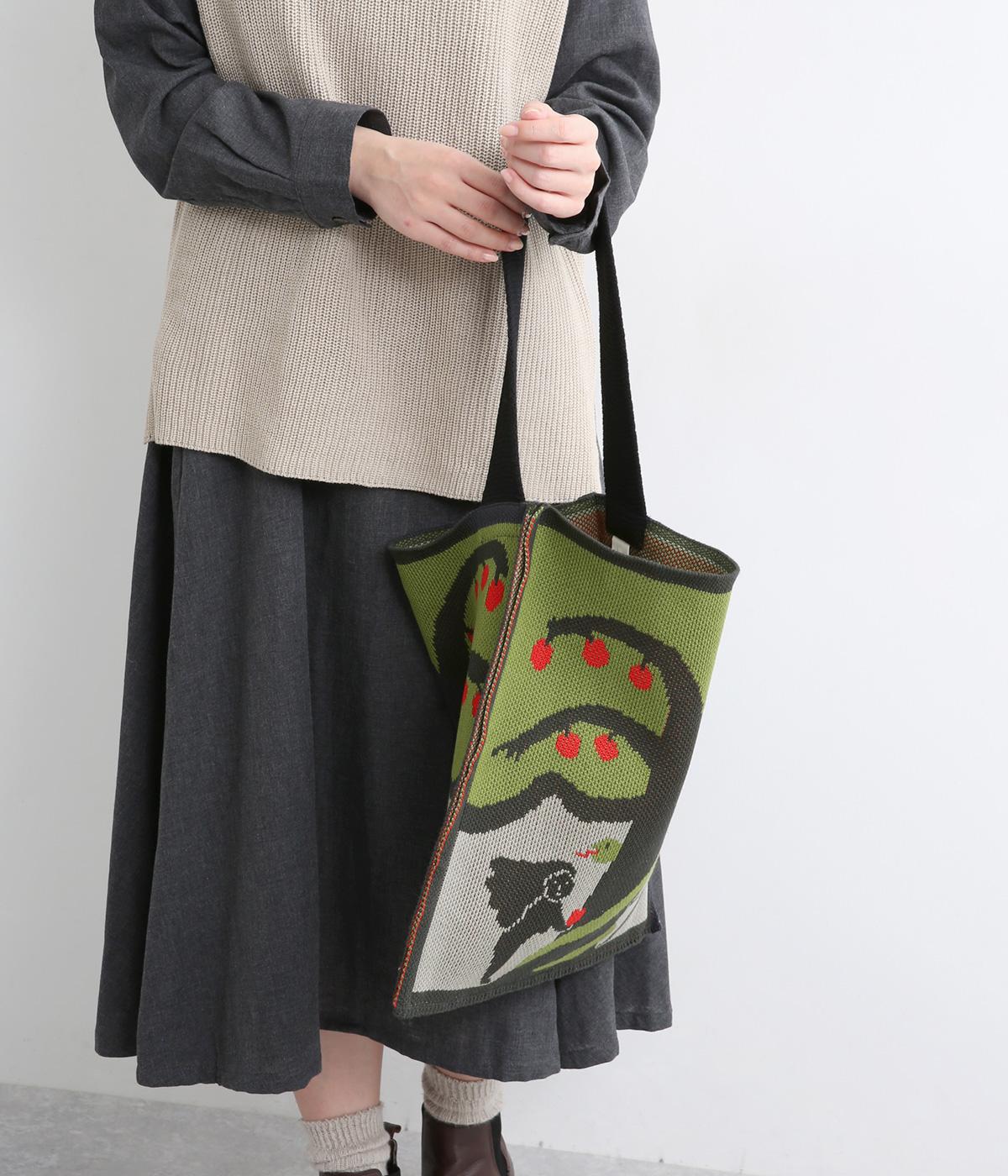 物語の世界から飛び出してきたような、アダムとイヴをモチーフにしたインパクト抜群なバッグ。表と裏でデザインを変えているので、気分やスタイリングに合わせて2倍たのしめます。すっきりした形にA4サイズも収納可能なサイズ感でデイリーに活躍。