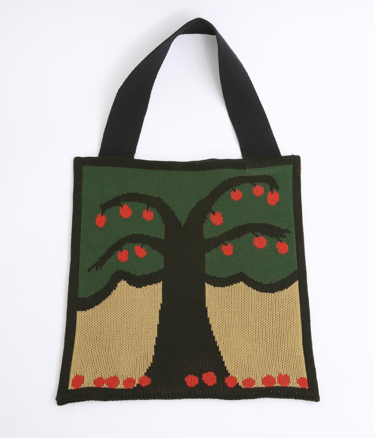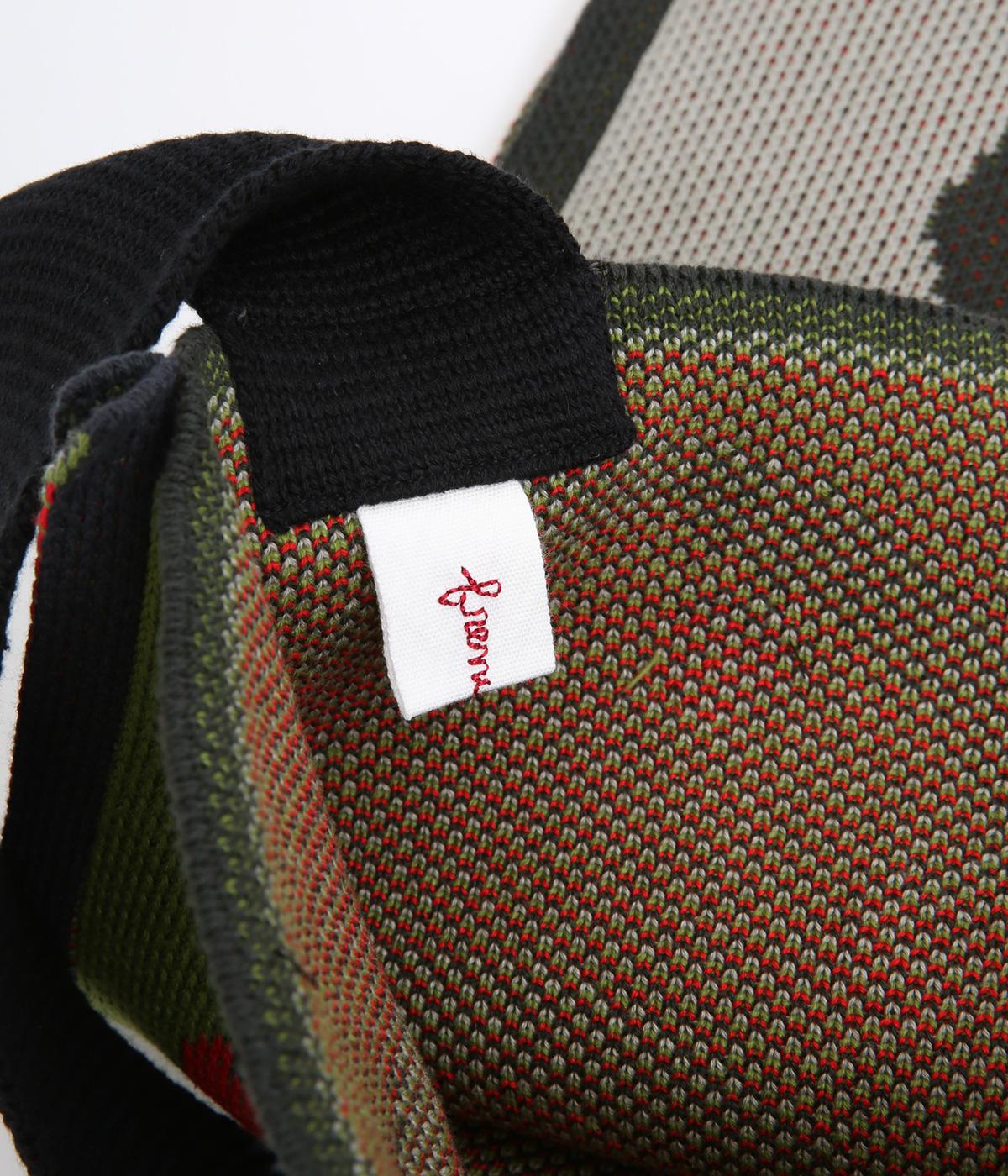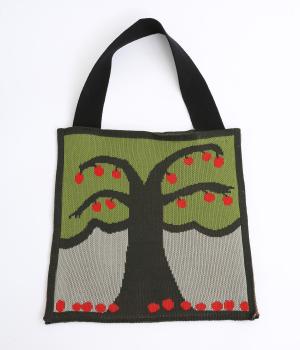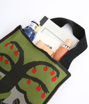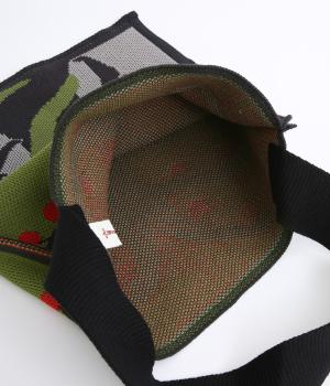 コットン糸のジャカード編みで度詰めに編み立てることで、ニットバッグながらしっかりとした仕上がりです。ショルダー部分もコットン度詰めで広幅に編み立てているので安定感があります。