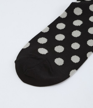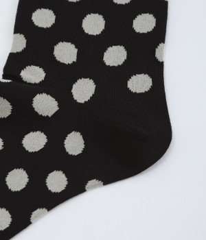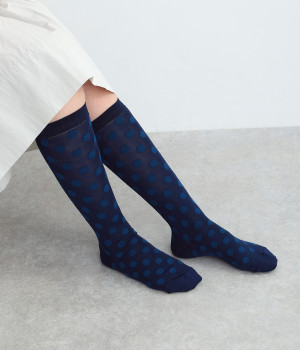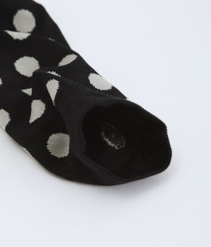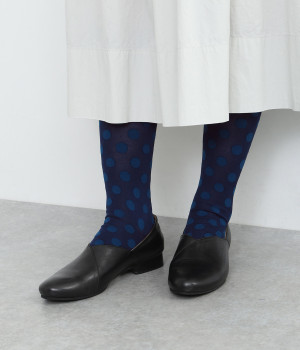 片側はストライプ、もう片側はチェックの花をモチーフにしたソックスです。つま先はリンキング仕様であたりがなく、快適なはき心地。左右で異なる花柄がコーディネートのワンポイントになります。
