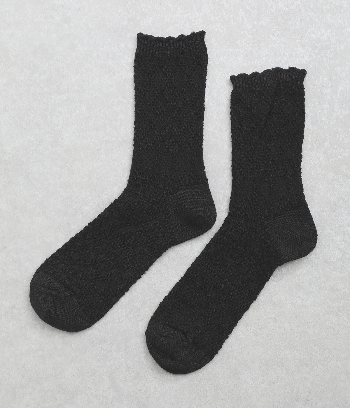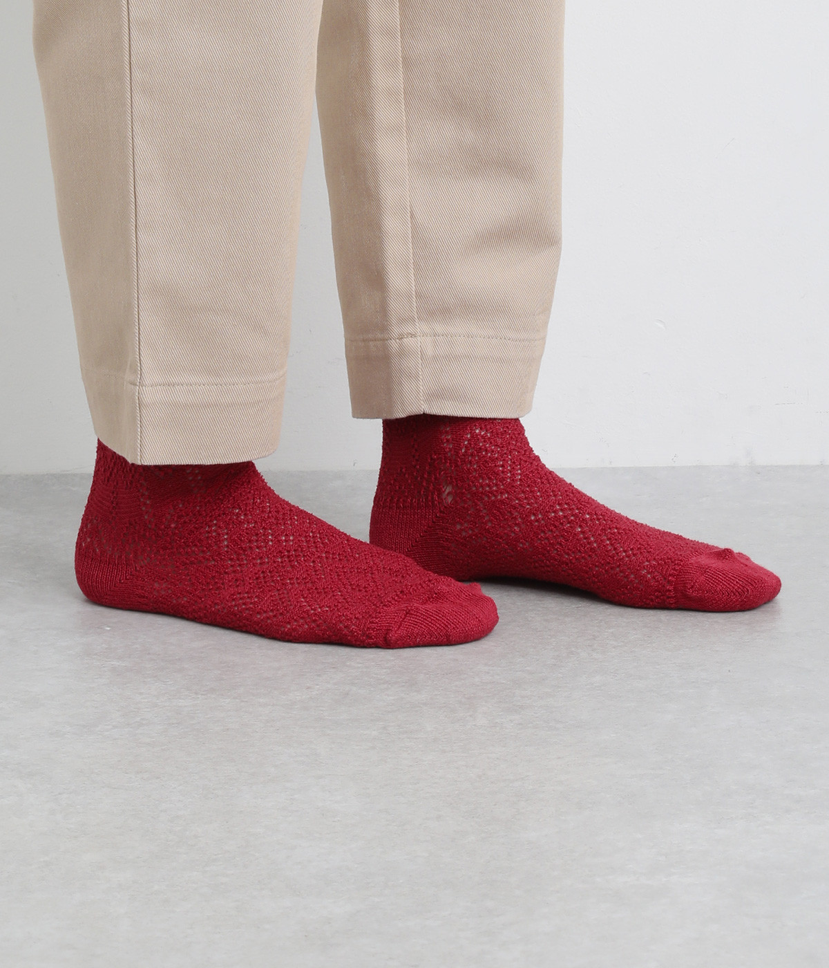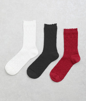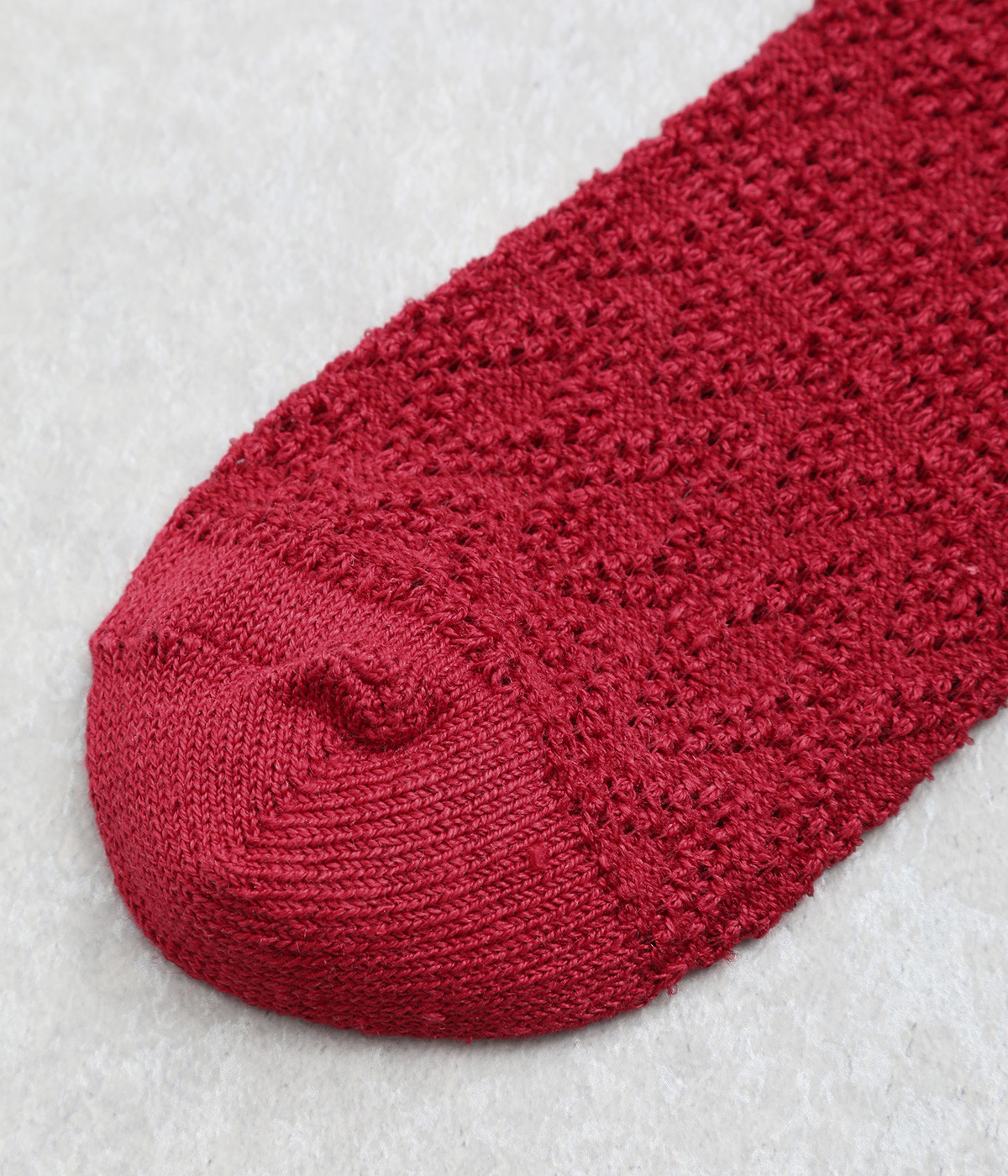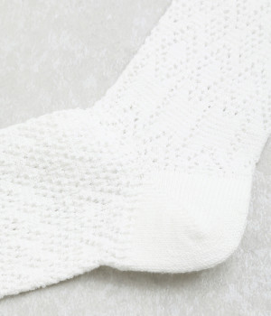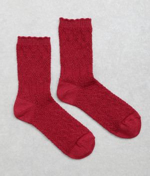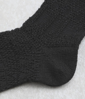凹凸のある編み柄で個性を持たせたソックス。リネン混なのでさらっとした肌触りが心地よく、吸湿・放湿性に優れているので季節問わずはきやすくなっています。
