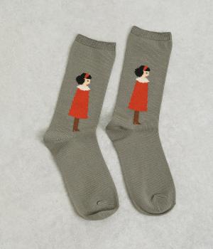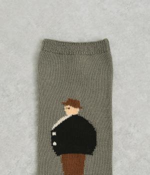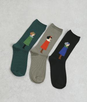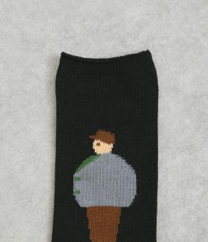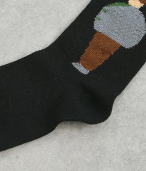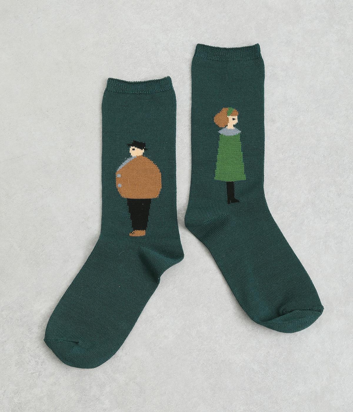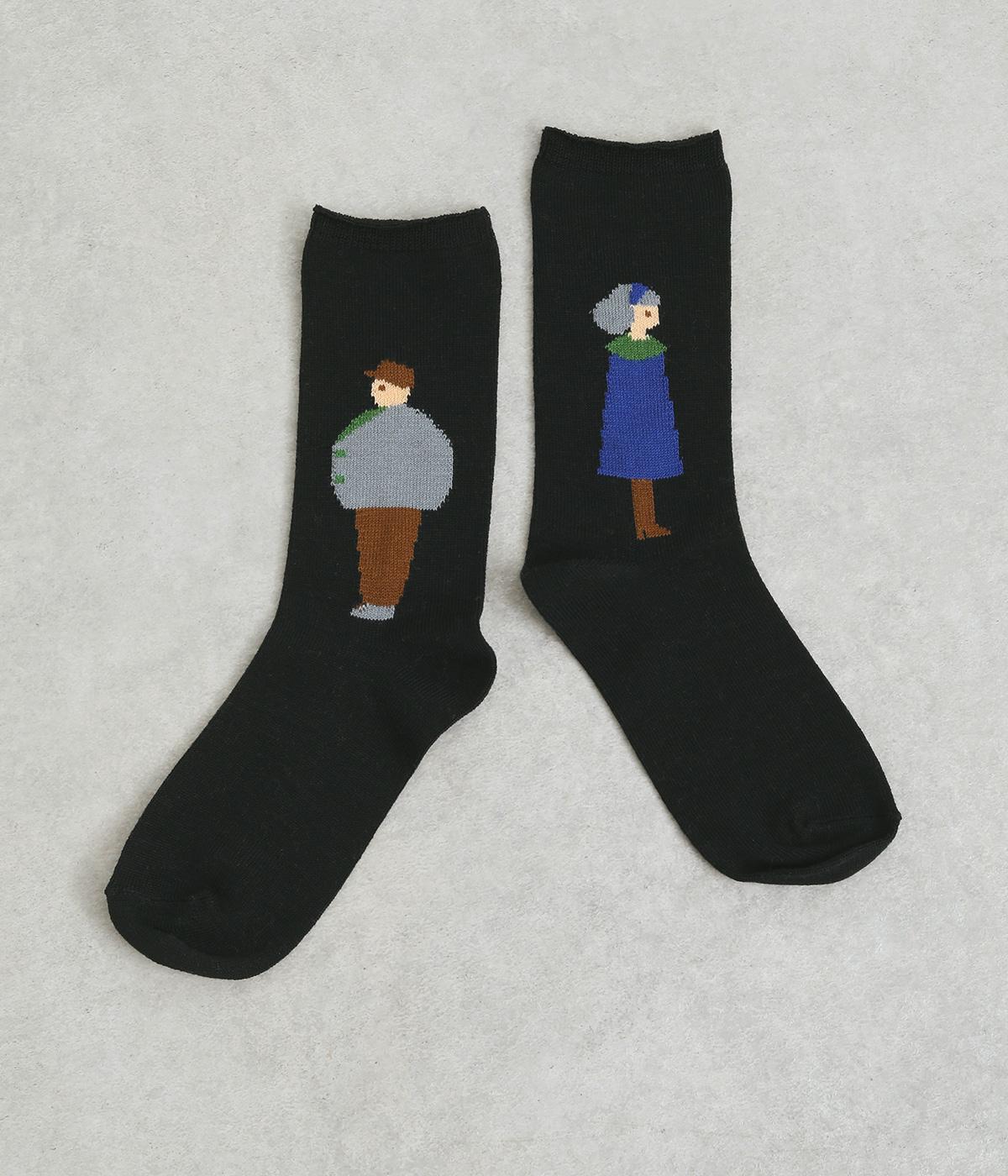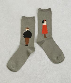 左右で異なる柄をデザインした遊び心あふれるソックス。かわいらしいカップルが描かれ、目に入るたびに楽しい気持ちにさせてくれます。目を引く配色がコーディネートのアクセントにぴったりです。
