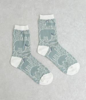 版画タッチで描かれたさまざまな動物がユーモアで可愛らしいソックスです。たのしげな動物が癒されるデザインで、落ち着いた配色もグッド。ナチュラルやカジュアルテイストなデイリースタイルに取り入れやすい仕上がりです。