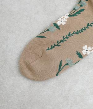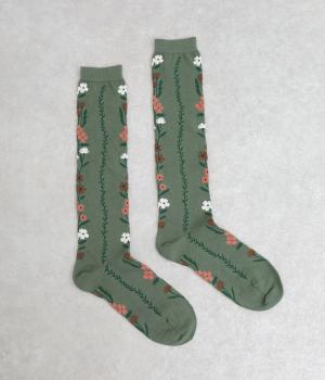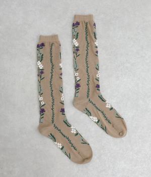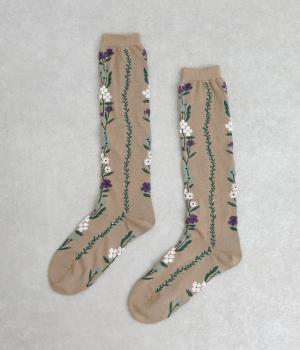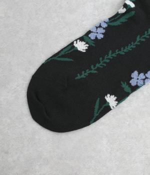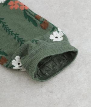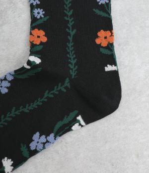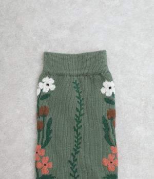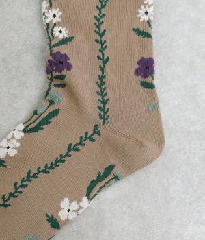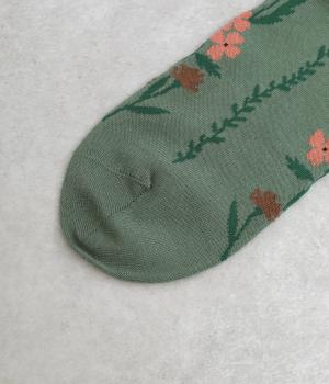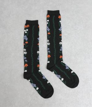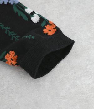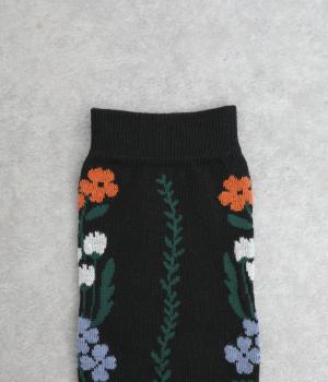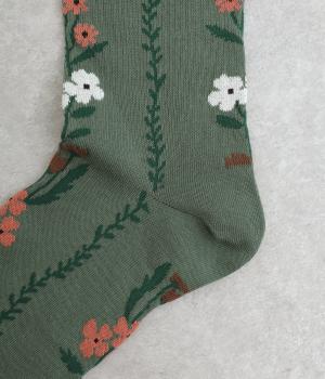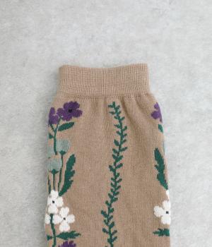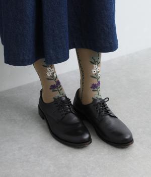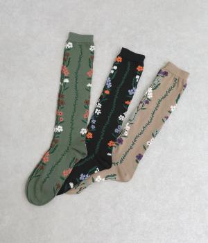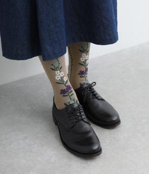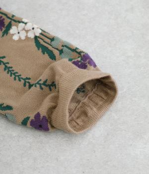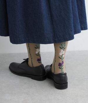 「幸せをつなぐ」という意味を持つフランス語「シェノン」。その名の通り、草花が連なったガーリーテイストな雰囲気のいいソックスです。着用すると前後に花ラインがきて、後ろ姿までかわいらしくなります。ひざ下あたりまでのロング丈もグッドポイント。