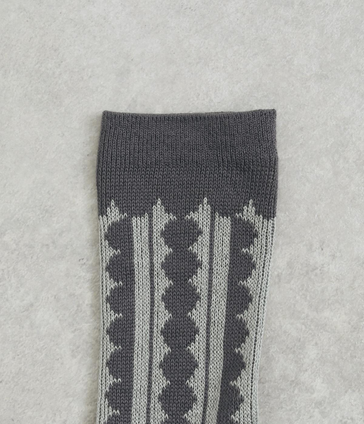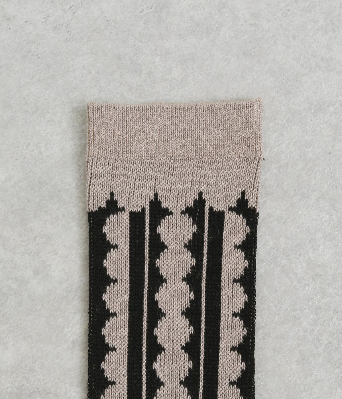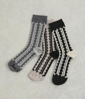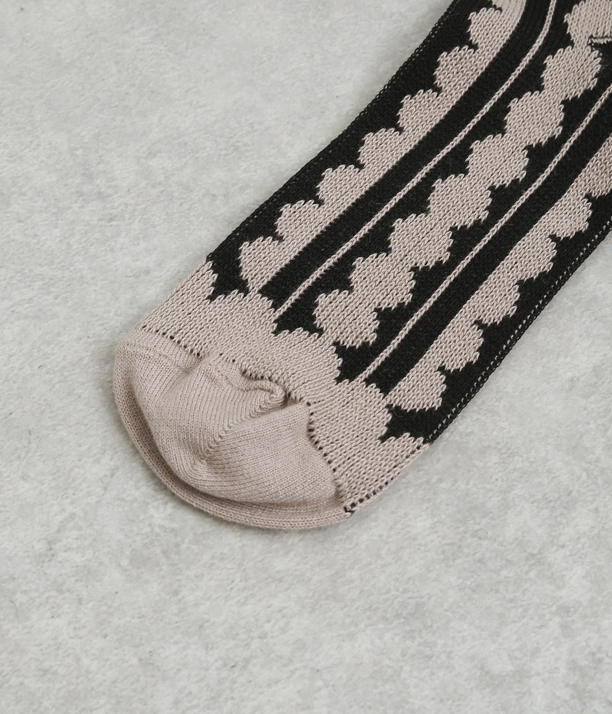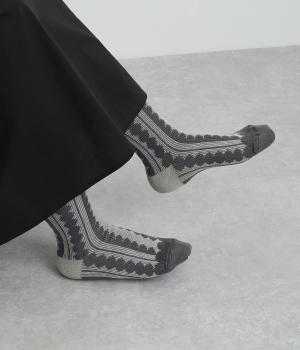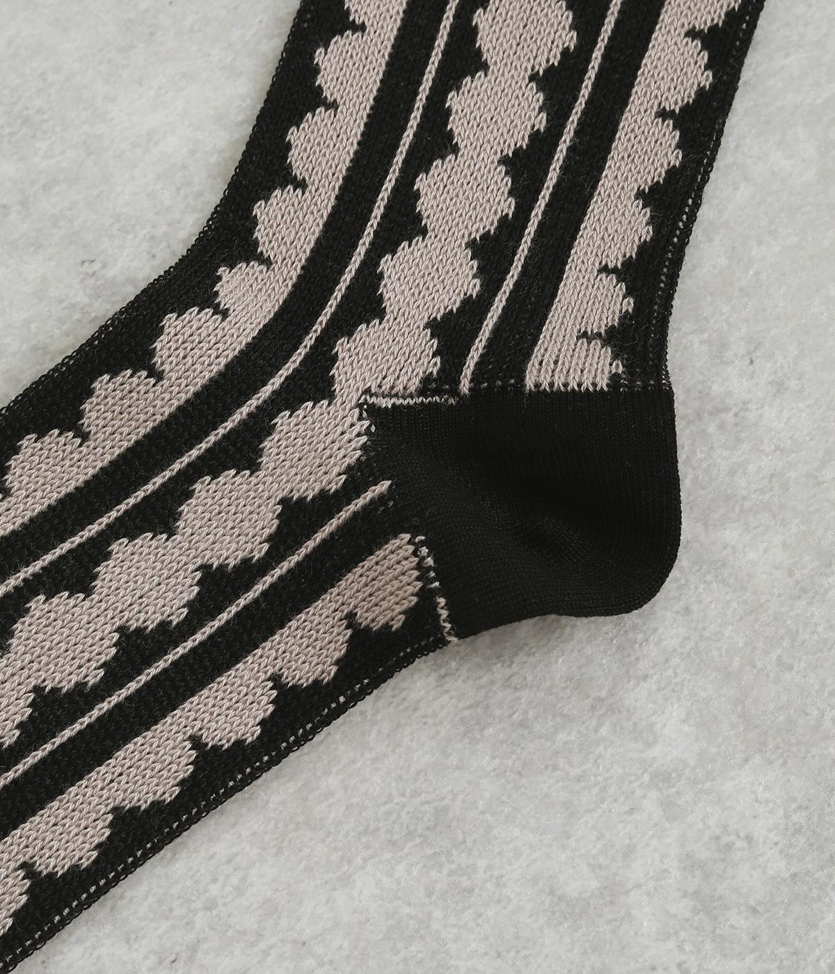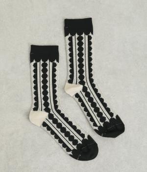 ビーズやレースをイメージしてデザインされたクラシカルなムードただようソックス。シックな配色が大人っぽく、カジュアルにもきれいめにも合わせやすいのがグッドです。ボトムスの裾からちらりと覗かせるだけでおしゃれなアクセントになります。
