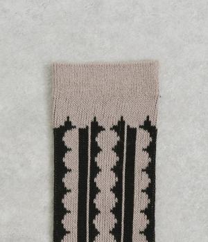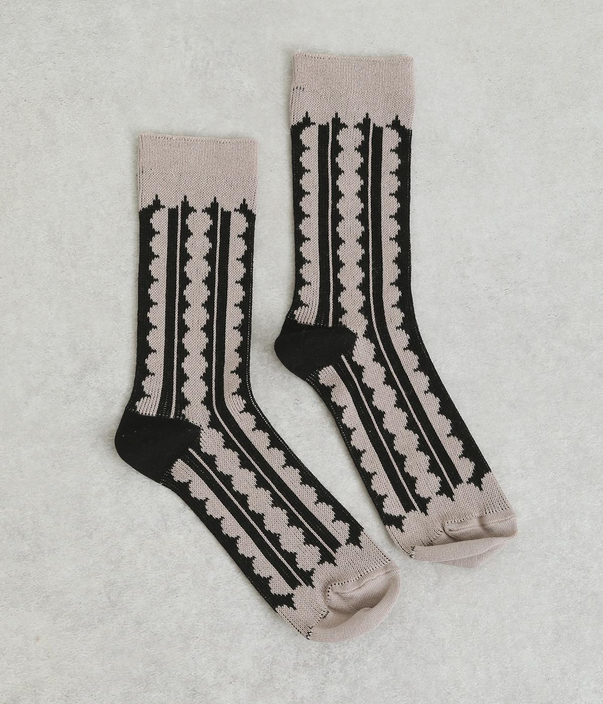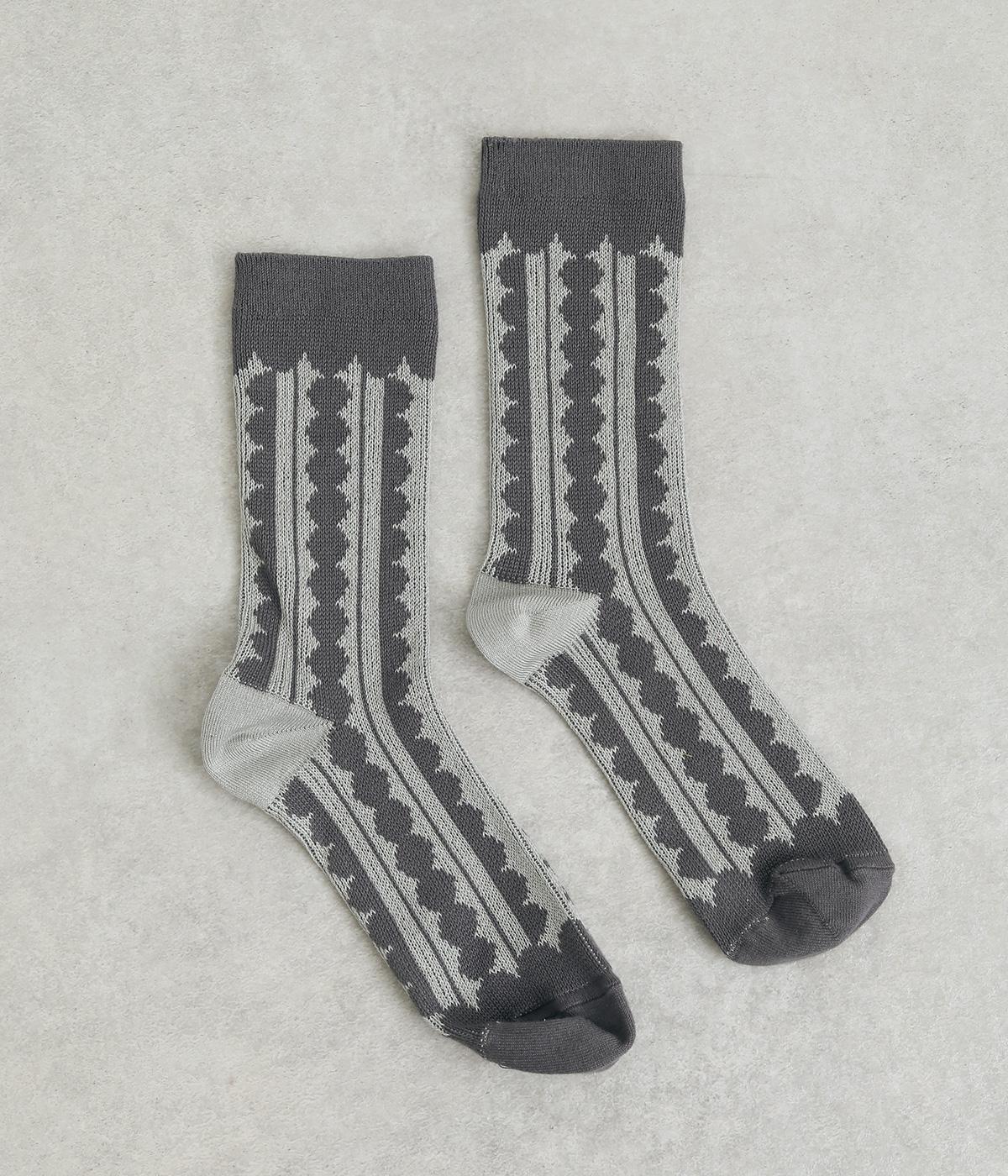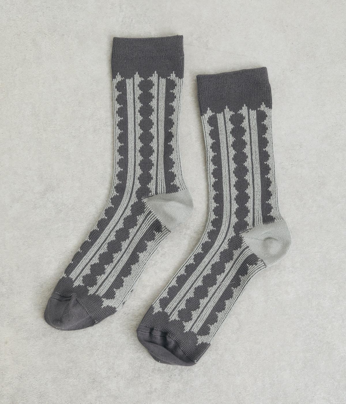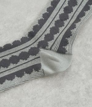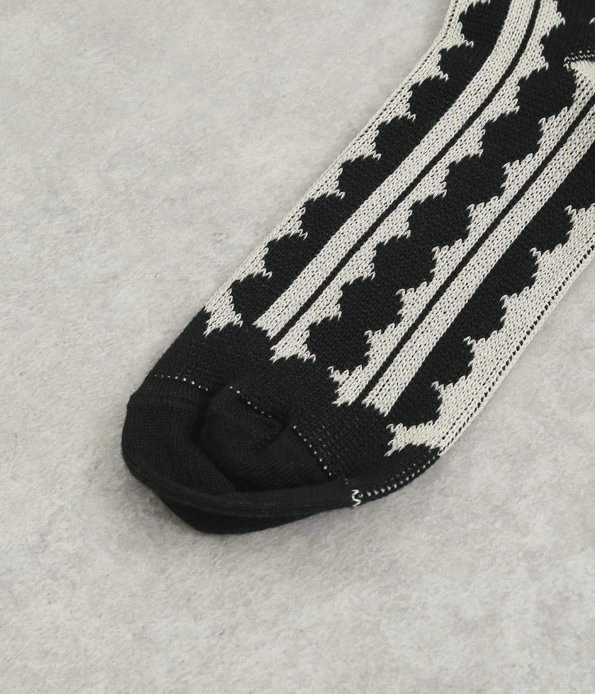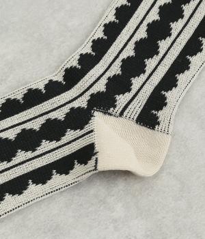 ビーズやレースをイメージしてデザインされたクラシカルなムードただようソックス。シックな配色が大人っぽく、カジュアルにもきれいめにも合わせやすいのがグッドです。ボトムスの裾からちらりと覗かせるだけでおしゃれなアクセントになります。