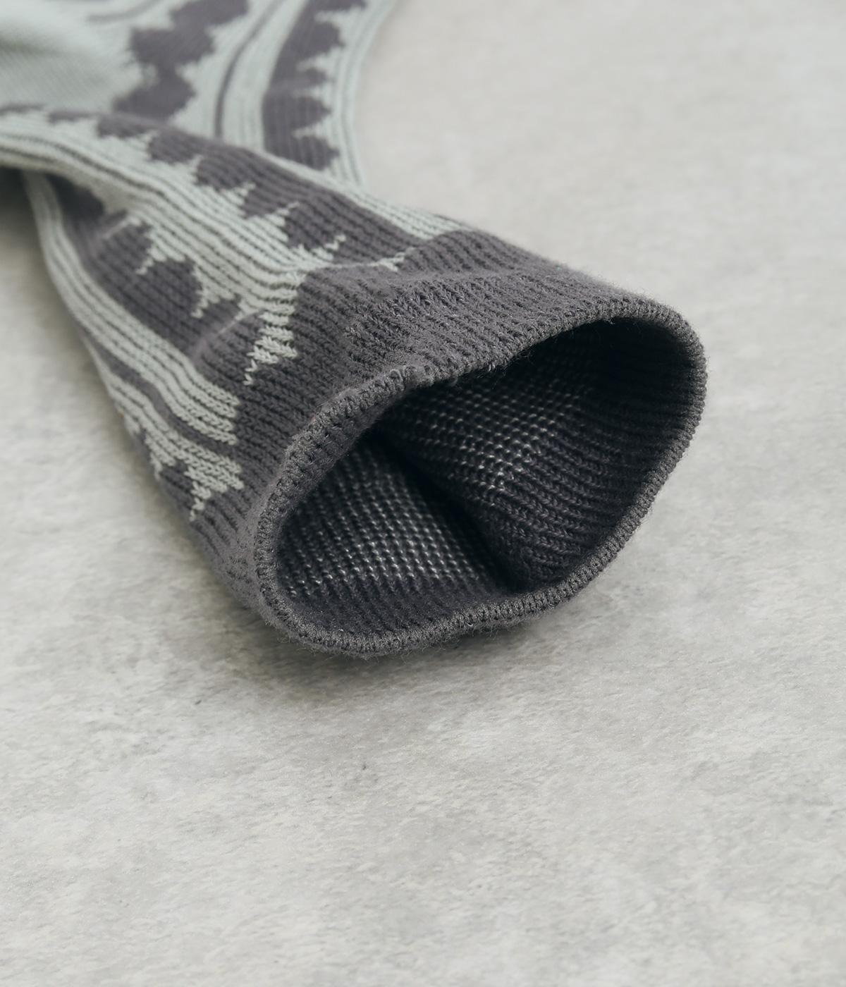 ふっくらとしたほどよい厚みのあるコットン混ニット生地。ジャカード編みを用いたあたたかみのある風合いが魅力です。