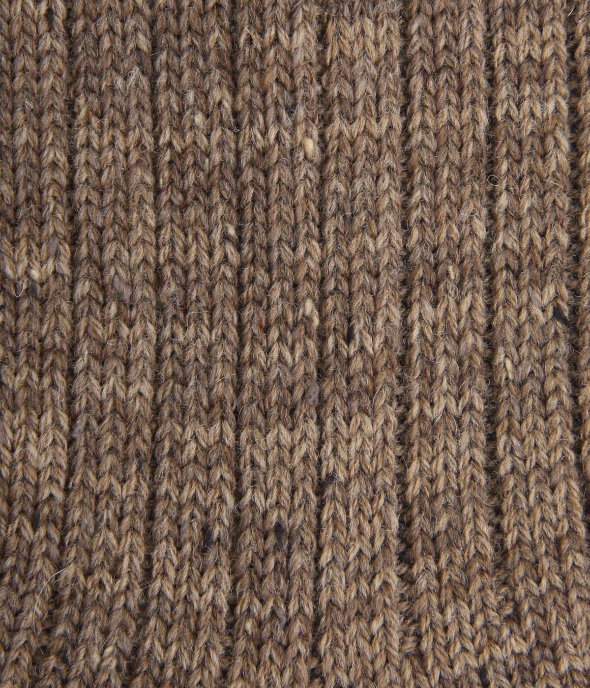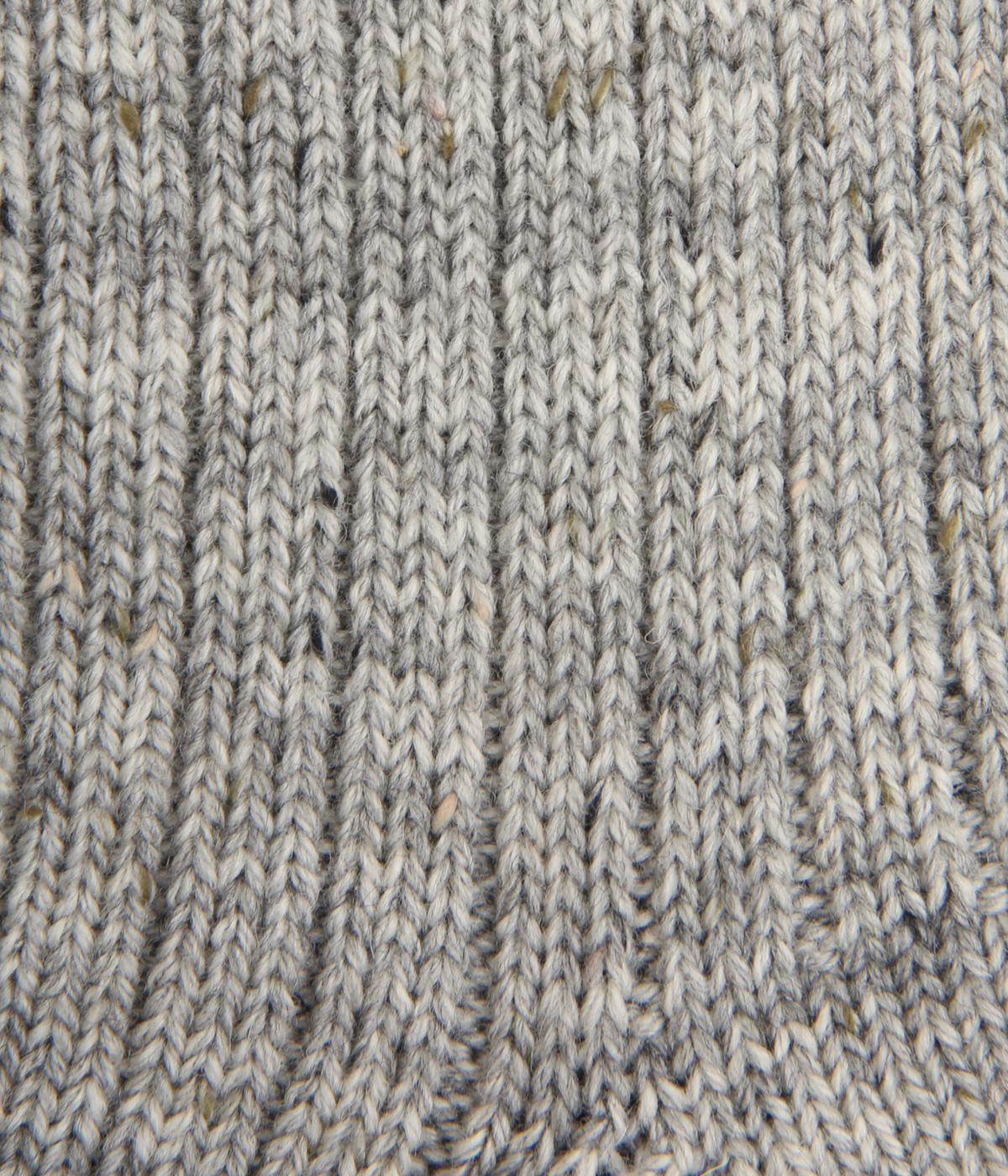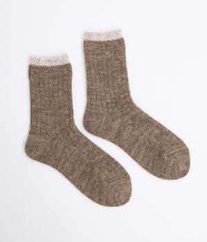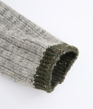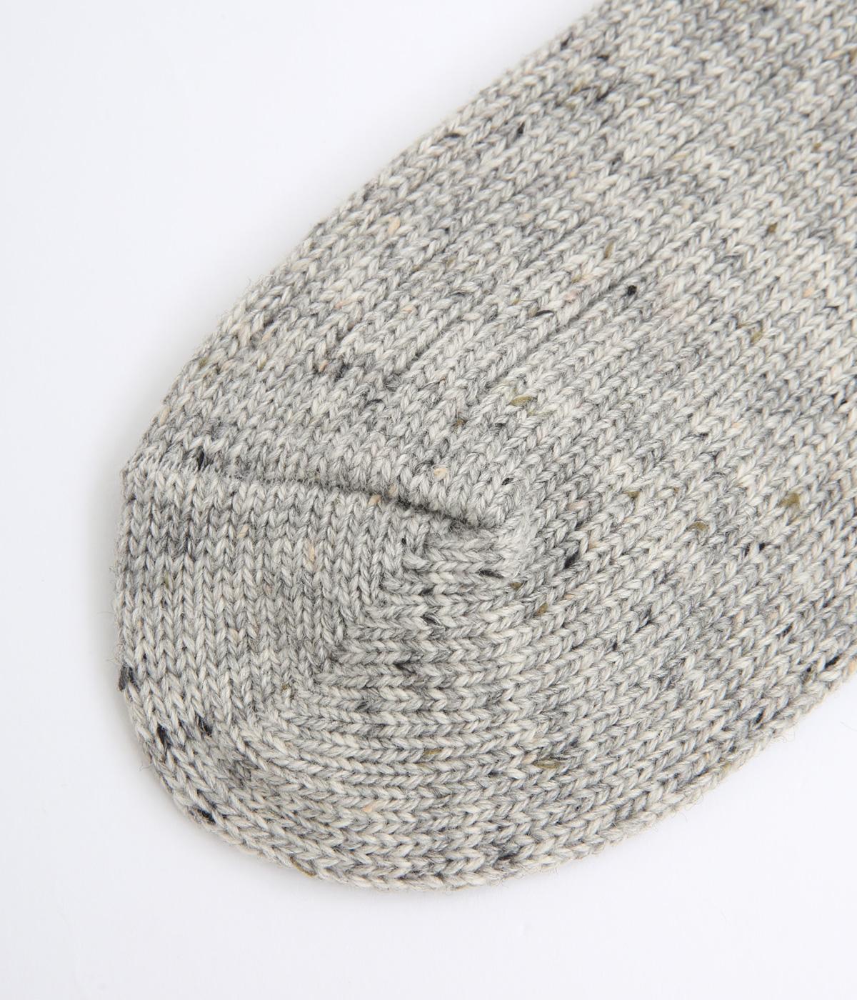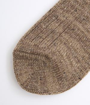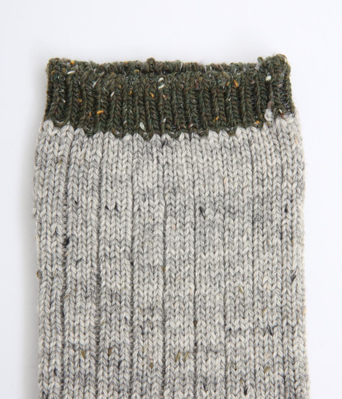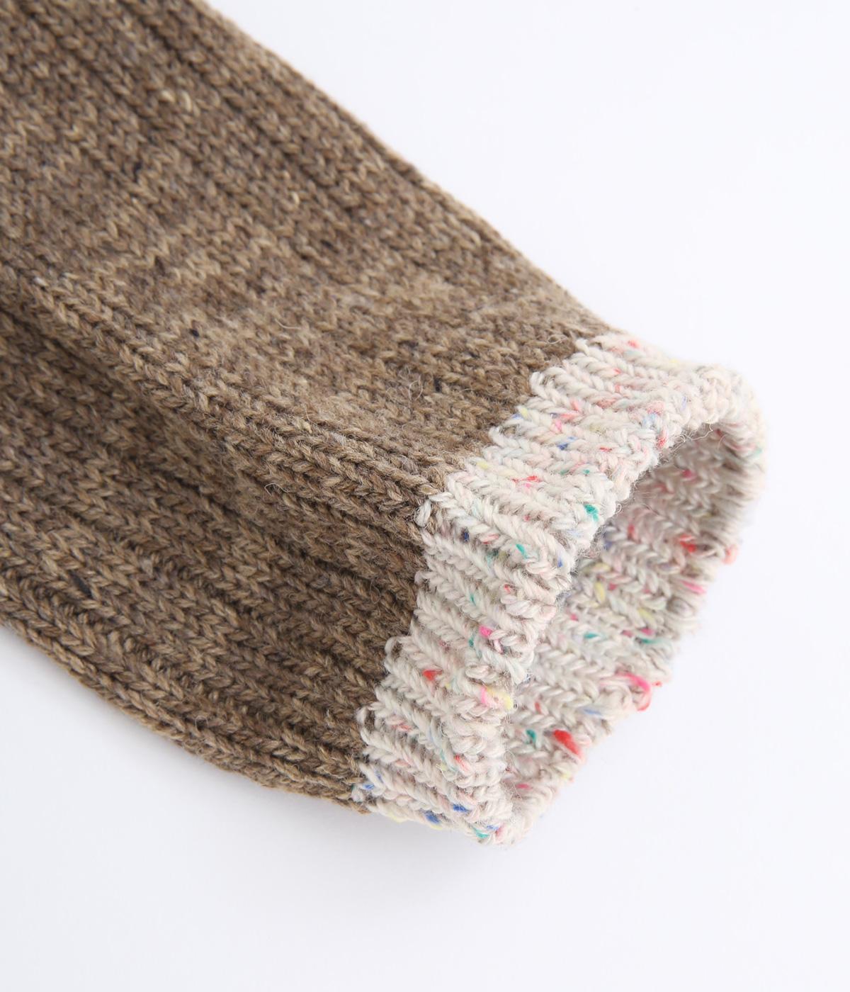 ほっこりとしたあたたかみのあるカラーネップに防縮ウール糸で編み立てたニットソックス。リブ編みではきやすく、ほどよく厚みがあります。
