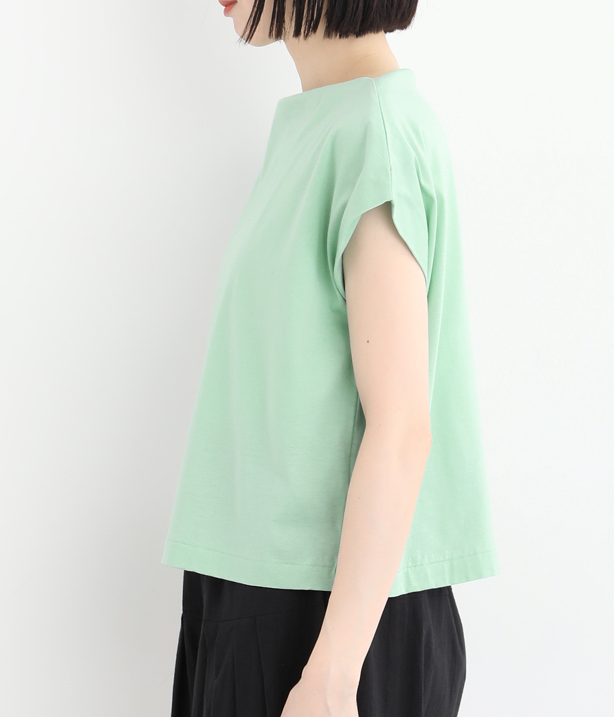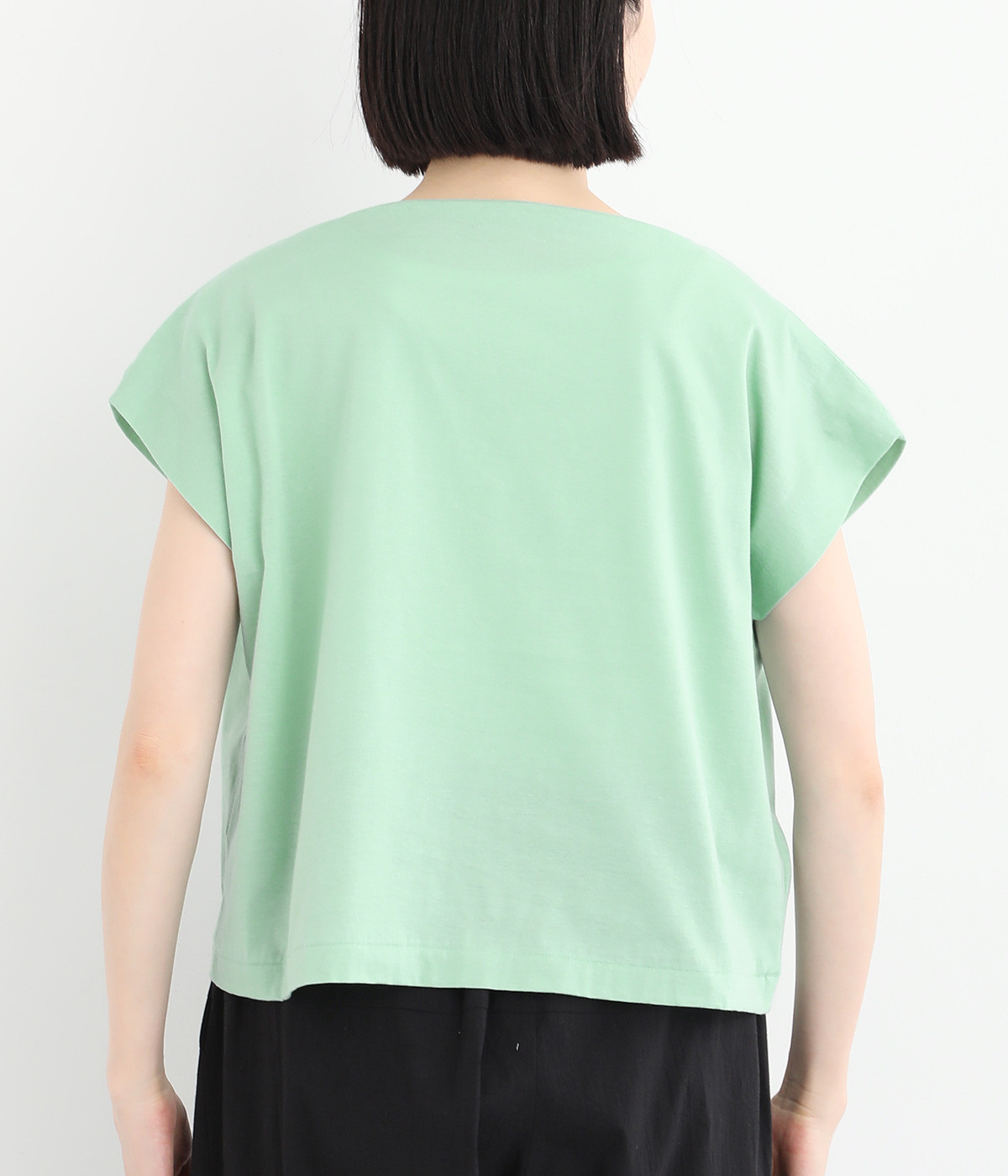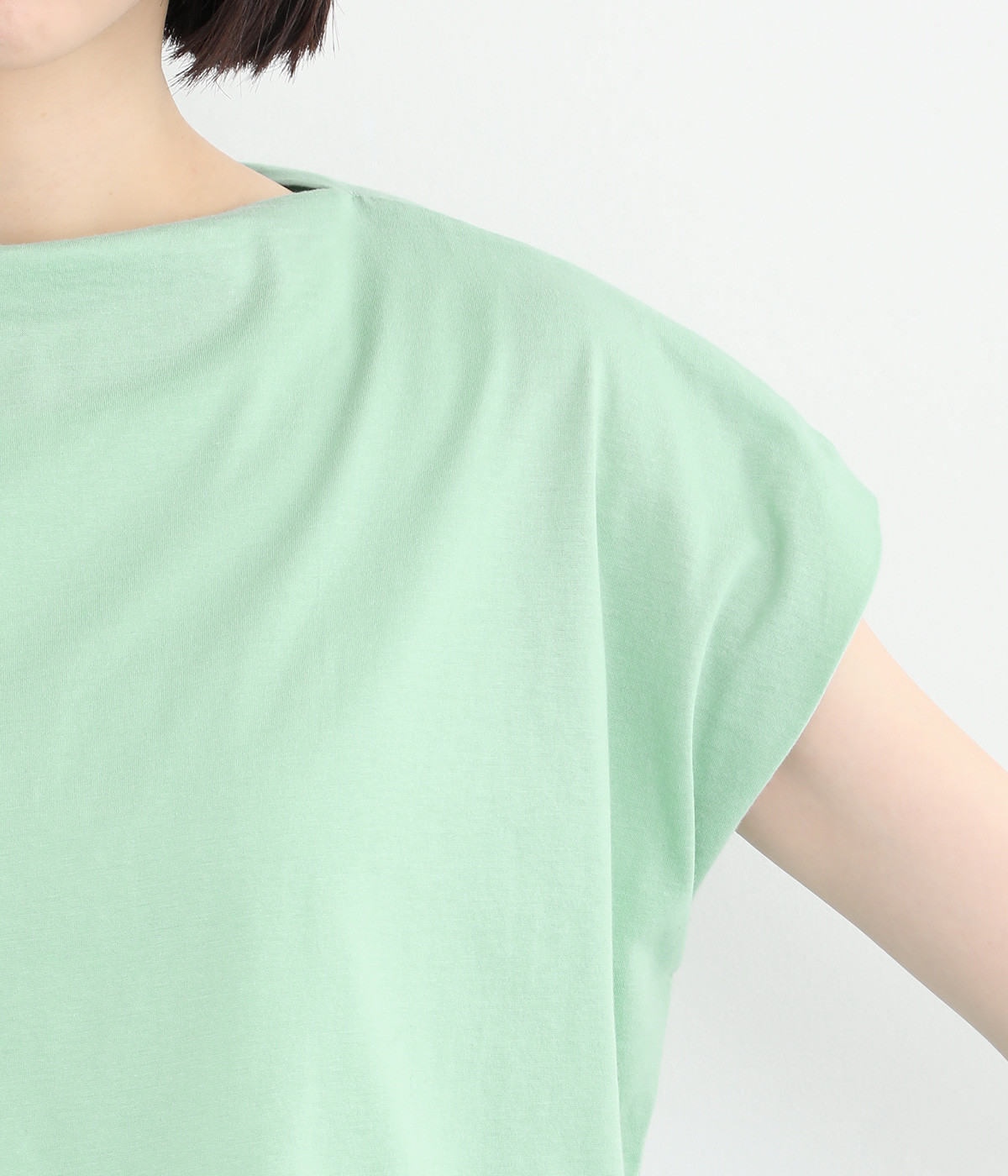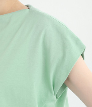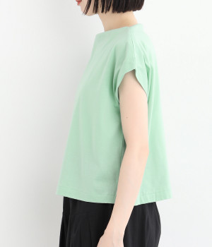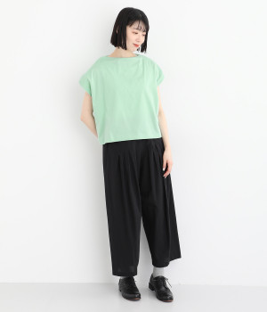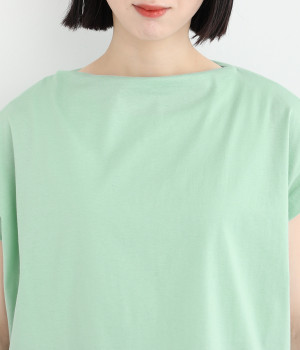 すっきりとしたボートネックにちょこんとついたフレンチスリーブが特徴的な一枚。コンパクトなサイズ感がミニマルな仕上がりで、いつものTシャツスタイルもちょっと品よく見せてくれる存在です。