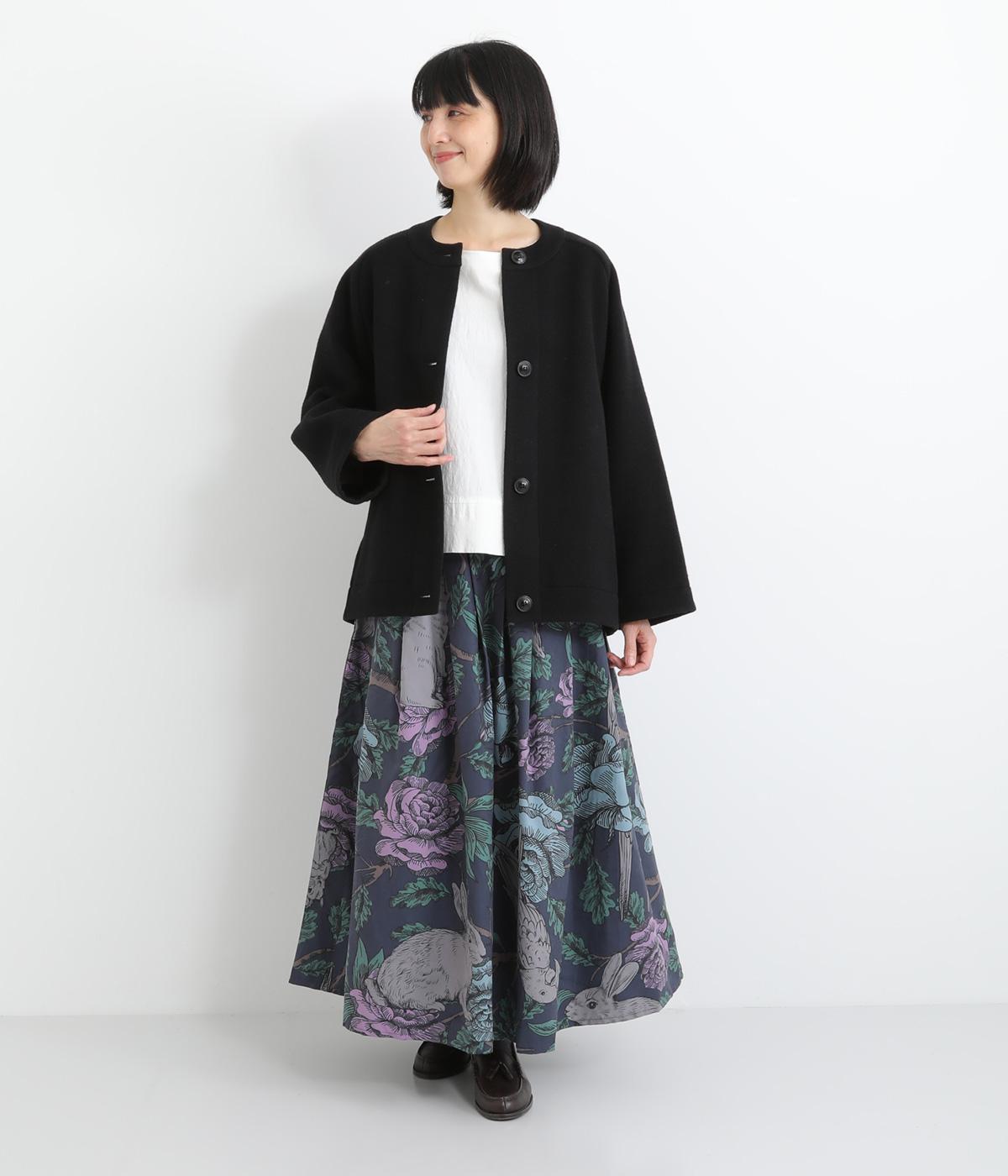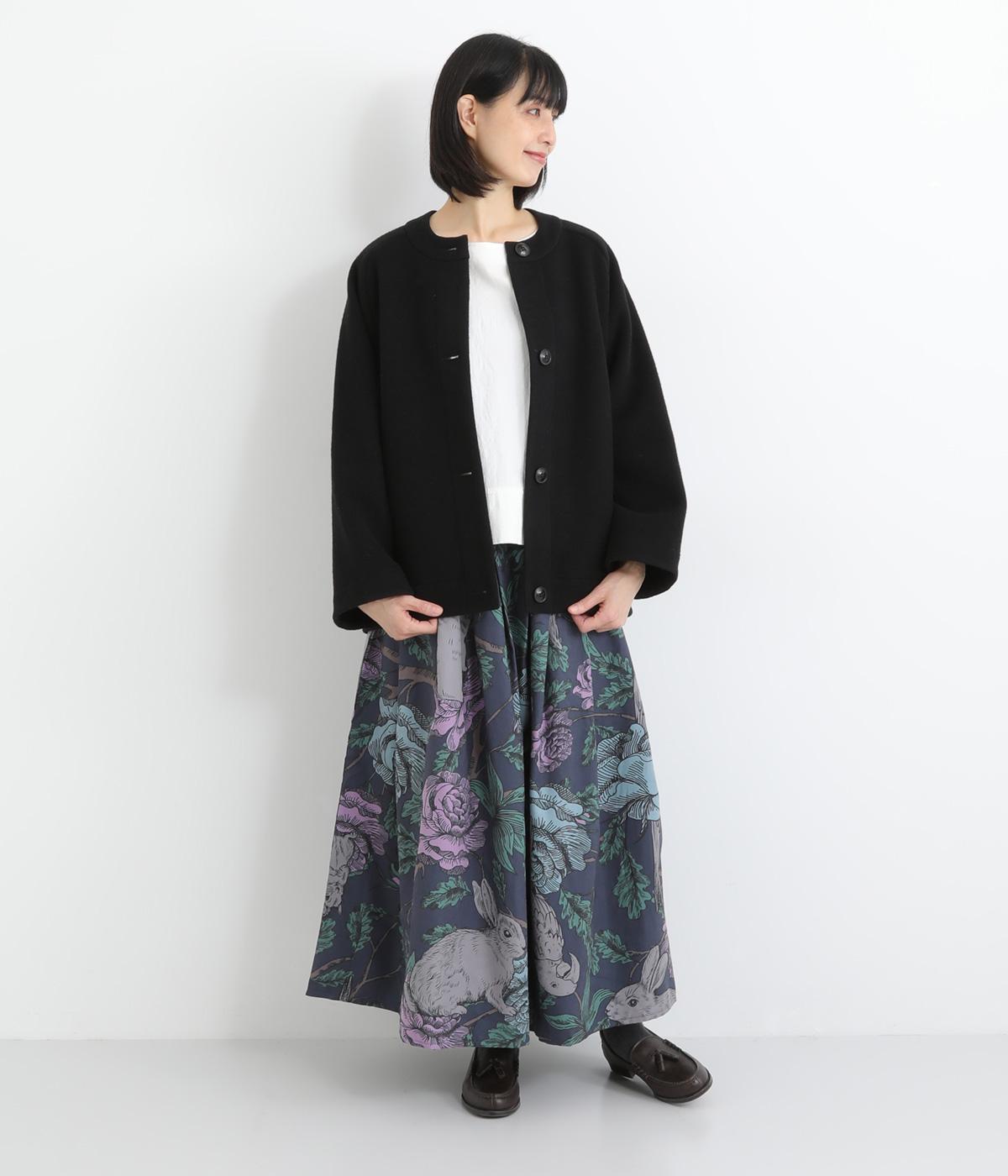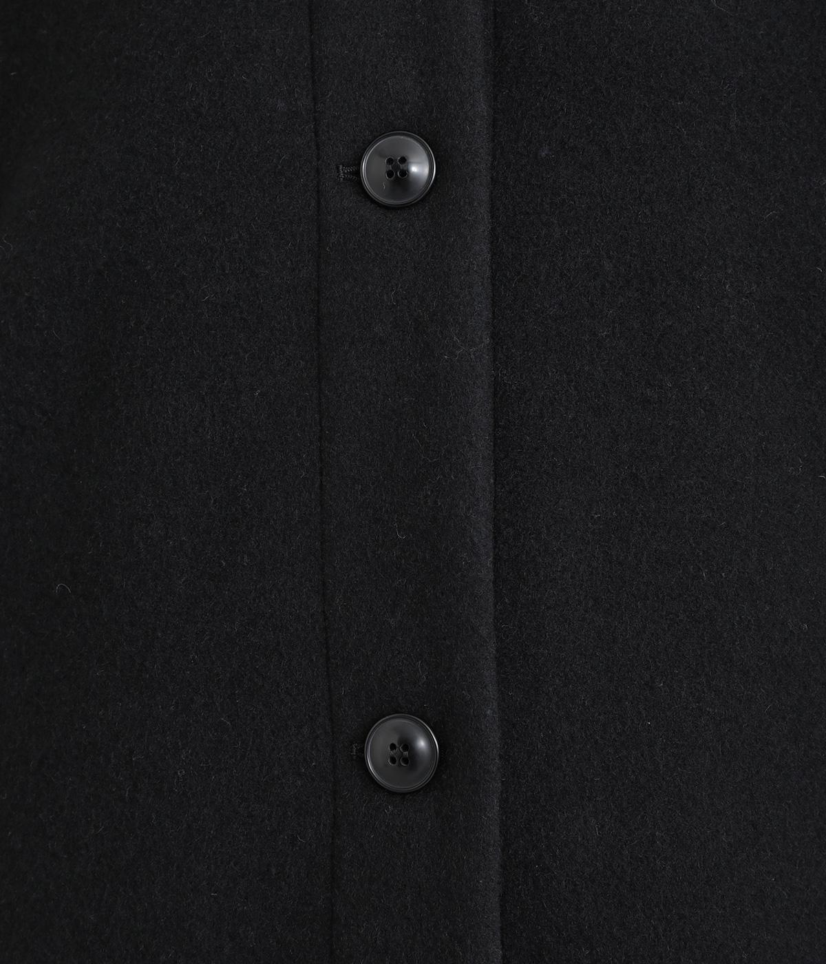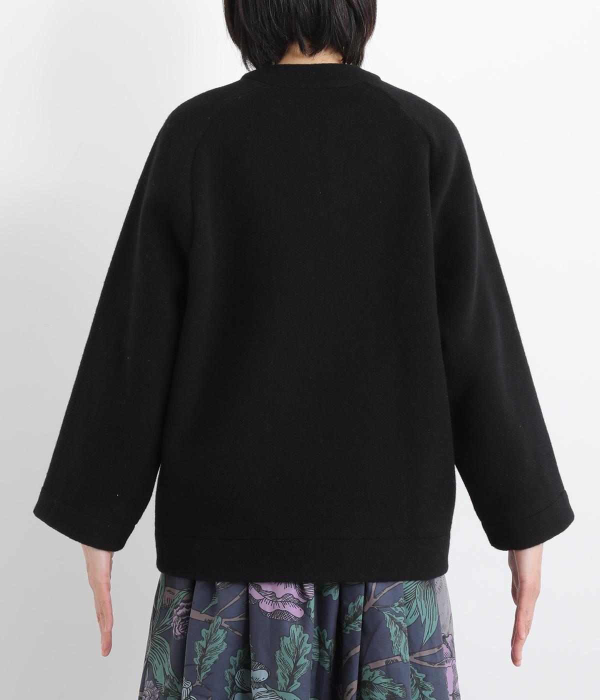 適度に厚みがあり、なめらかな手触りでフェルトのような感触が特徴的なメルトン生地を使用。保温性が高く、ポリエステル製で重すぎない羽織りやすい仕上がりです。