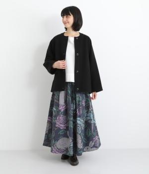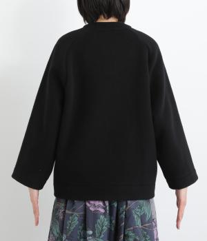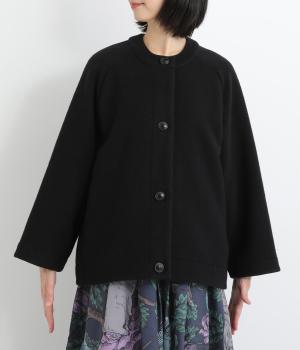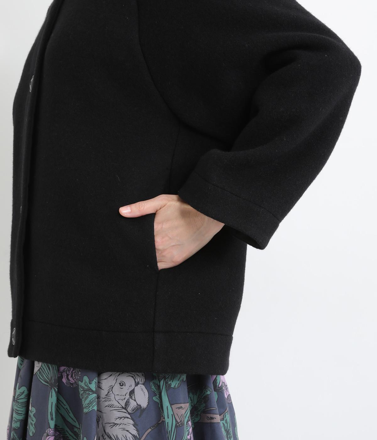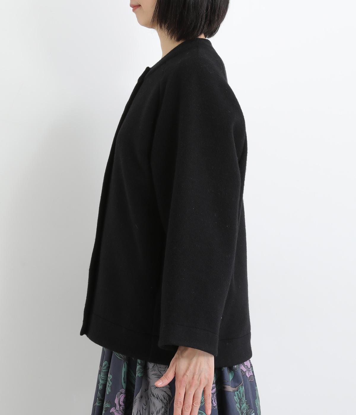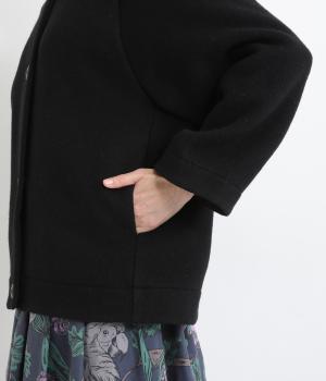 ゆとりのあるボックスシルエットをショート丈ですっきりまとめました。ラグランスリーブでラフに羽織りやすく、それでいてクラシカルな重厚感も。大きめのボタンもどこかレトロな印象で、シンプルながらも雰囲気のいい一着です。
