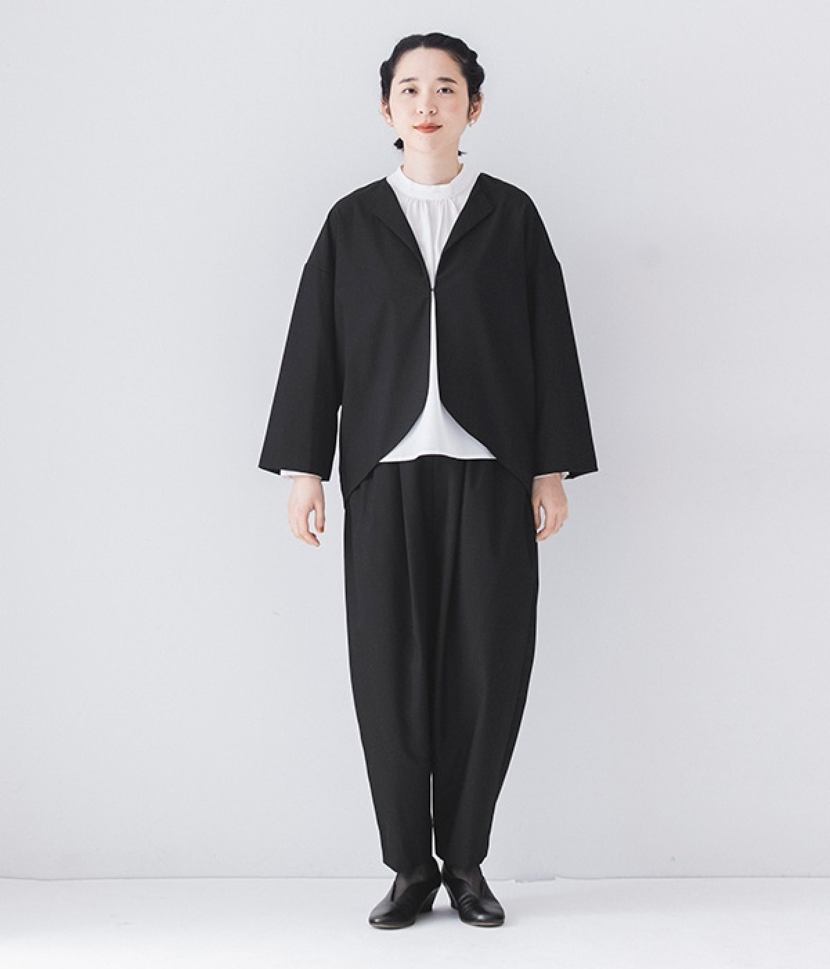 s.t.closet frabjousとナチュランのコラボレーション。ジャケット・ブラウス・パンツの便利な3点セットです。