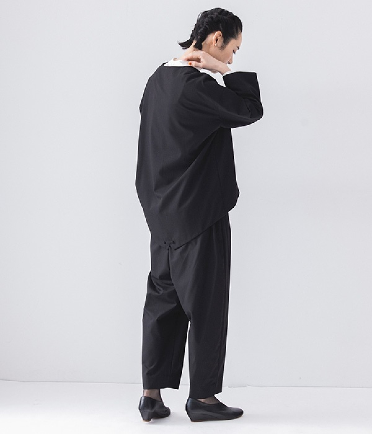 パンツはももまわりをゆったりとし足口を少しスリムにしたこだわり仕様。裾を折り返して足元に抜け感を出しても素敵です。