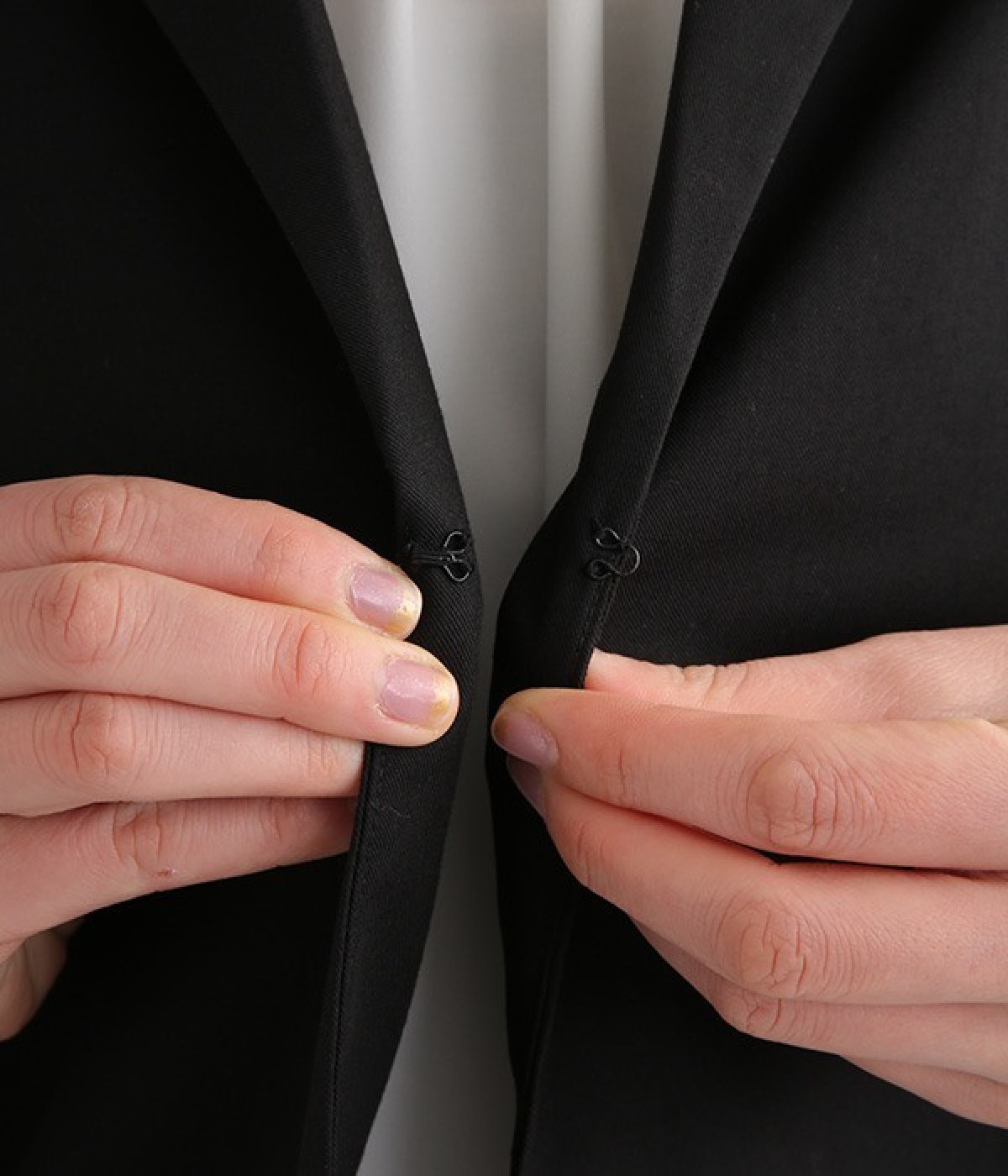 (ジャケット本体)ポリエステル80% レーヨン20% (ジャケット裏地)ポリエステル100% (ブラウス)ポリエステル93% ポリウレタン7% (パンツ本体)ポリエステル80% レーヨン20% (パンツ袋布)ポリエステル80% コットン20%