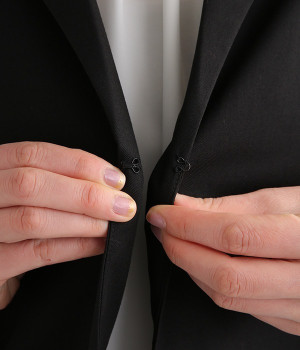 ジャケットはバックスタイルをきれいに見せつつ縦長効果のある燕尾ライン。裏地付きです。