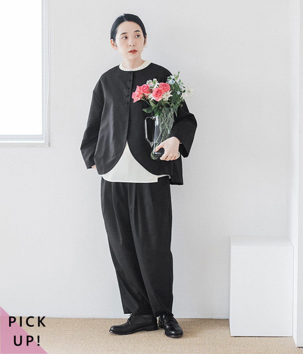 ウエストタックでゆとりを持たせたリラックスシルエット