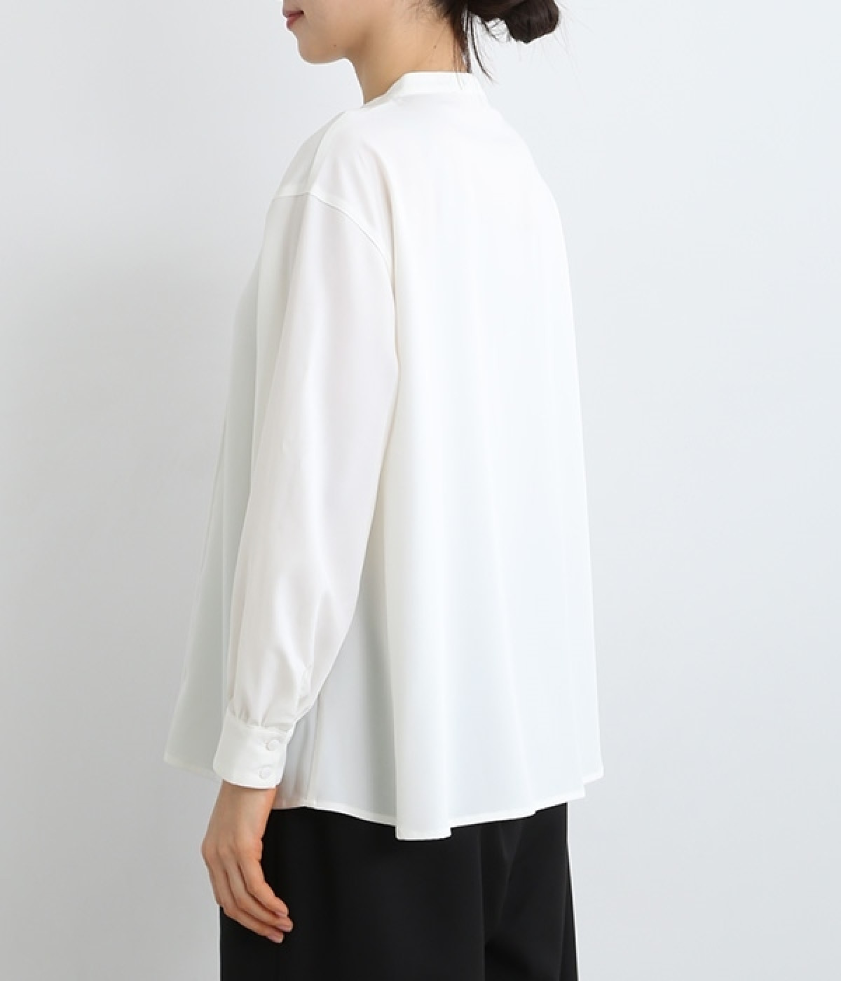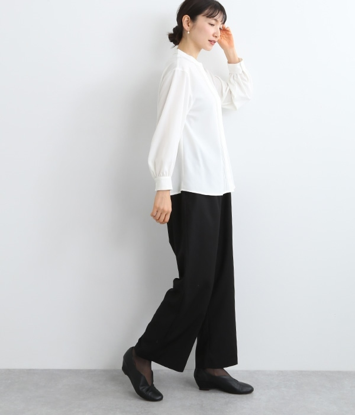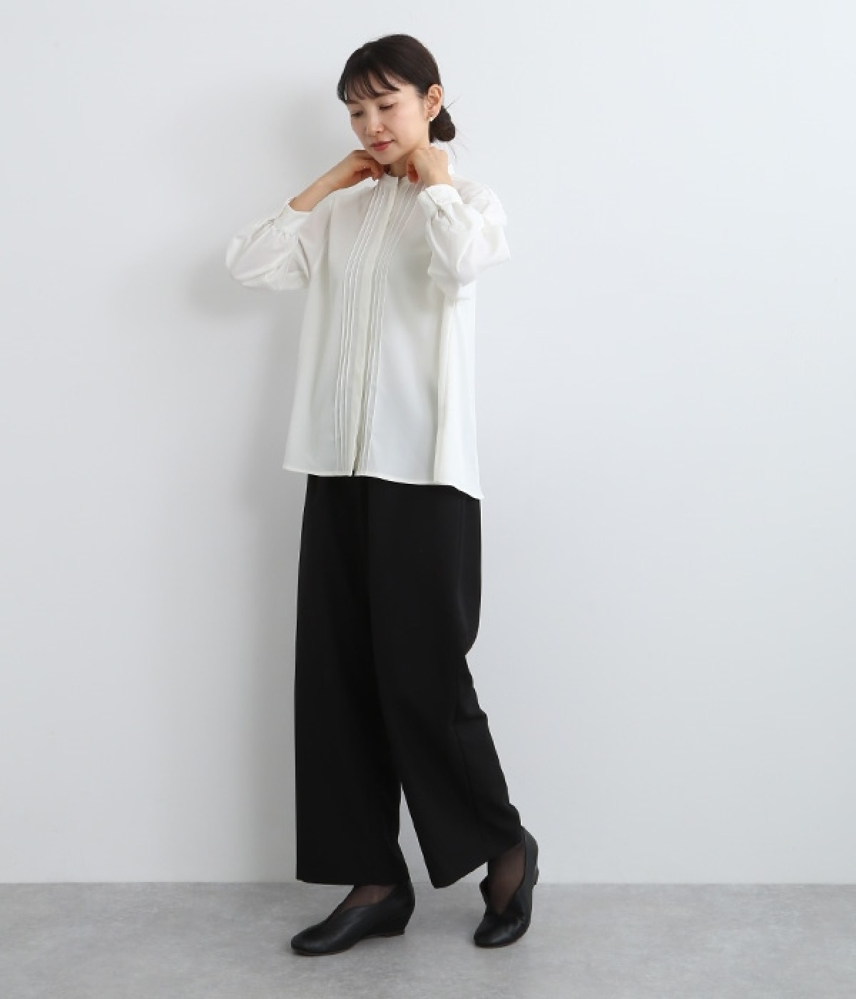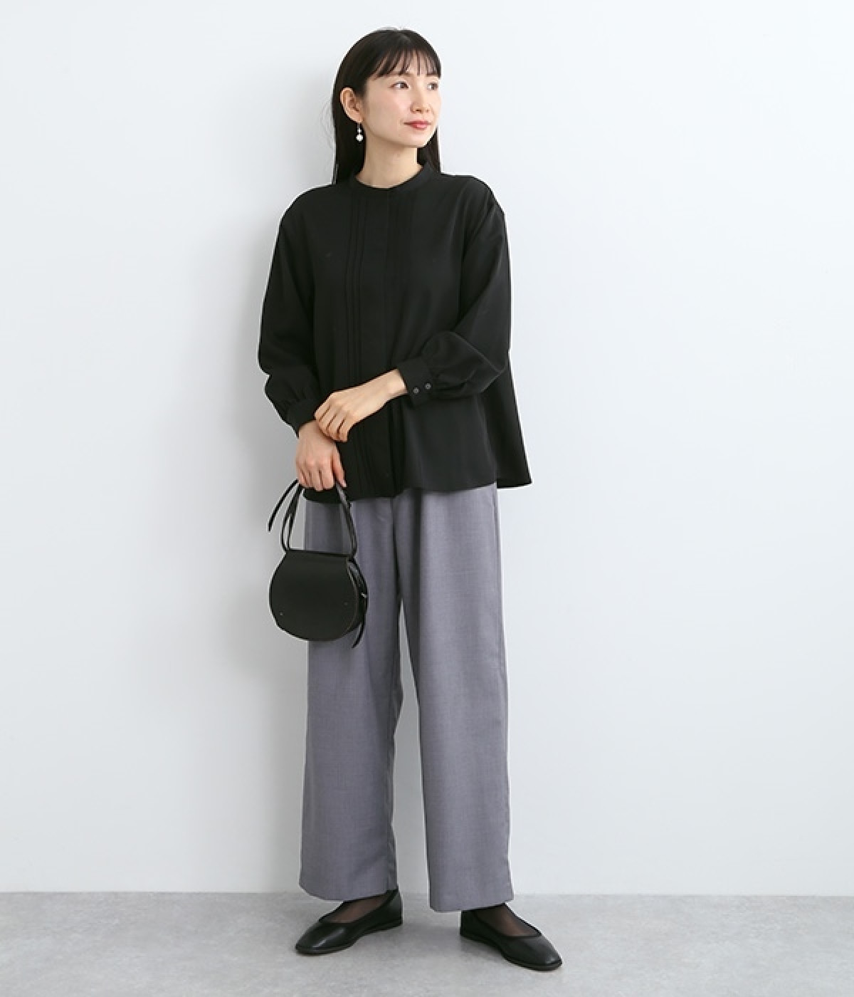 スタイリングに品の良さをプラスする、前立てに寄り添うピンタックがポイントのブラウス。すべるようななめらかさと、美しいドレープが活きる光沢を持った素材で仕立てています。風合いの上品さやピンタックを引き立てるため、フロントはボタンを隠す比翼ですっきりと。きれいめな雰囲気たっぷりの見た目ながら、ポリエステル混でシワが発生しにくいのでデイリー使いに適しています。
