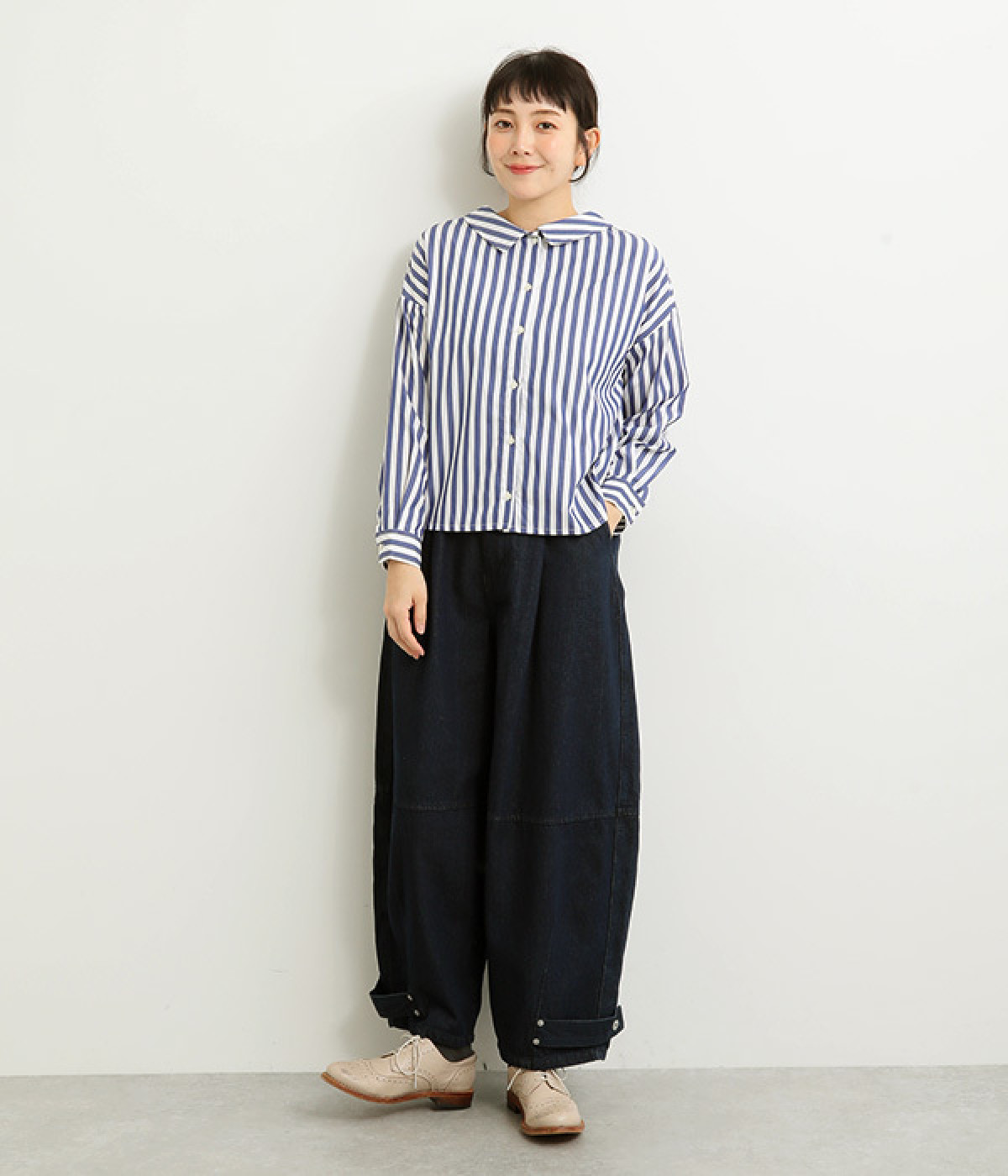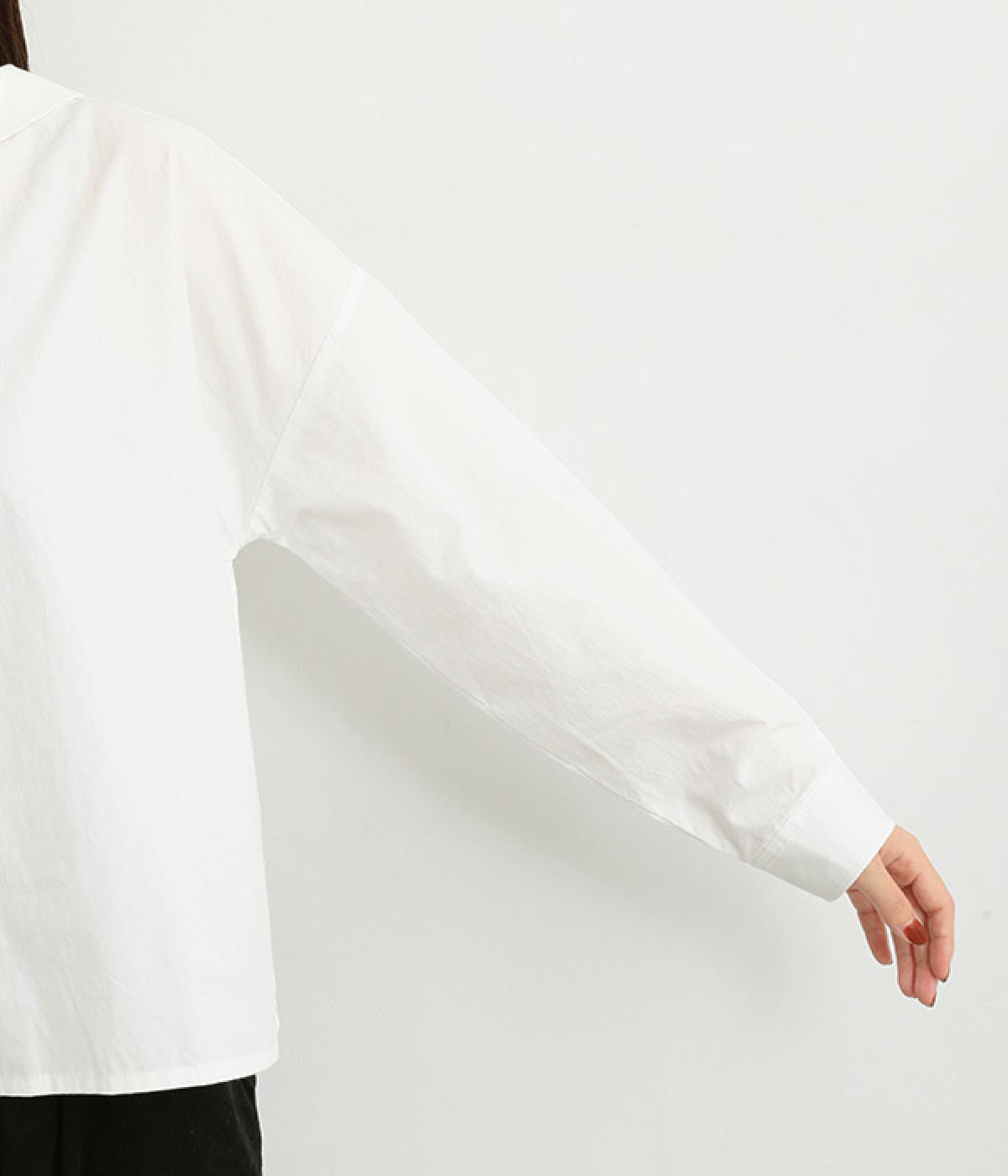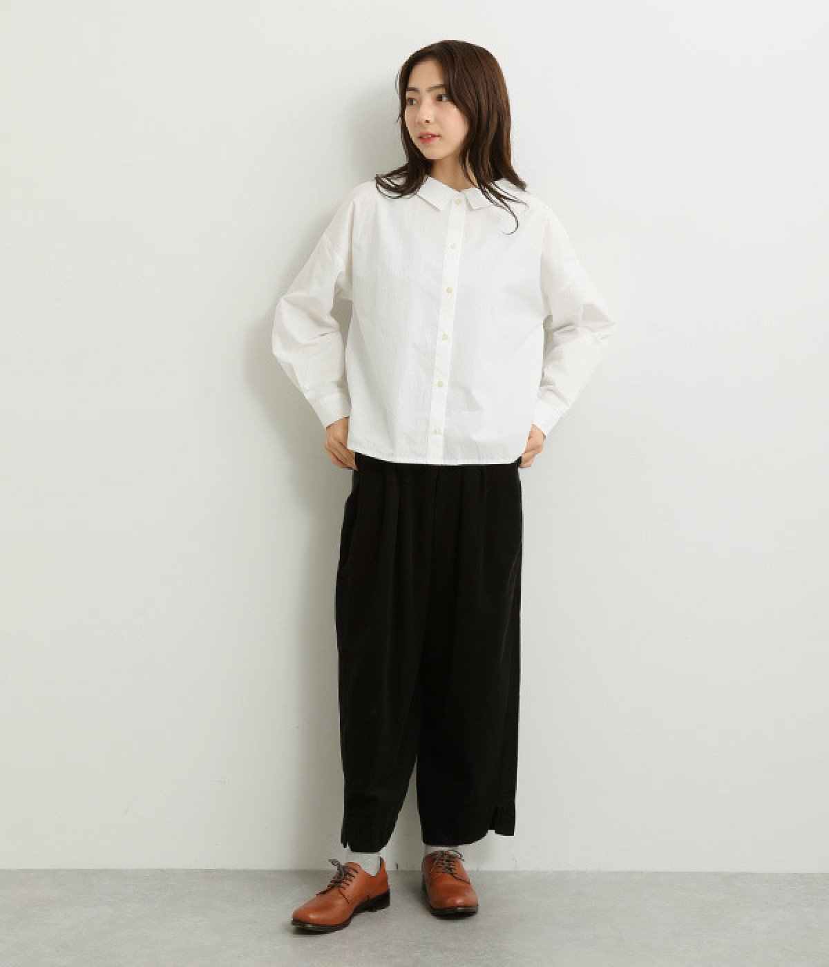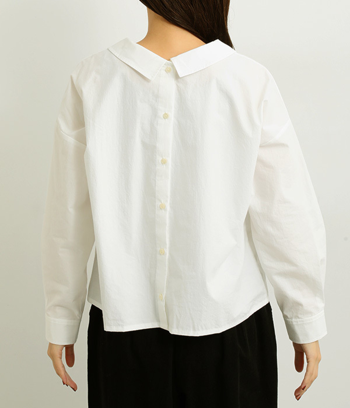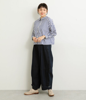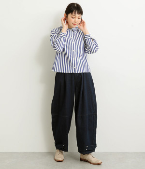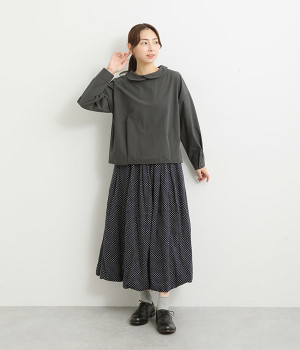 後ろ裾にタックを入れて、ワイドシルエットをふっくらと