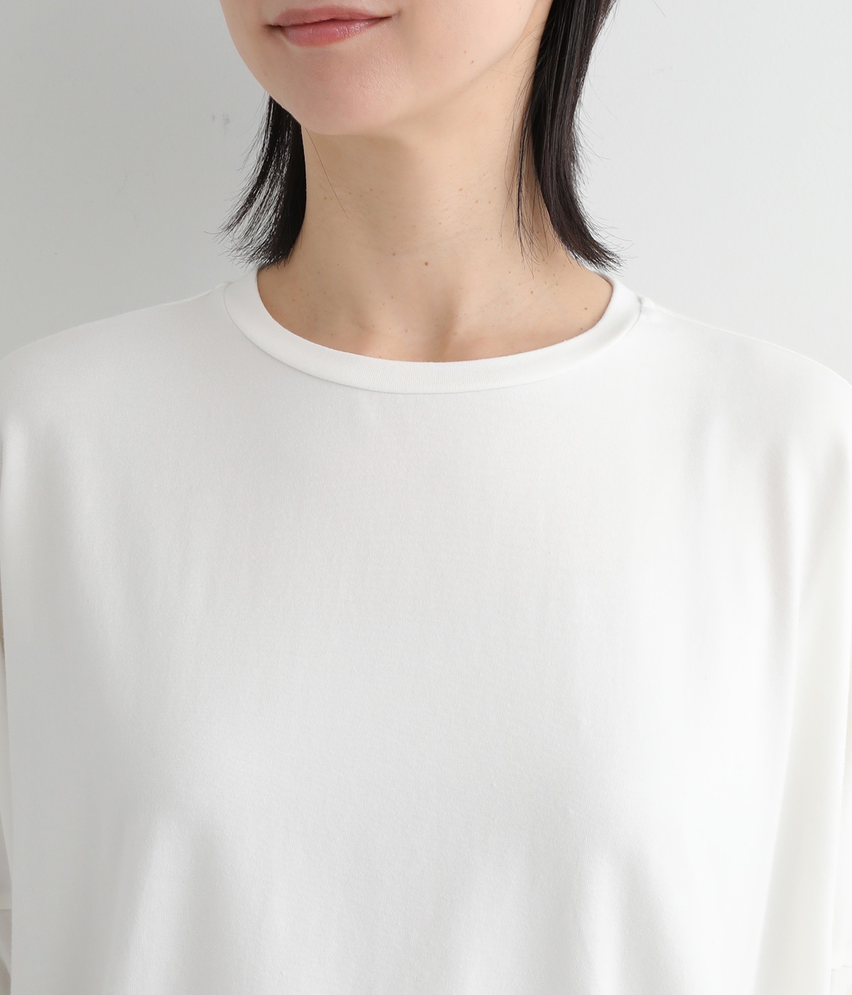 とてもやわらかで伸縮性に優れた天竺素材で仕立てました。薄手ながらも心地よい肉感があり、ストレスを感じることなく着用できます。