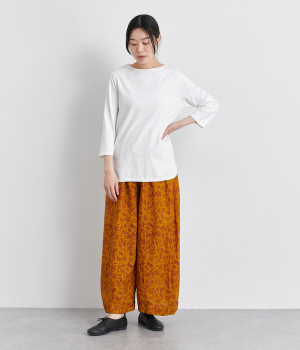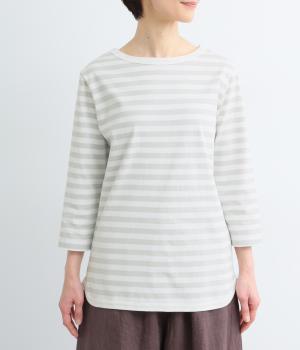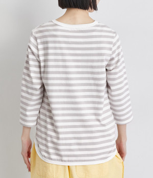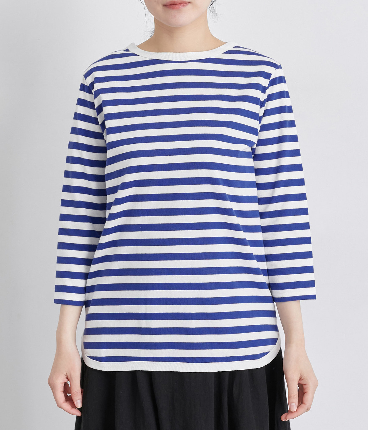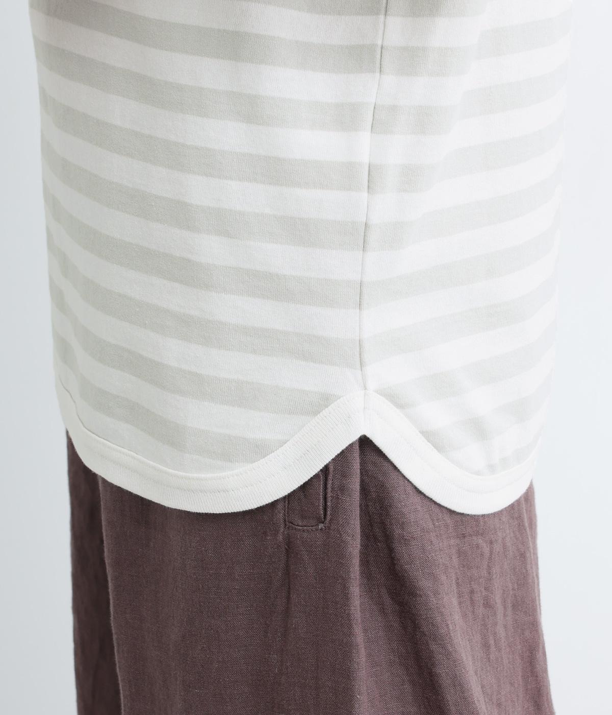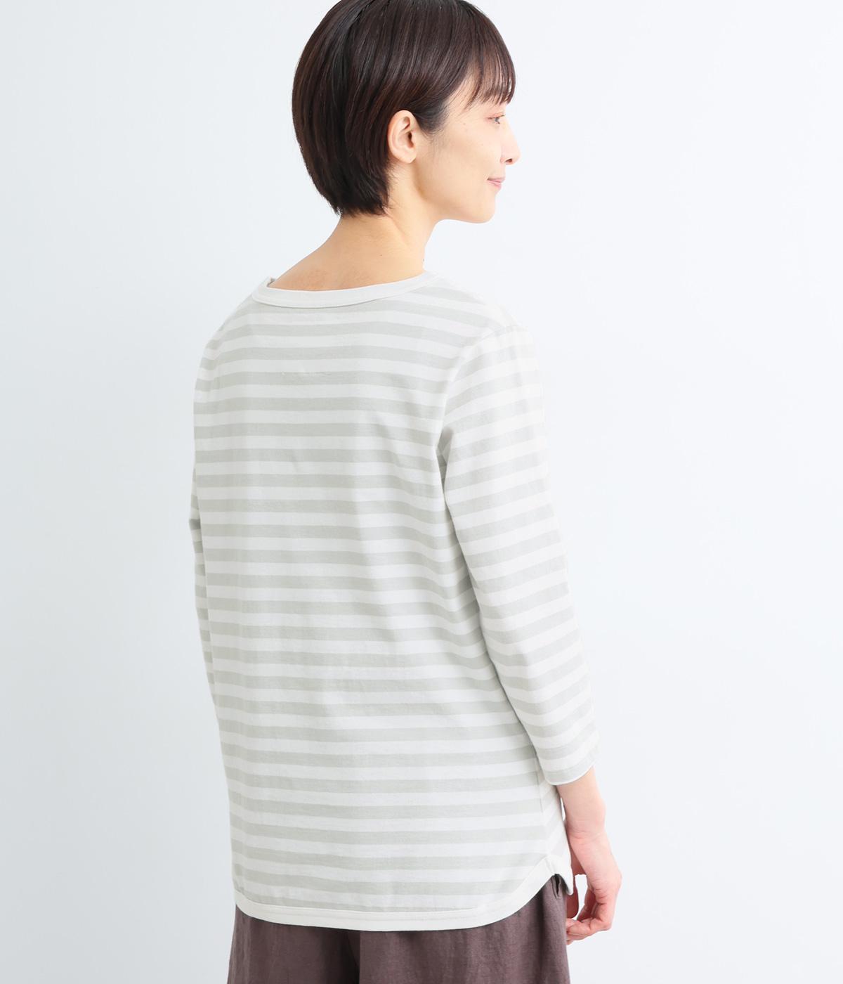 サラッと快適な着心地のコットン天竺生地です。独特の風合いを出す加工をほどこし、一枚一枚異なる味わいが魅力です。ほどよい厚みでデイリー使いにぴったりな素材感です。