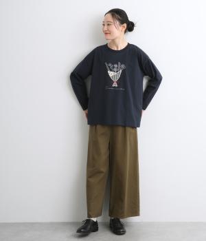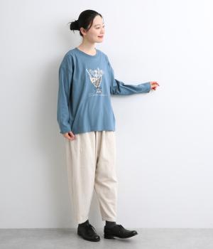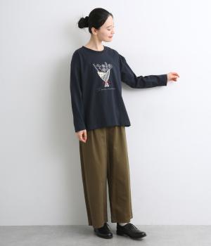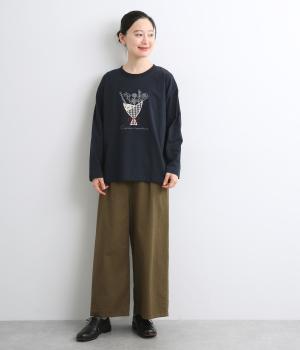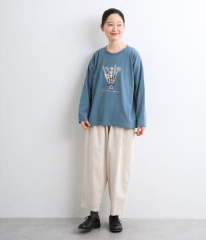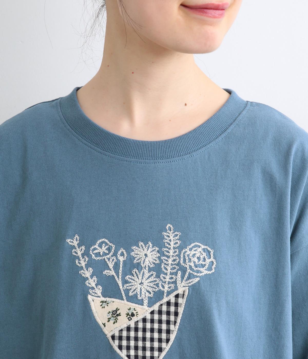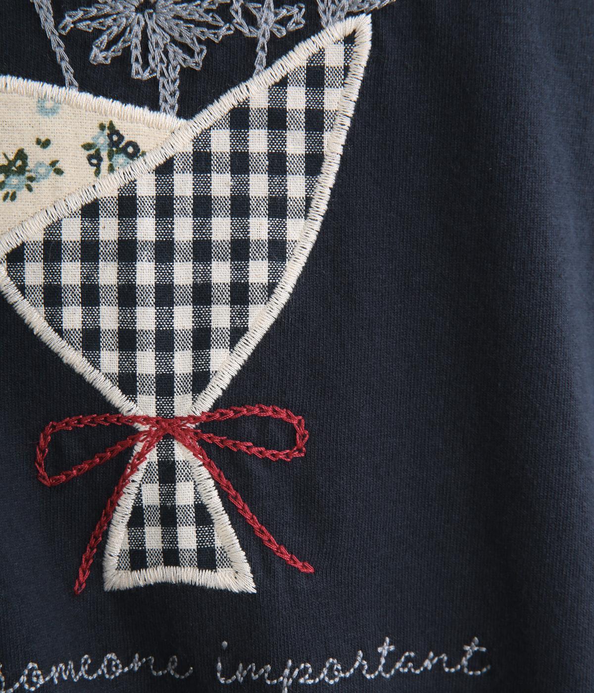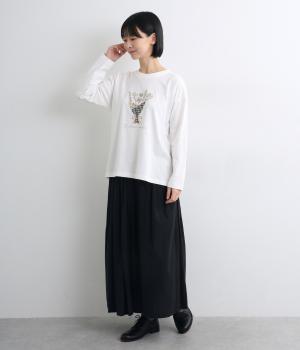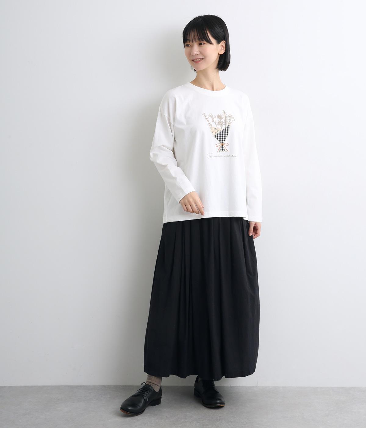 かわいらしく優しい雰囲気の花束刺しゅうが目をひくロングスリーブTシャツです。さまざまなボトムと好相性で、一枚で着るだけでコーディネートが完成します。扱いやすい素材でデイリーに活躍するアイテムです。