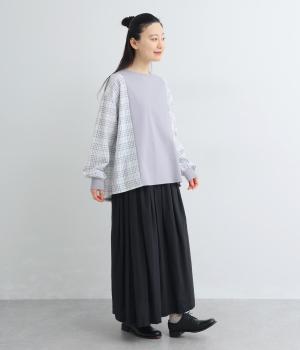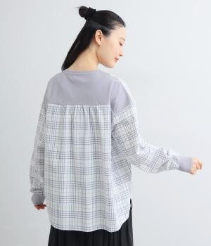 無地とチェック生地を切り替えて着映え力を高めつつもいつもの着こなしに取り入れやすくまとめたプルオーバー。袖口はリブできゅっと引き締めてメリハリを。裾はサイドにスリットを入れて適度に抜け感をプラスしました。
