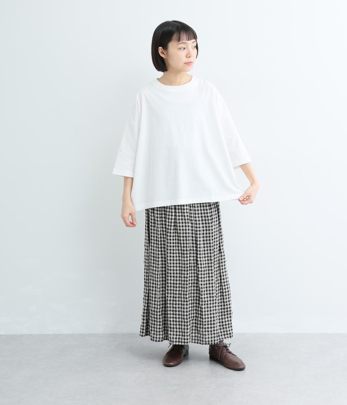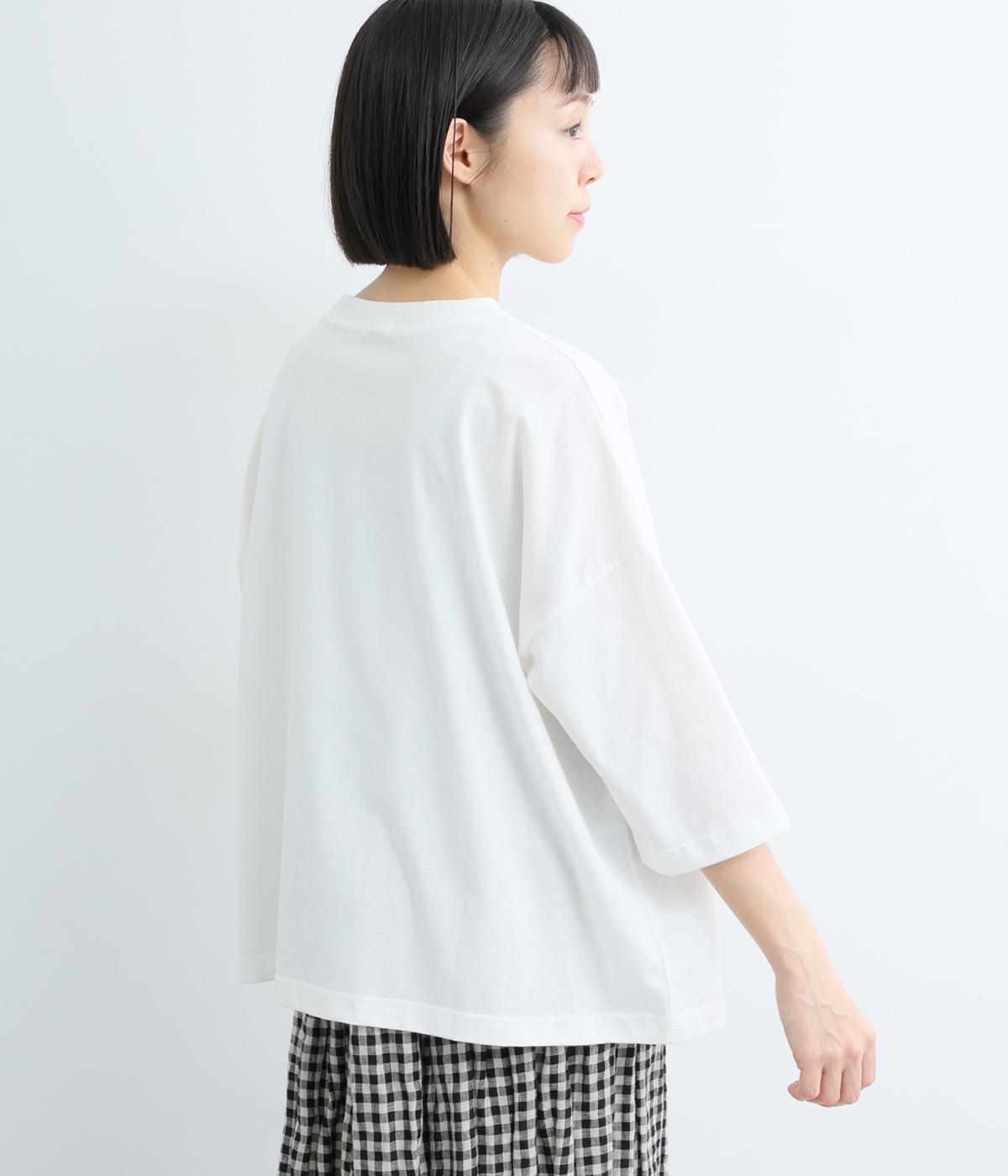 密度高く編み立てた、度詰め天竺生地を使用しました。しっかりとした丈夫さがありながら、肌あたりはさらりとやさしく、しなやかな風合いが魅力。安心感と軽やかな着心地を兼ね備え、毎日に頼れる素材です。