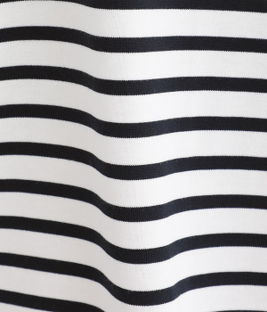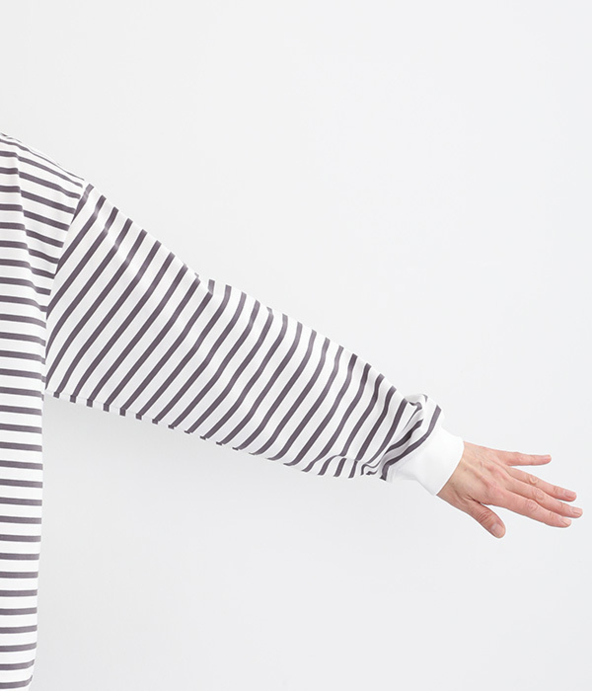 やさしい肌ざわりのコットン天竺生地を使用しました。ほのかな光沢感があり、カジュアルになりすぎずきれいめな印象に。ほどよい厚みのしっかりとした生地なので、安心感のある着心地です。