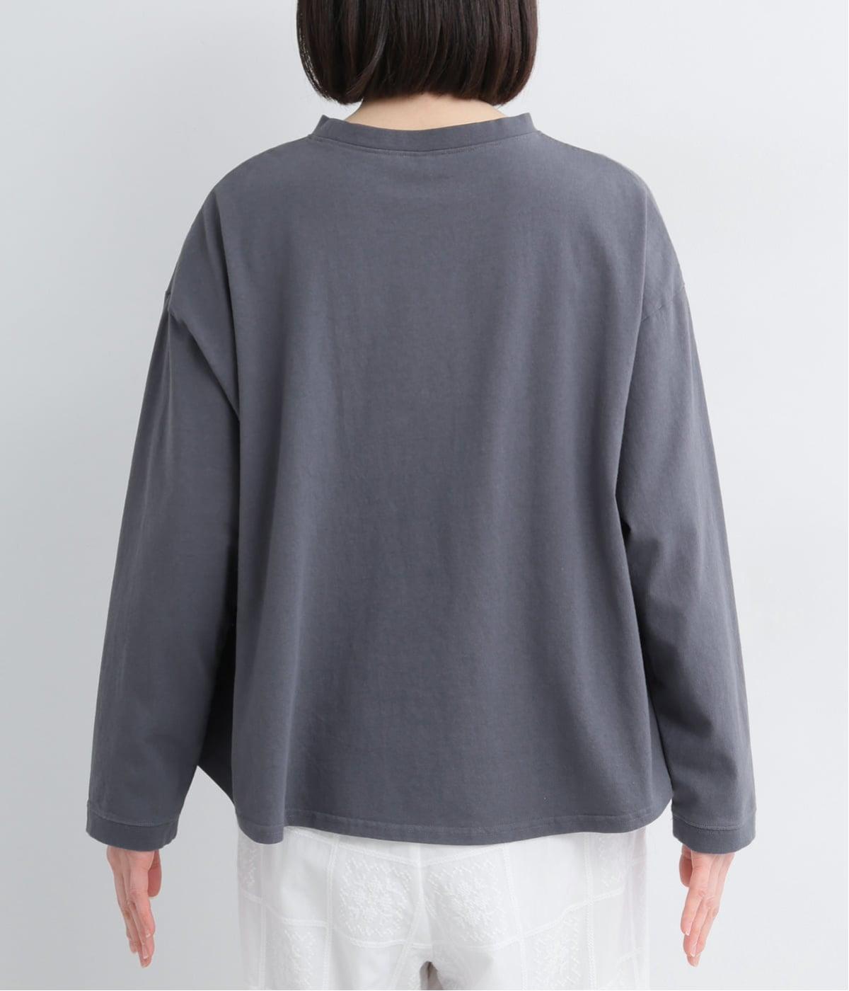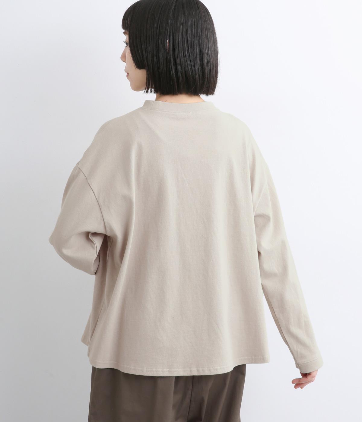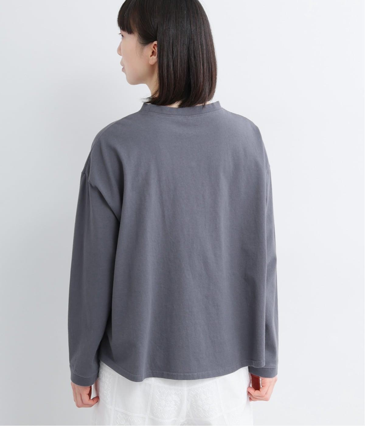 空紡糸で編まれたOE天竺生地を使用しています。ドライでざっくりとした風合いが特徴的で、吸湿性や速乾性に優れ、着るほどにやわらかくなじんでいく経年変化もあじわえます。