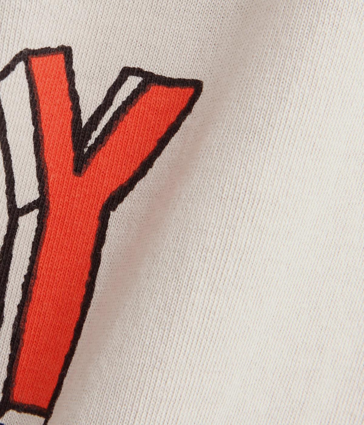 3Dのように立体感をつけたロゴプリントが特徴的なプルオーバー。ゆったりとしたワイドシルエットでカジュアル感を高めています。ユーズドのようなこなれ感がポイントで、袖口は短めリブでボーイッシュな雰囲気に。