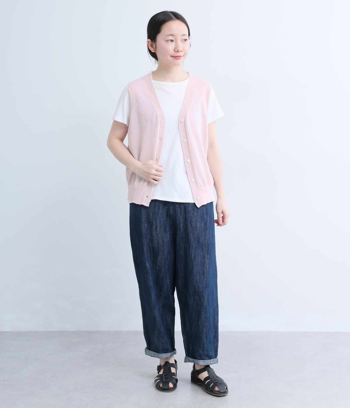 リネンのようにさらっとした清涼感のある和紙混紡の天竺素材を使用。和紙糸は繊維に適度なすき間があり、吸水・吸湿性が高く、軽い着心地で汗ばむ季節にも活躍します。