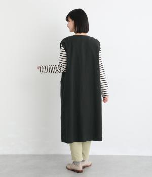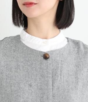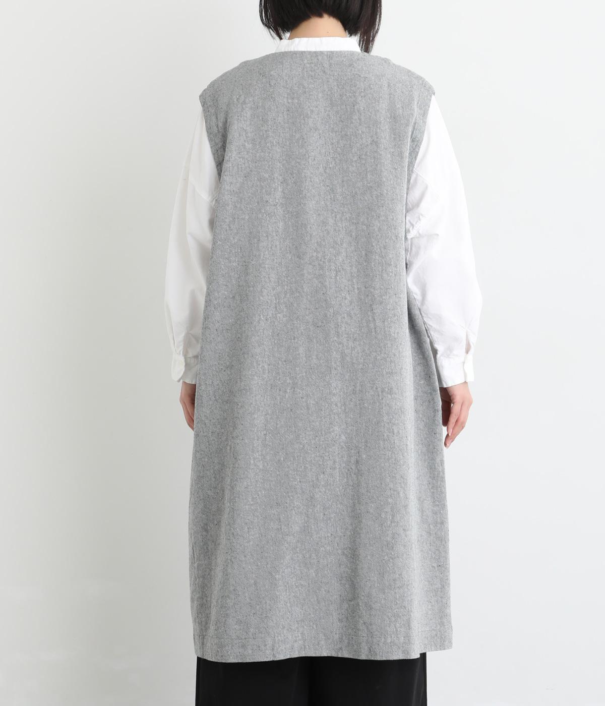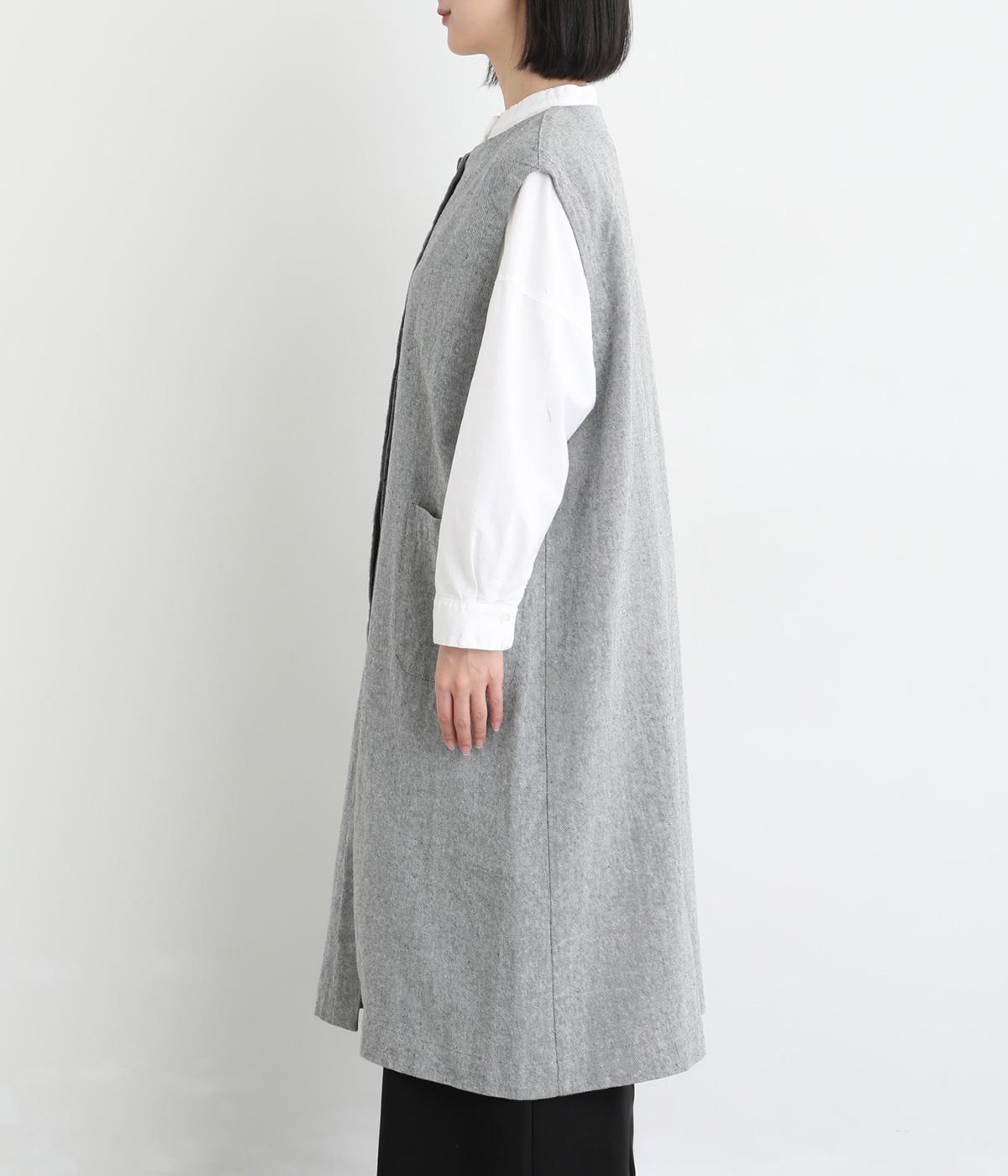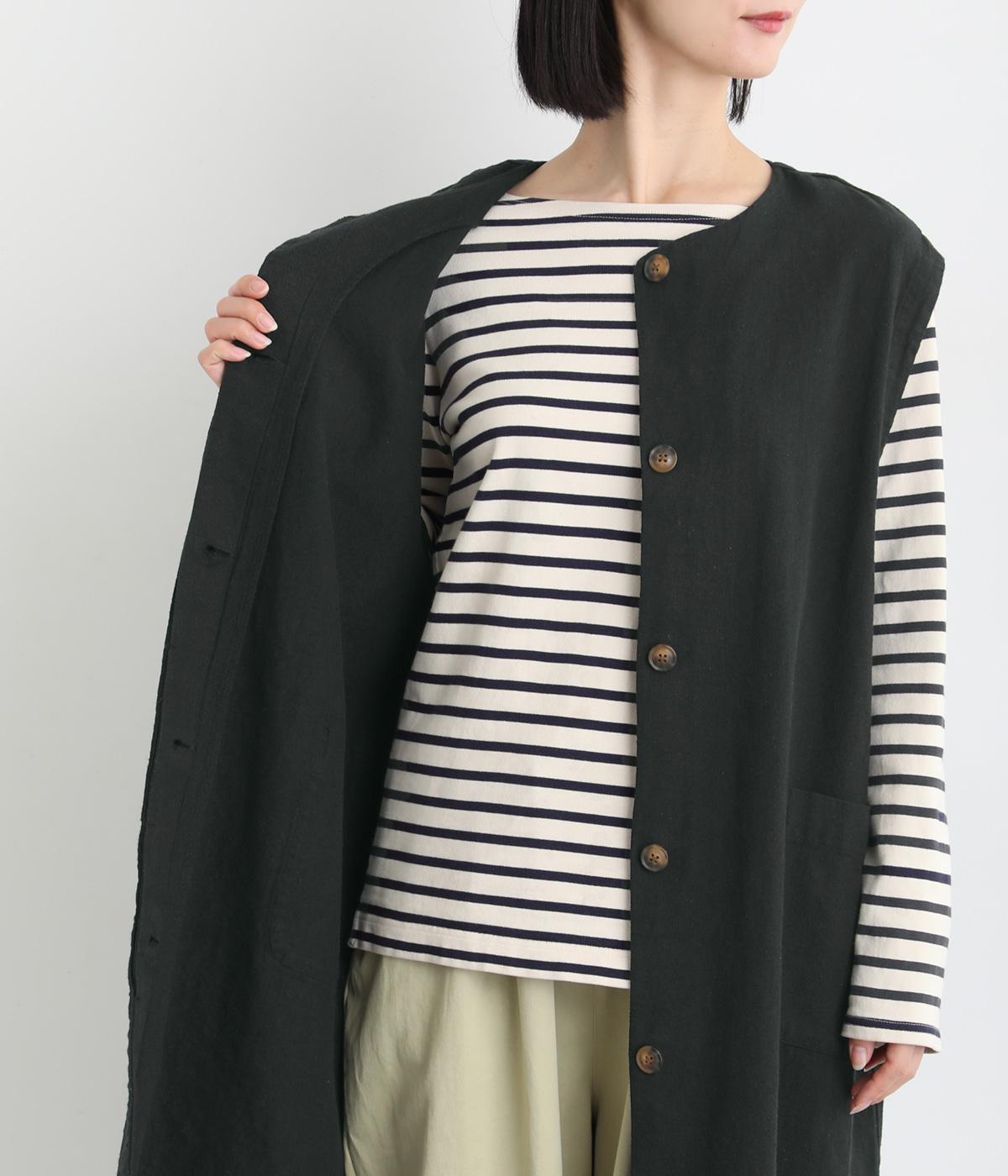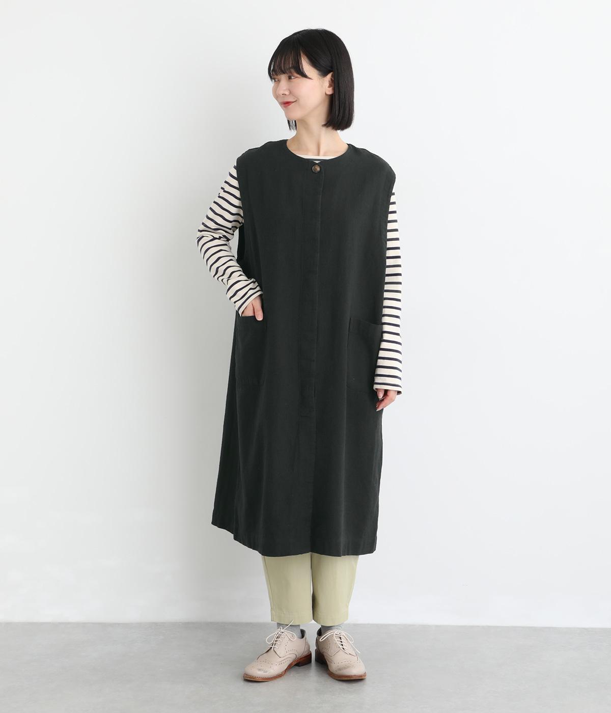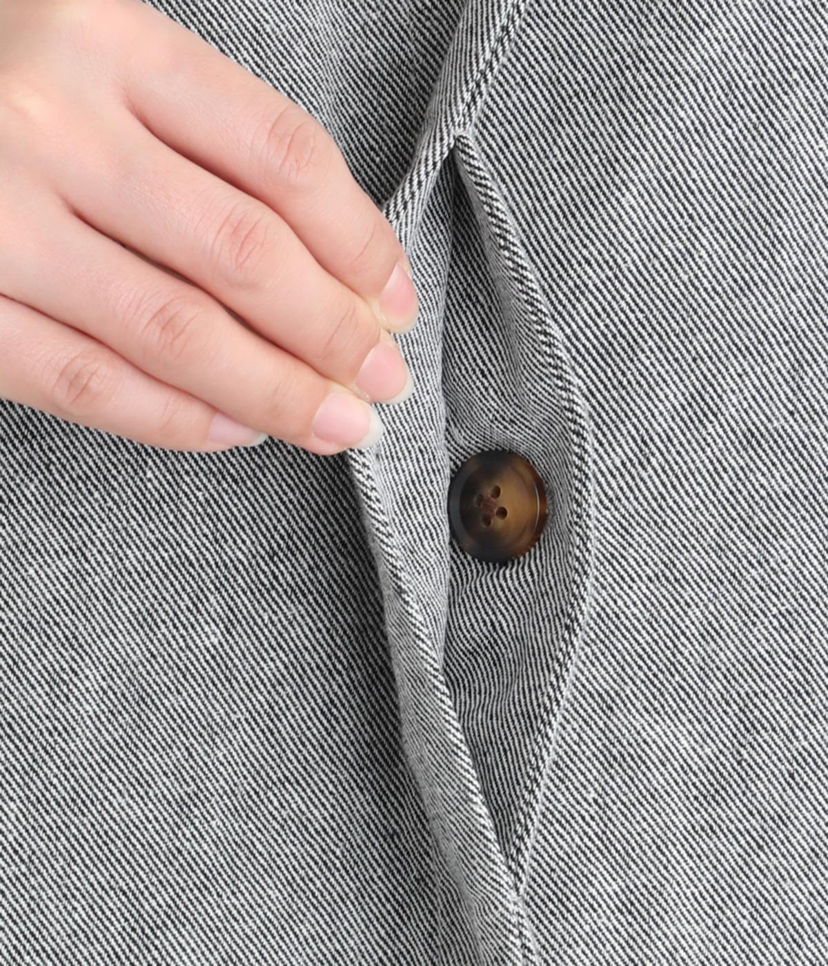 前をあけてもとじてもサマになるロングジレです。フロントのひとつボタンがアクセントに。留めればすっきりとした縦ラインが強調され、あけて羽織れば、ラフで抜け感のあるスタイリングがたのしめます。ロング丈ながらコーディネートが重たくなりにくく、自然な奥行きを与えてくれるアイテムです。