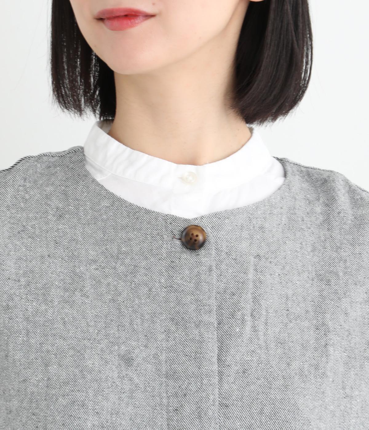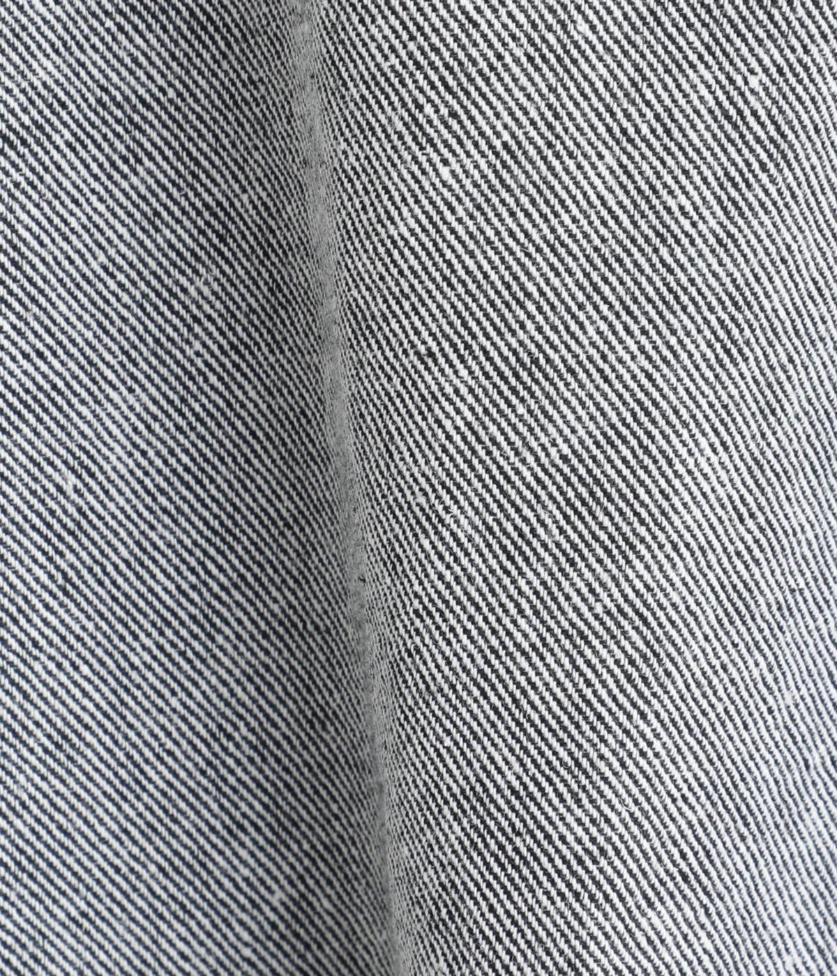 コットンのやわらかな肌ざわりに、リネンのほどよいハリを合わせた生地です。綾織り特有のななめに走る畝が、さりげない表情を添えています。しなやかでシワになりにくく、デイリー使いにうれしい軽やかな質感です。